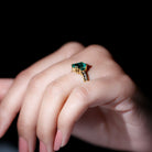 Created Emerald Engagement Ring is splendidly crafted in gold, it has Diamond Side Stones to add more charm to it. This Created Emerald Ring is a graceful and exquisite piece of fine jewelry. Octagon and marquise cut created emerald are held in prong setting and round Diamond held in channel setting beautifully forming excellent cocktail ring.