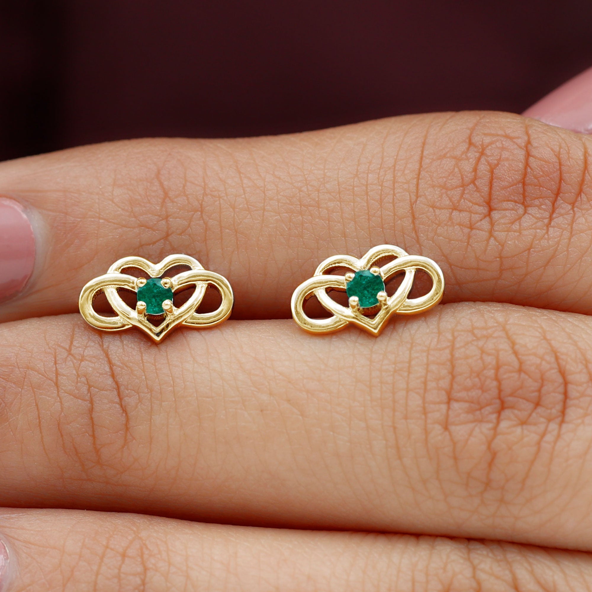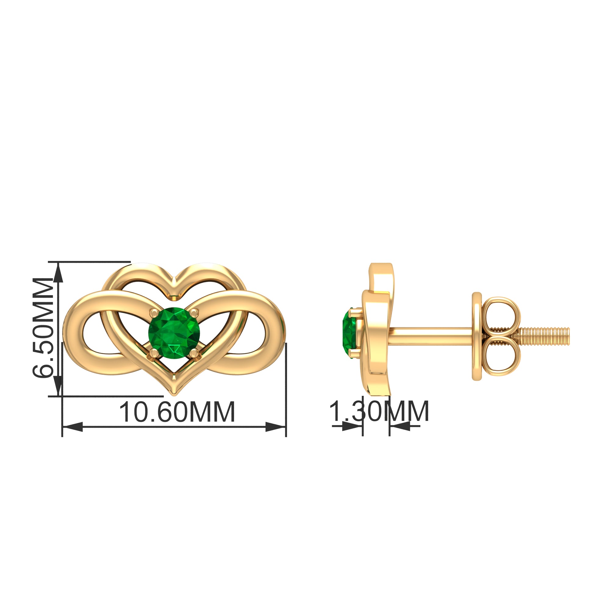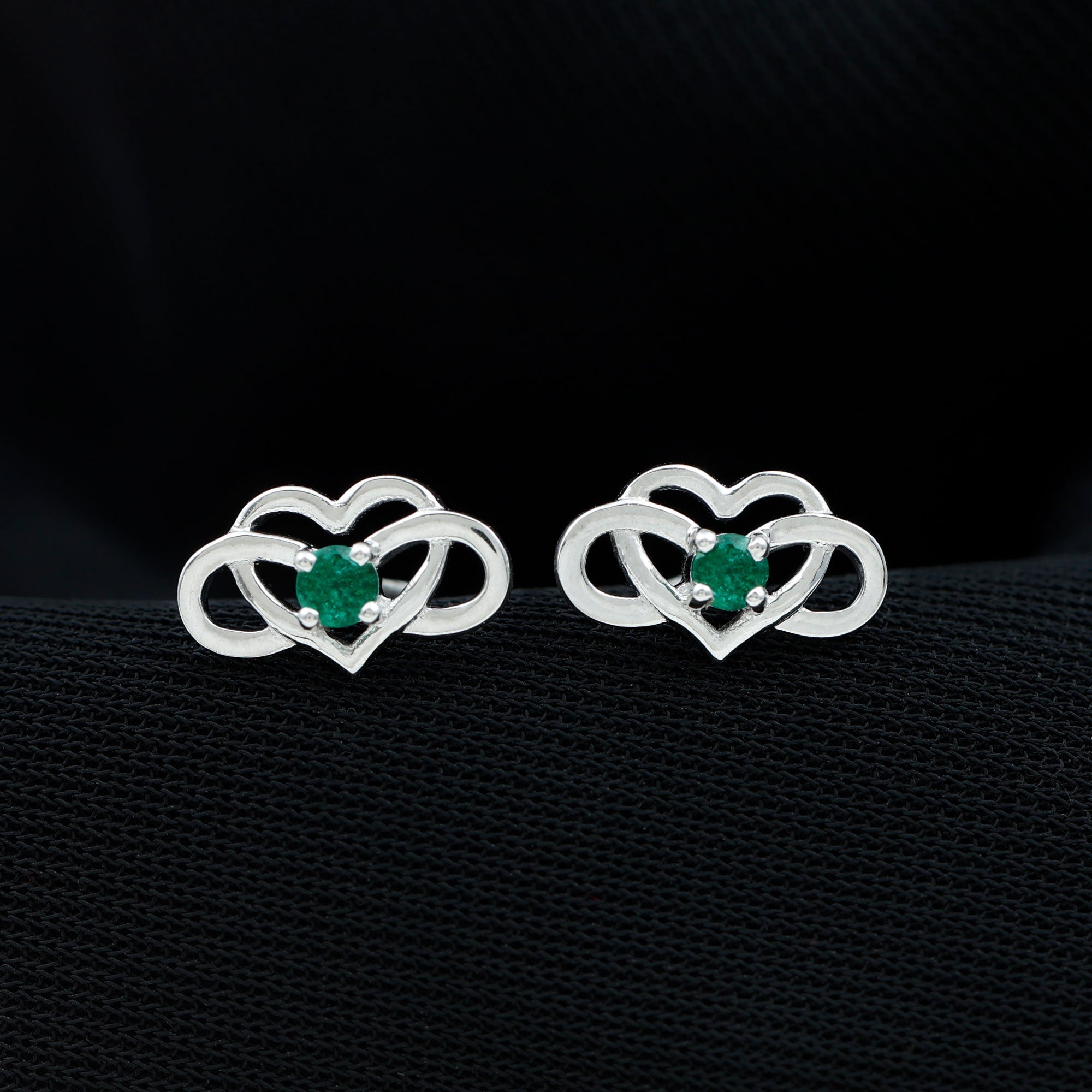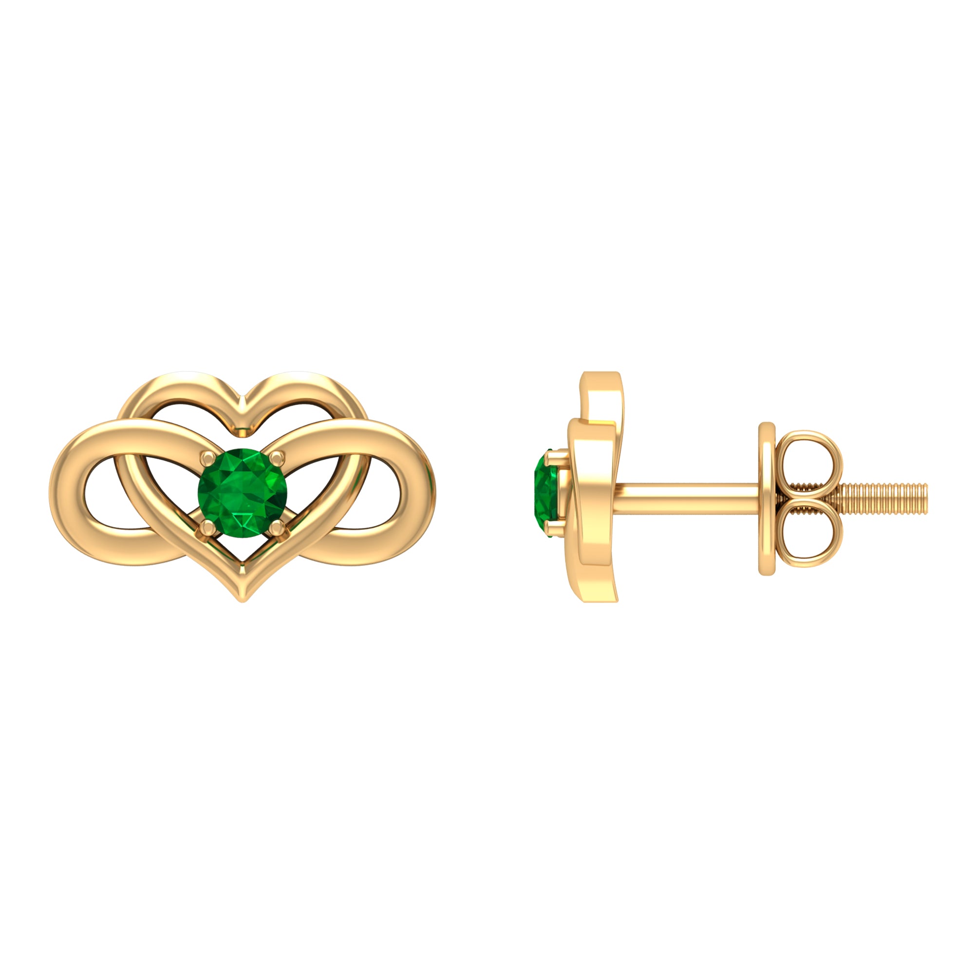 Add these Infinity Heart Earrings to your jewelry collection and we bet you will fall in love with their playful sophistication. Beautifully crafted in Solid Metal and adorned with Round Shape Created Emerald secured by 4 Prong Setting on an infinity heart design. The Infinity Earrings come with screw-back closure to help secure them in their place. Style these amazing Created Emerald Earrings with your casual, formal, and party attire to get everyone talking about you.