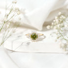 Created Green Sapphire Flower Engagement Ring with Moissanite