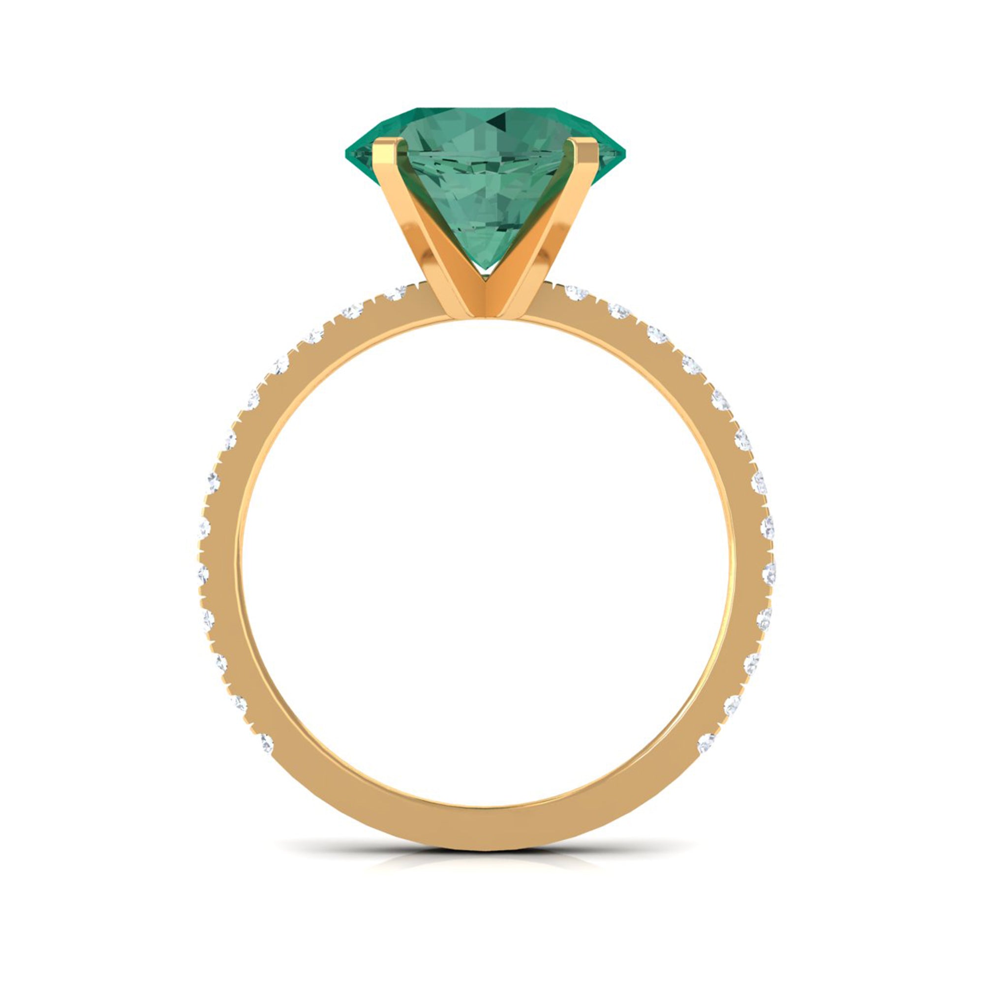Created Green Sapphire Solitaire Engagement Ring with Diamond
