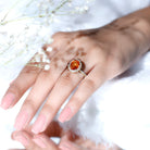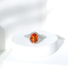 Created Orange Sapphire and Diamond Halo Engagement Ring