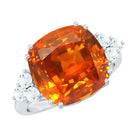 The Engagement Ring is elegantly adorned with Cushion Cut Lab Created Orange Sapphire secured by Double Prong Setting and Round Diamond Trio studded on either side of the center stone. Whether its a day plan or a night out with your girls, our Created Orange Sapphire Ring will never disappoint you.