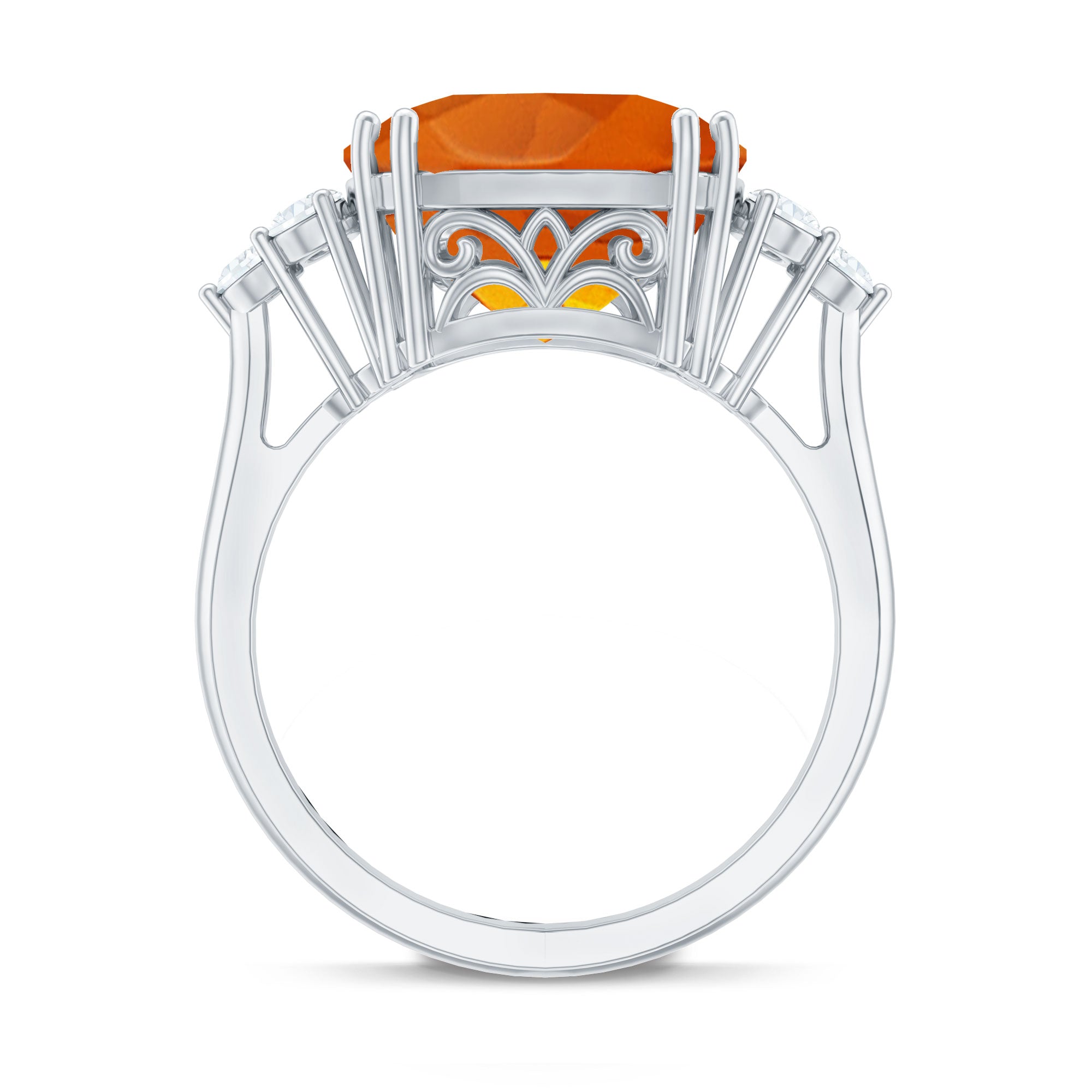 Created Orange Sapphire Cushion Cut Engagement Ring with Diamond