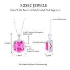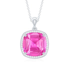 The Halo Pendant Necklace is alluring for anyone as it is adorned with Cushion Cut Lab Created Pink Sapphire secured in 4 Prong Setting while dainty Round Moissanite studded as Halo. Flaunt the Pendant Necklace with your beautiful outfits effortlessly to create unique looks. This Created Pink Sapphire Pendant makes a precious anniversary present for your lady love.
