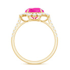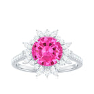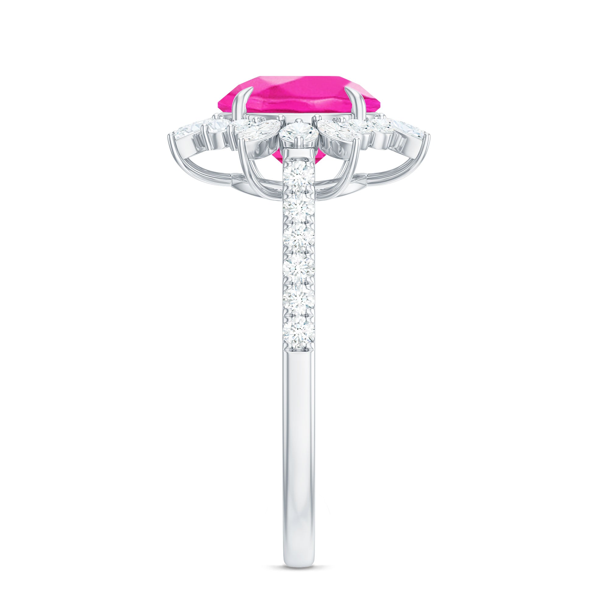 Created Pink Sapphire Cocktail Ring with Moissanite Floral Halo