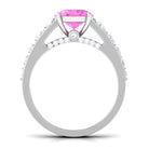 Created Pink Sapphire Engagement Ring with Moissanite Side Stones