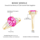 The alluring Engagement Ring is beautifully adorned with an Oval Cut Lab Created Pink Sapphire secured by 4 Prong Setting while more Round Diamond give it a shiny look. It doesnt matter what the occasion is, our Created Pink Sapphire Ring will never let you down, whether its a day on the go or a night out with your girls.
