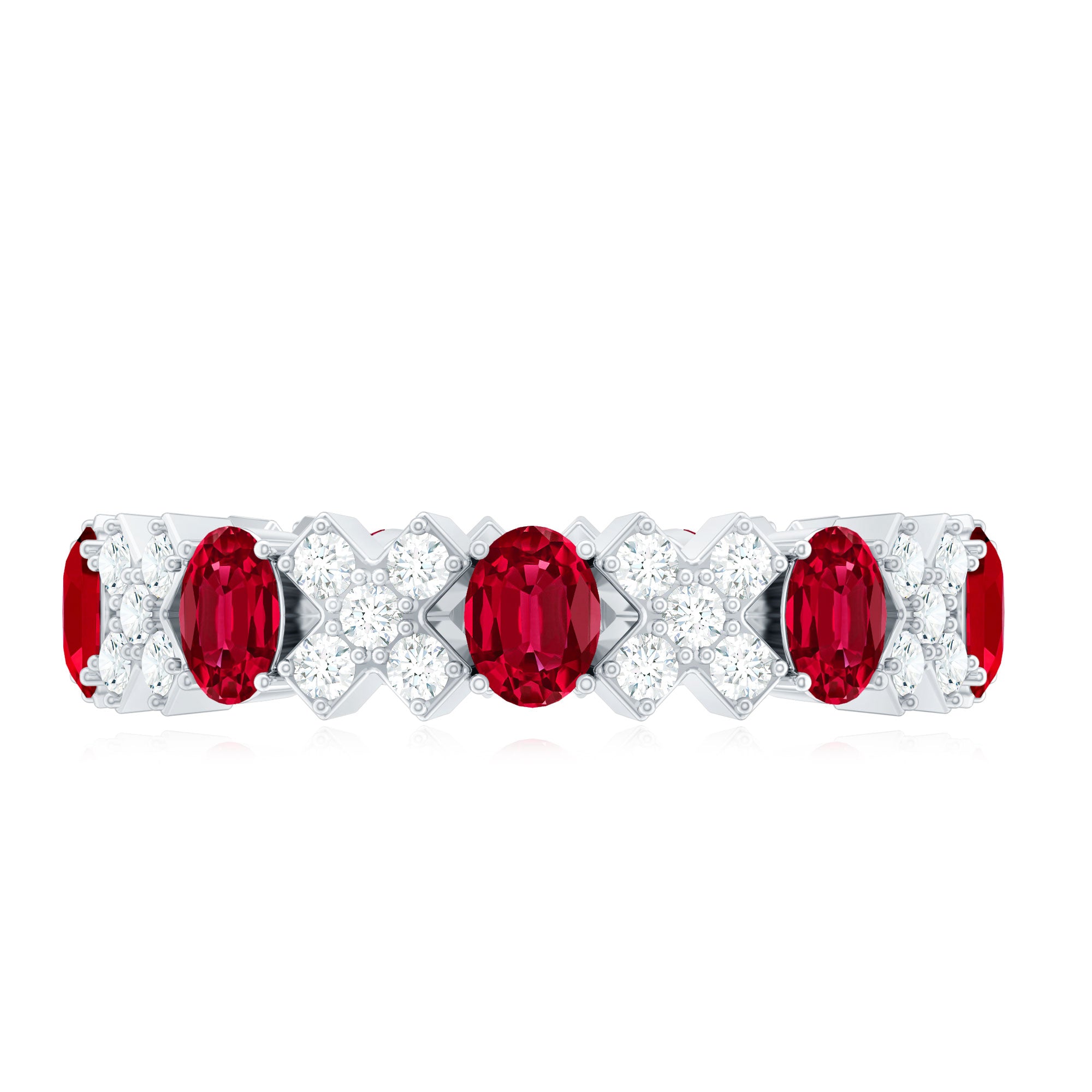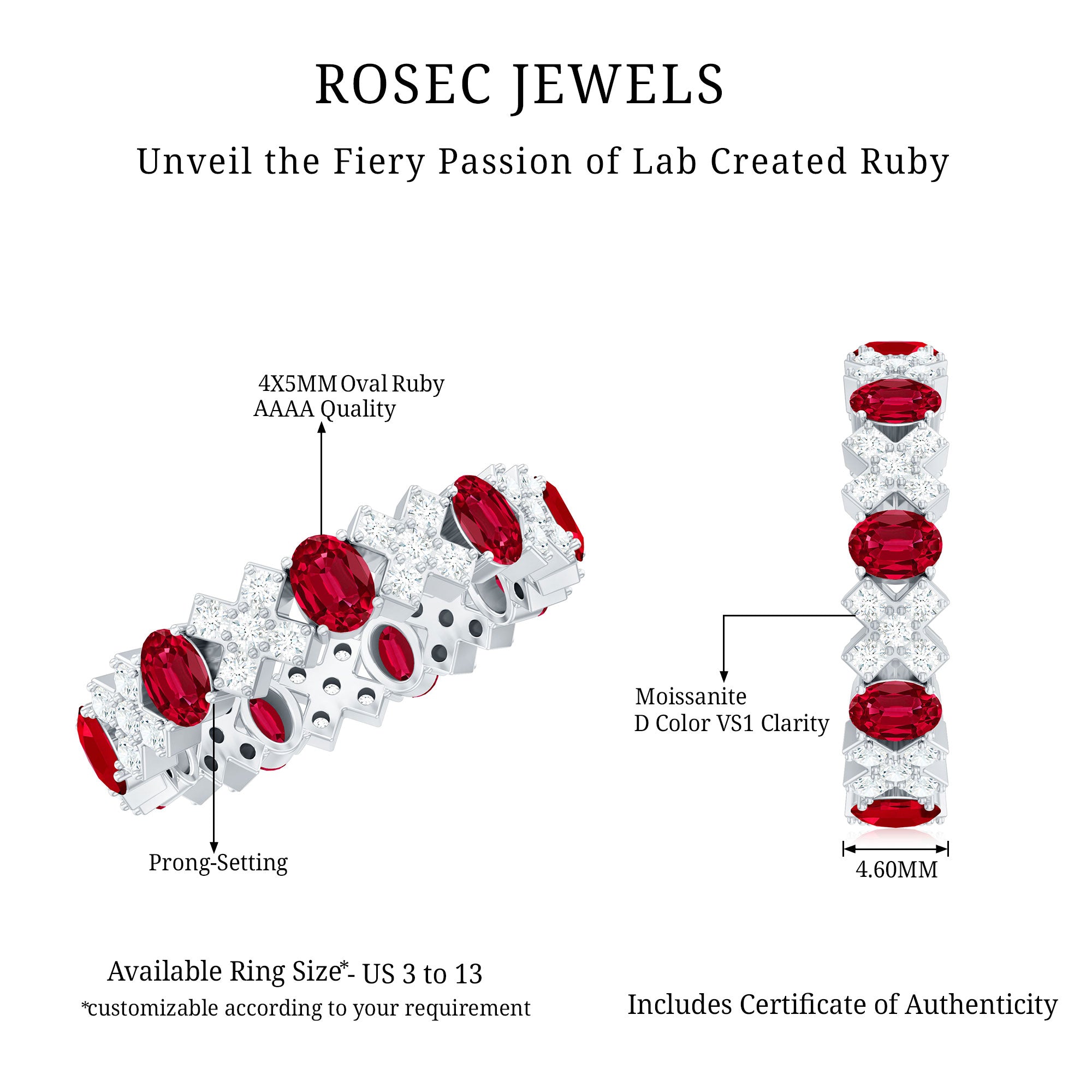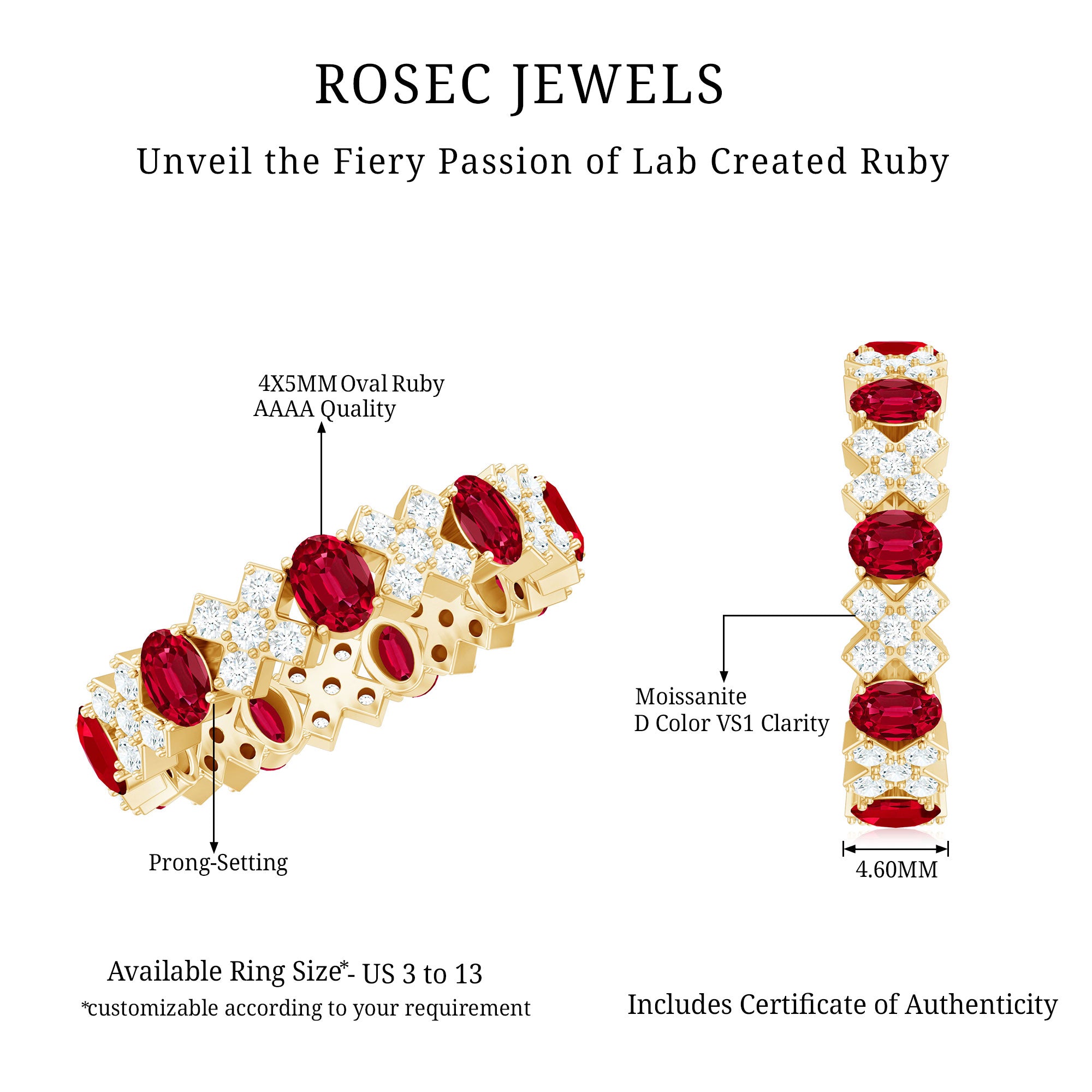 Created Ruby and Moissanite Designer Eternity Band Ring