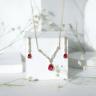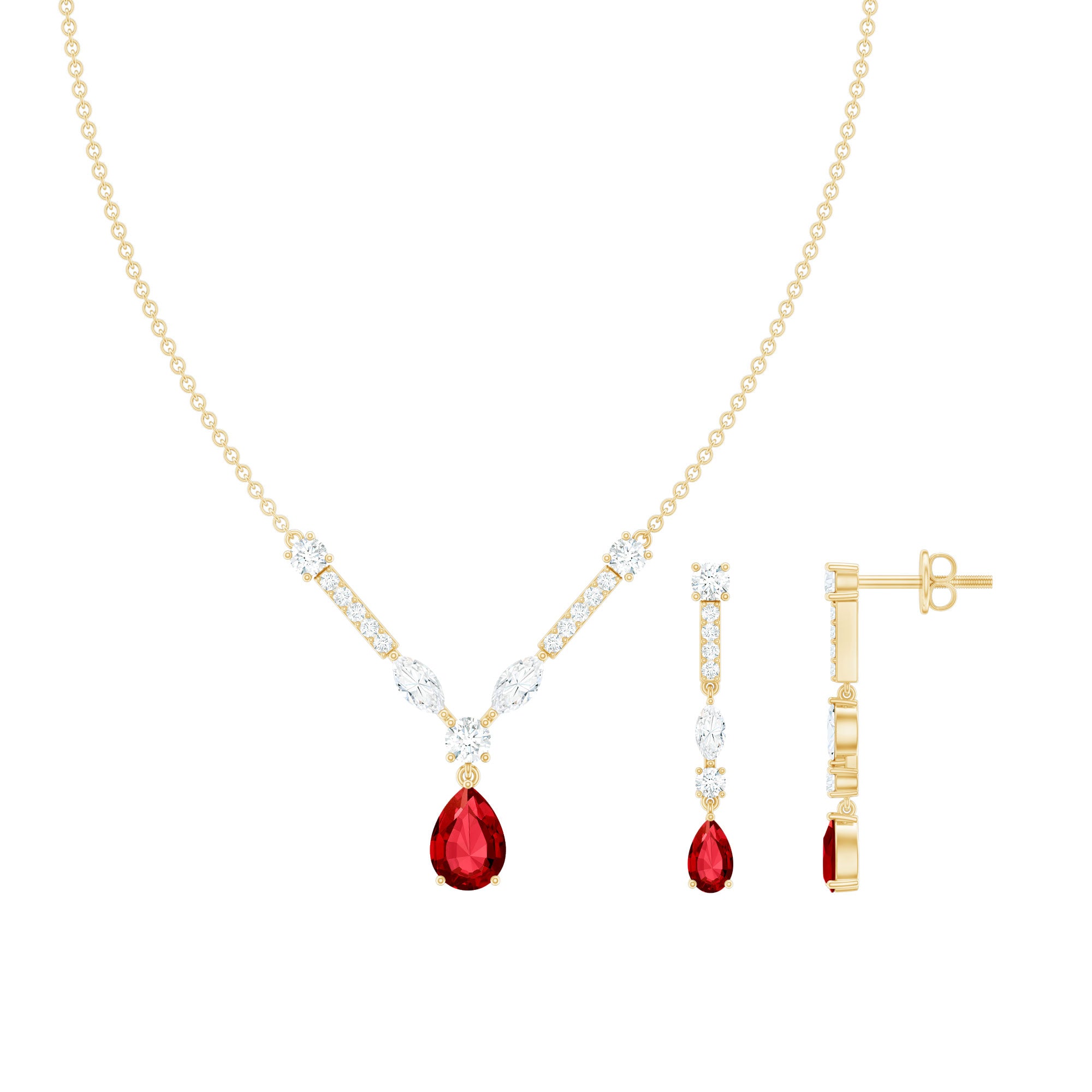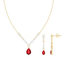 Created Ruby and Moissanite Drop Necklace Earrings Set