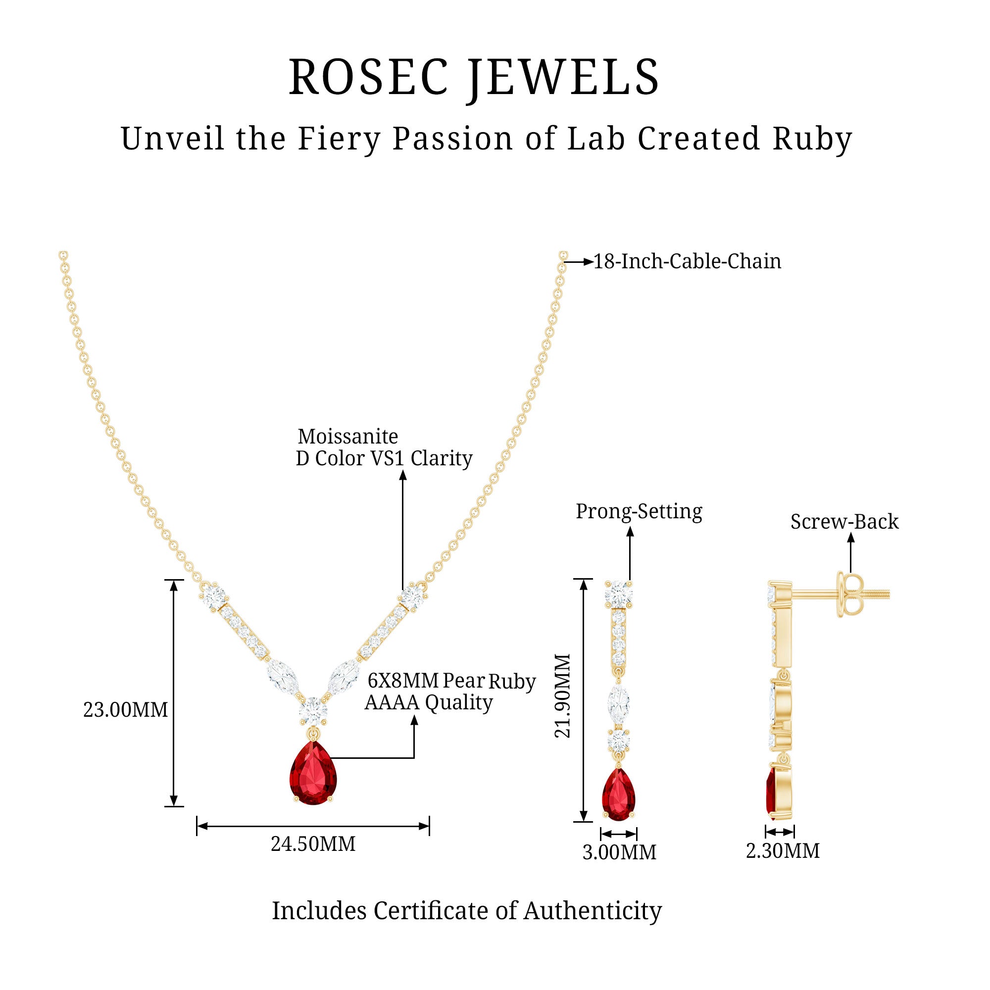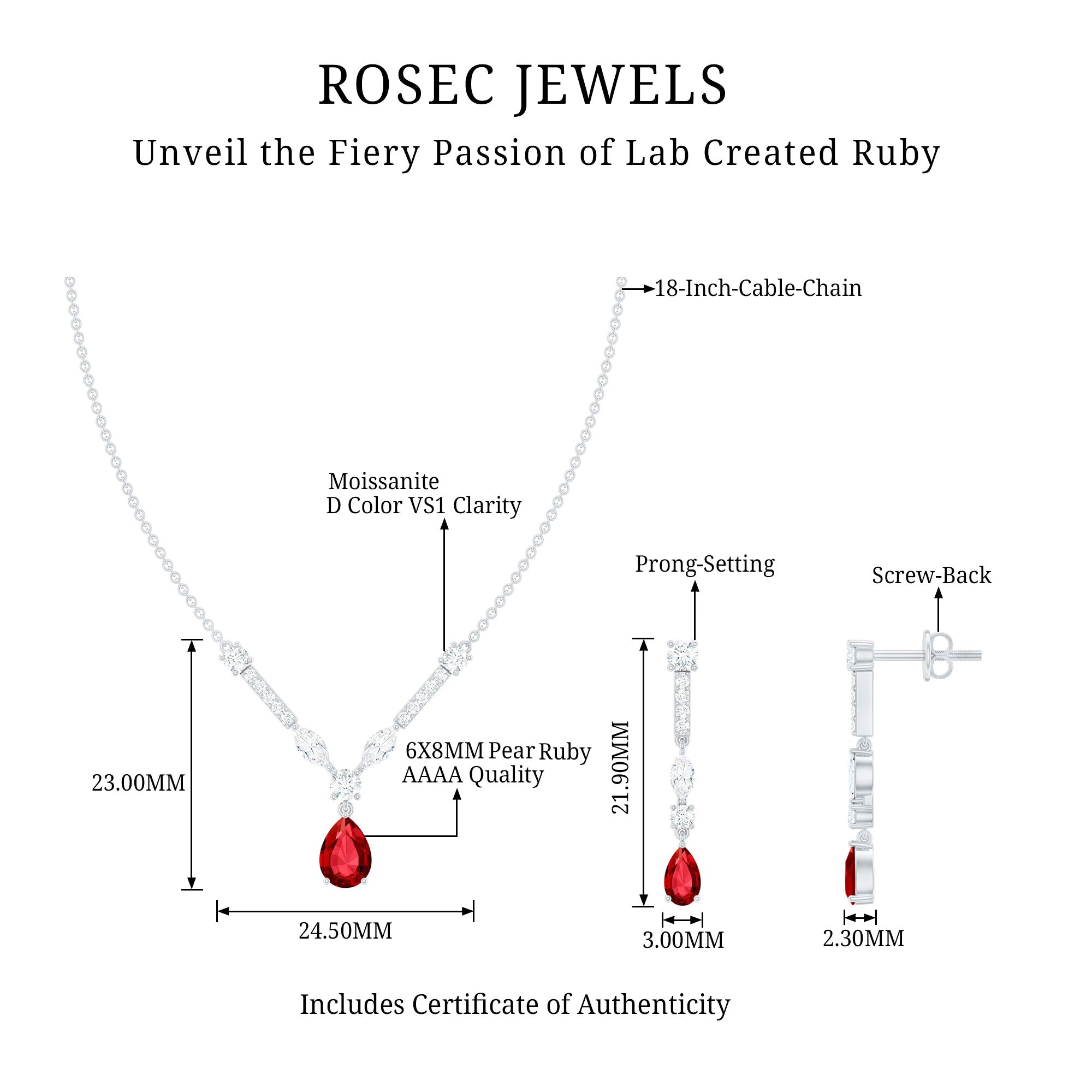 Created Ruby and Moissanite Drop Necklace Earrings Set