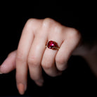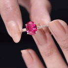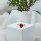 Immerse yourself in the timeless elegance of this Solitaire Ring, where a twisted rope shank beautifully embraces an enchanting oval center created ruby. Adding a touch of brilliance, the shank holds a sparkling surprise - a bezel-set Round Shape Diamond for an extra dose of sparkle. The ring is elegantly set on a contrasting shank band, exuding a minimalistic charm.
