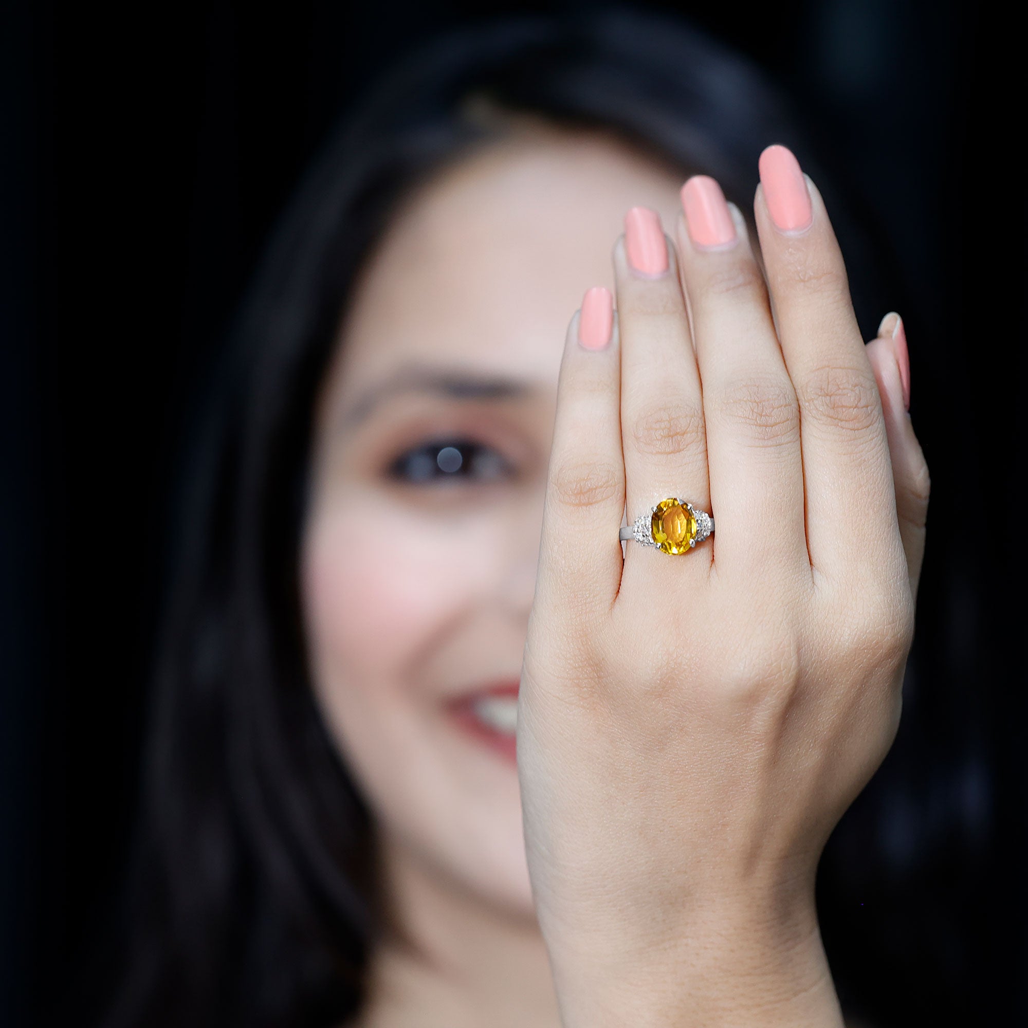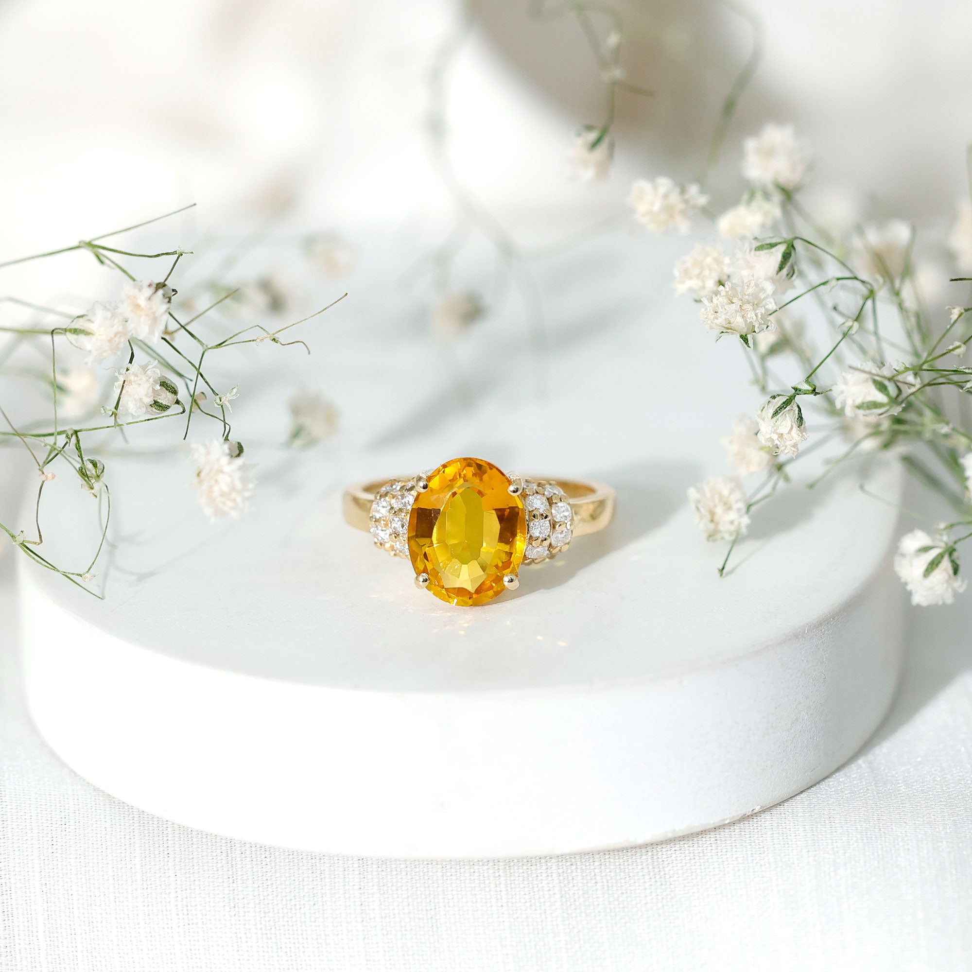 Created Yellow Sapphire Oval Engagement Ring with Diamond Accent