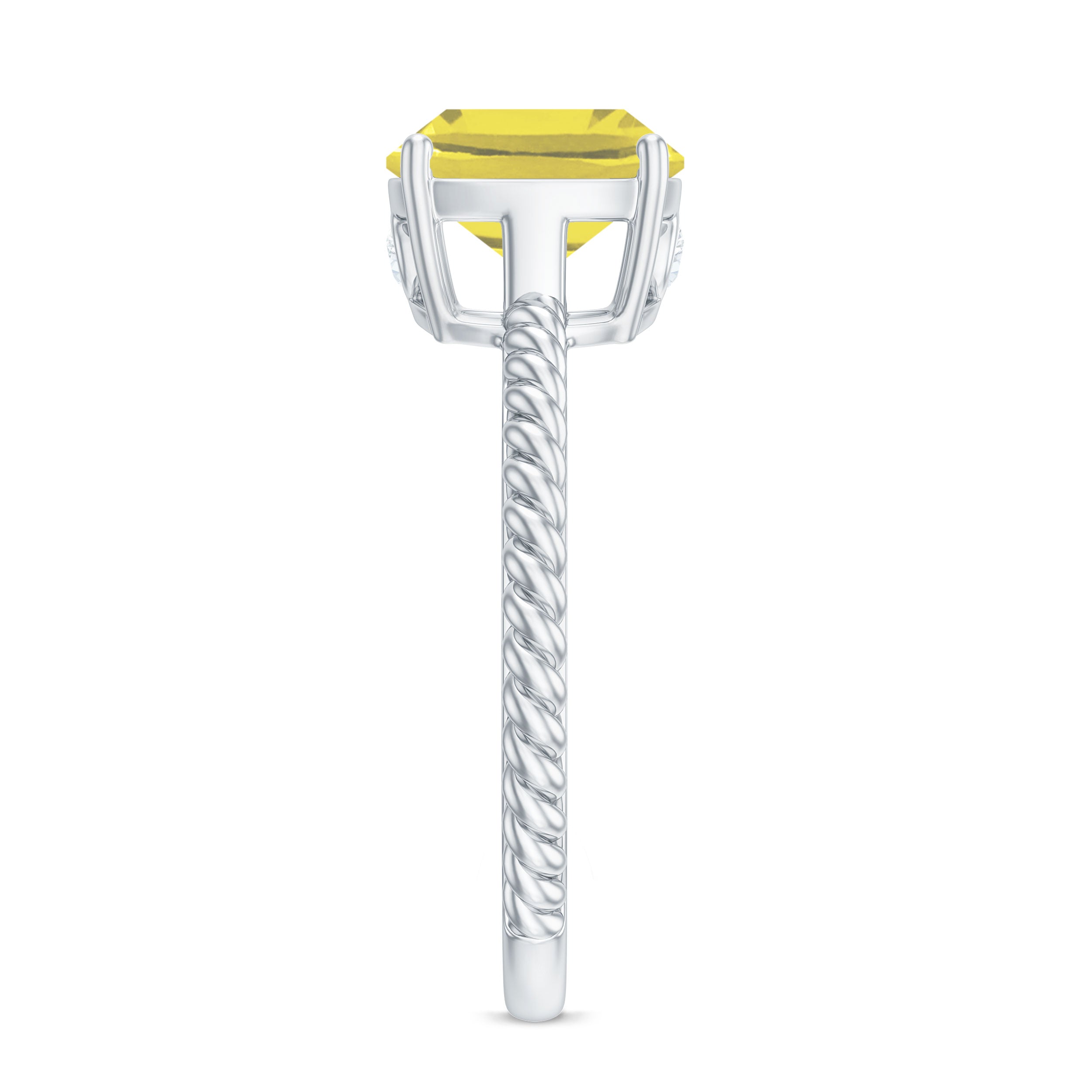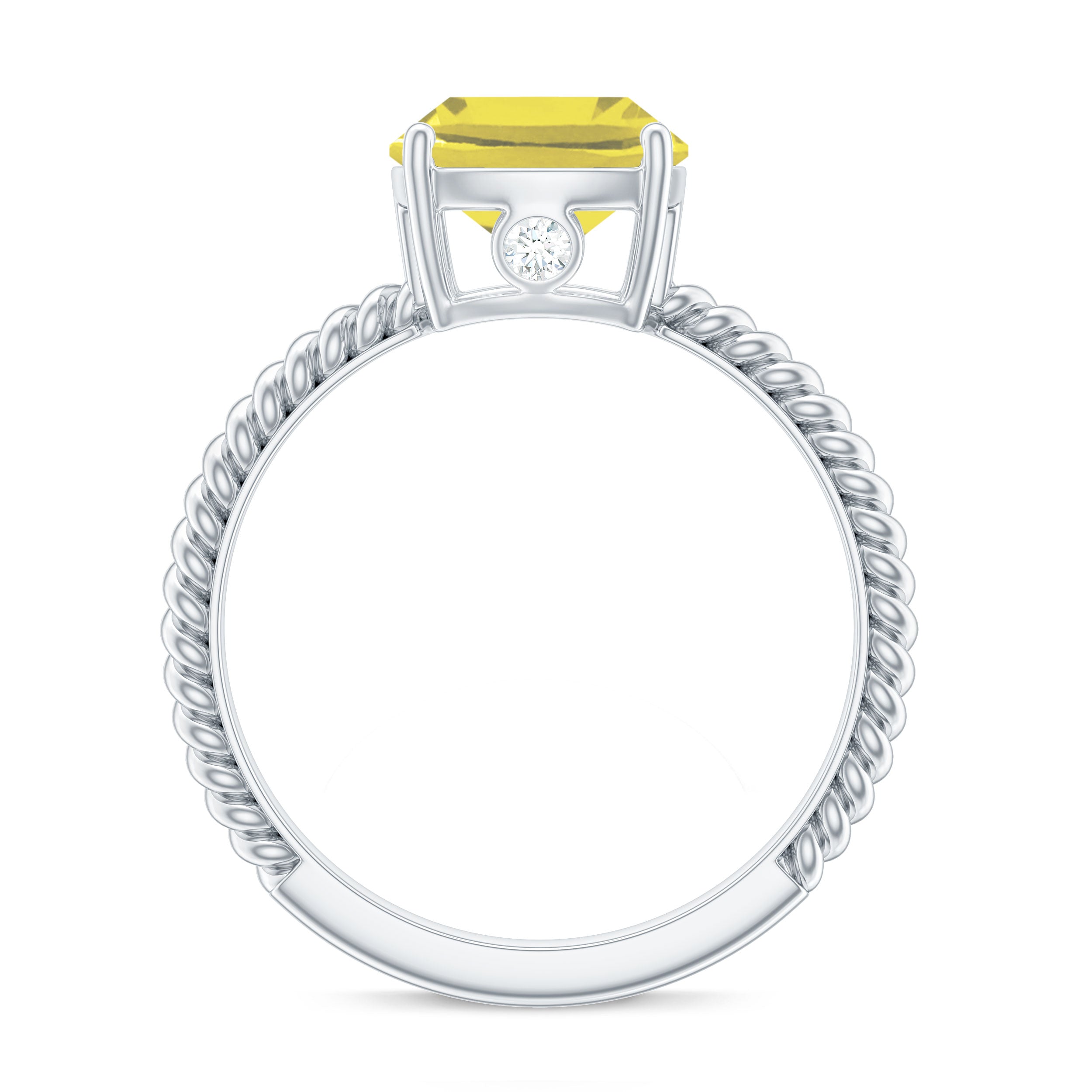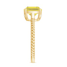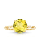 This stunning Solitaire Engagement Ring celebrates the supreme beauty of simplicity as it is embellished with Cushion Cut Lab Created Yellow Sapphire as a Solitaire secured by 4 Prong Setting and Surprise Diamond studded on the bridge of the ring, the Twisted Rope Shank giving it a unique look. Get this Solitaire Ring for your loved one like lover, girlfriend, wife, fiancé, mother, daughter, your friend, to make her feel special.