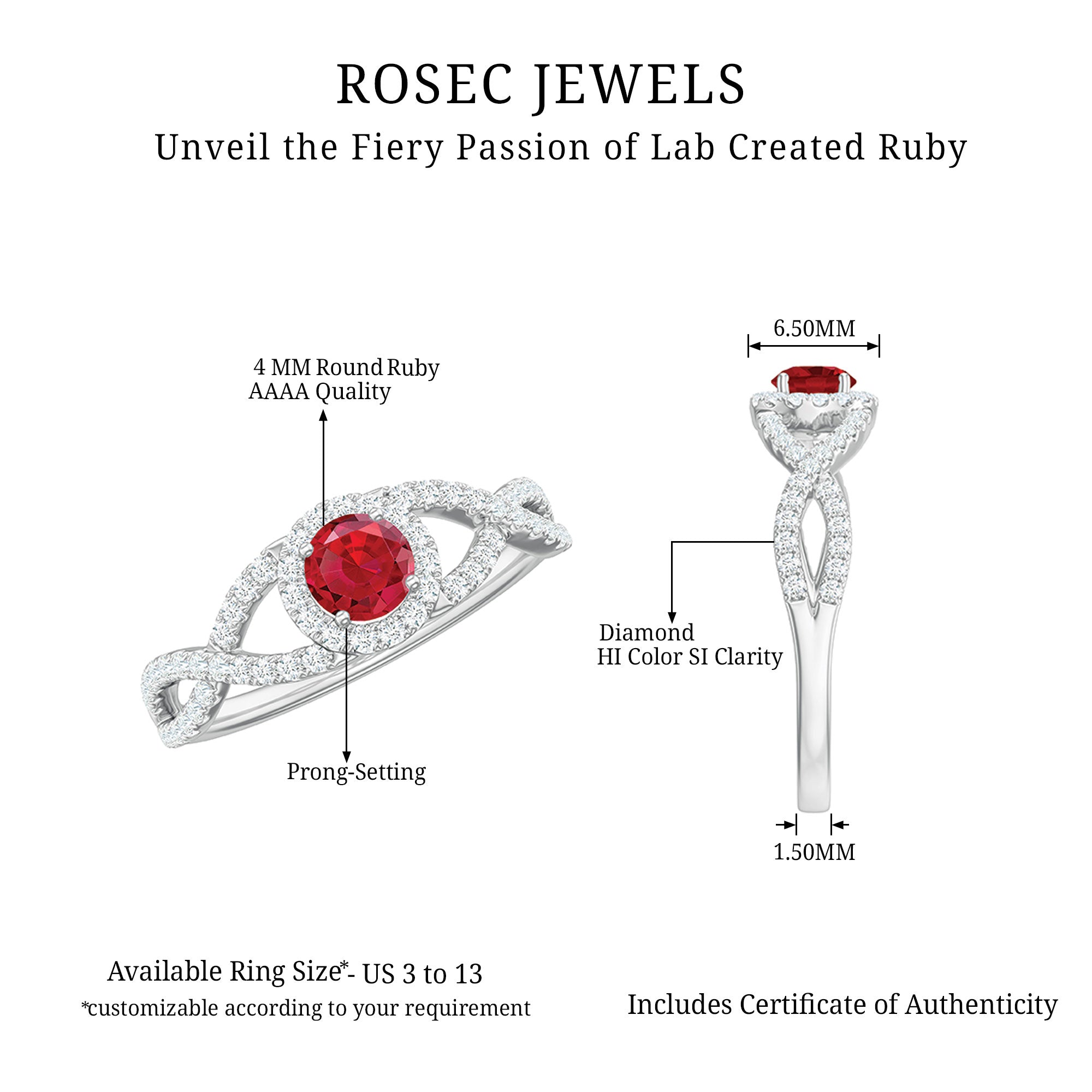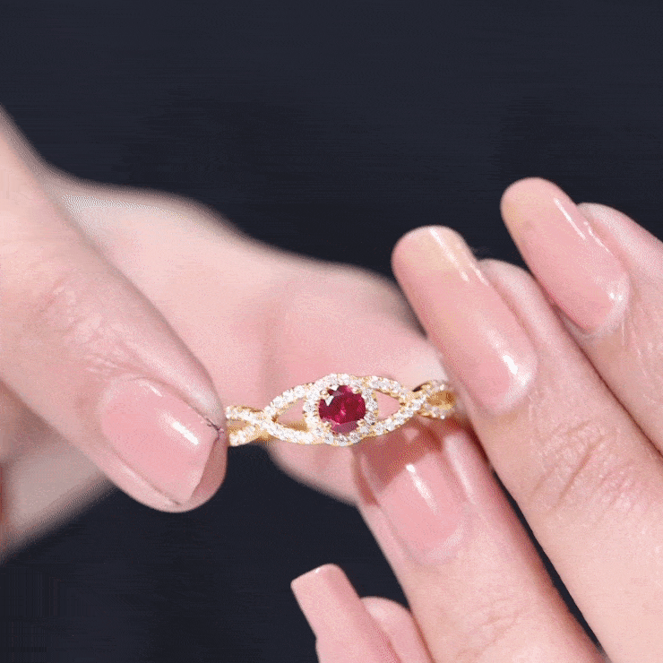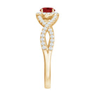 Adorn the finger of your special someone with this beautiful Lab Created Ruby Ring. Featuring a Round Shape ruby in a prong setting and accented with Diamond, this solid gold crisscross ring is a stunning piece of jewelry.