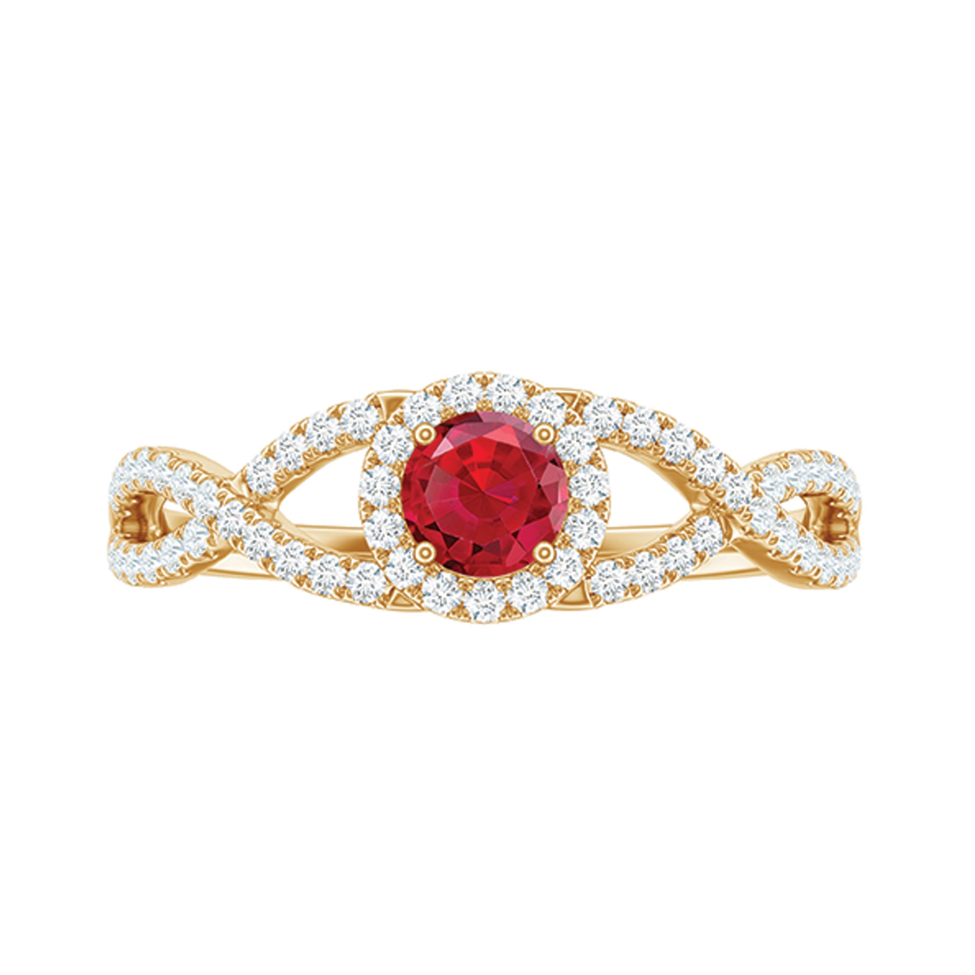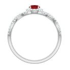 Criss Cross Shank Created Ruby and Diamond Halo Engagement Ring