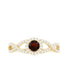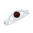 Criss Cross Shank Garnet and Diamond Halo Engagement Ring