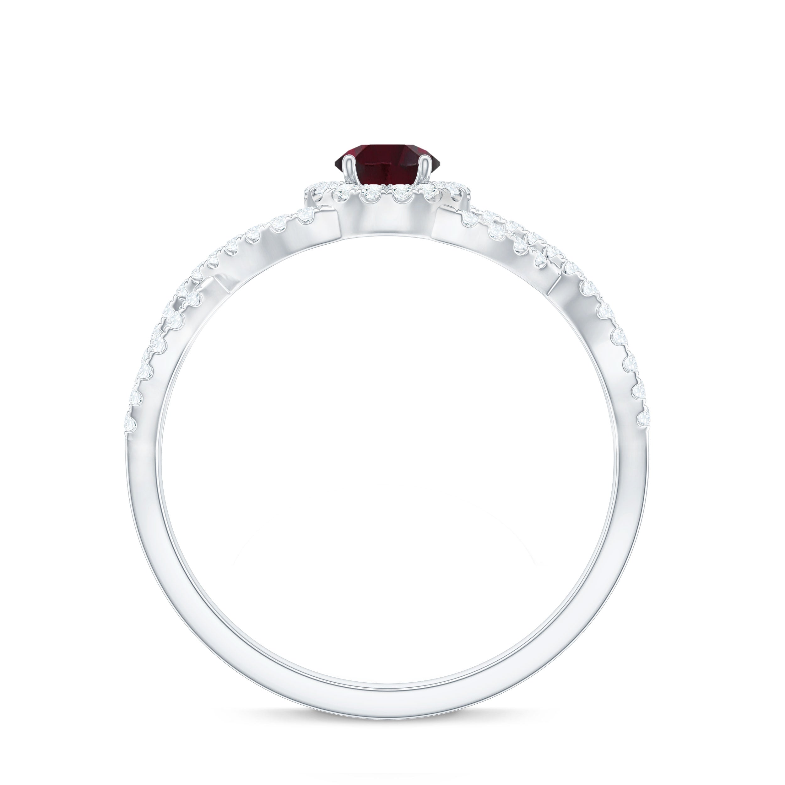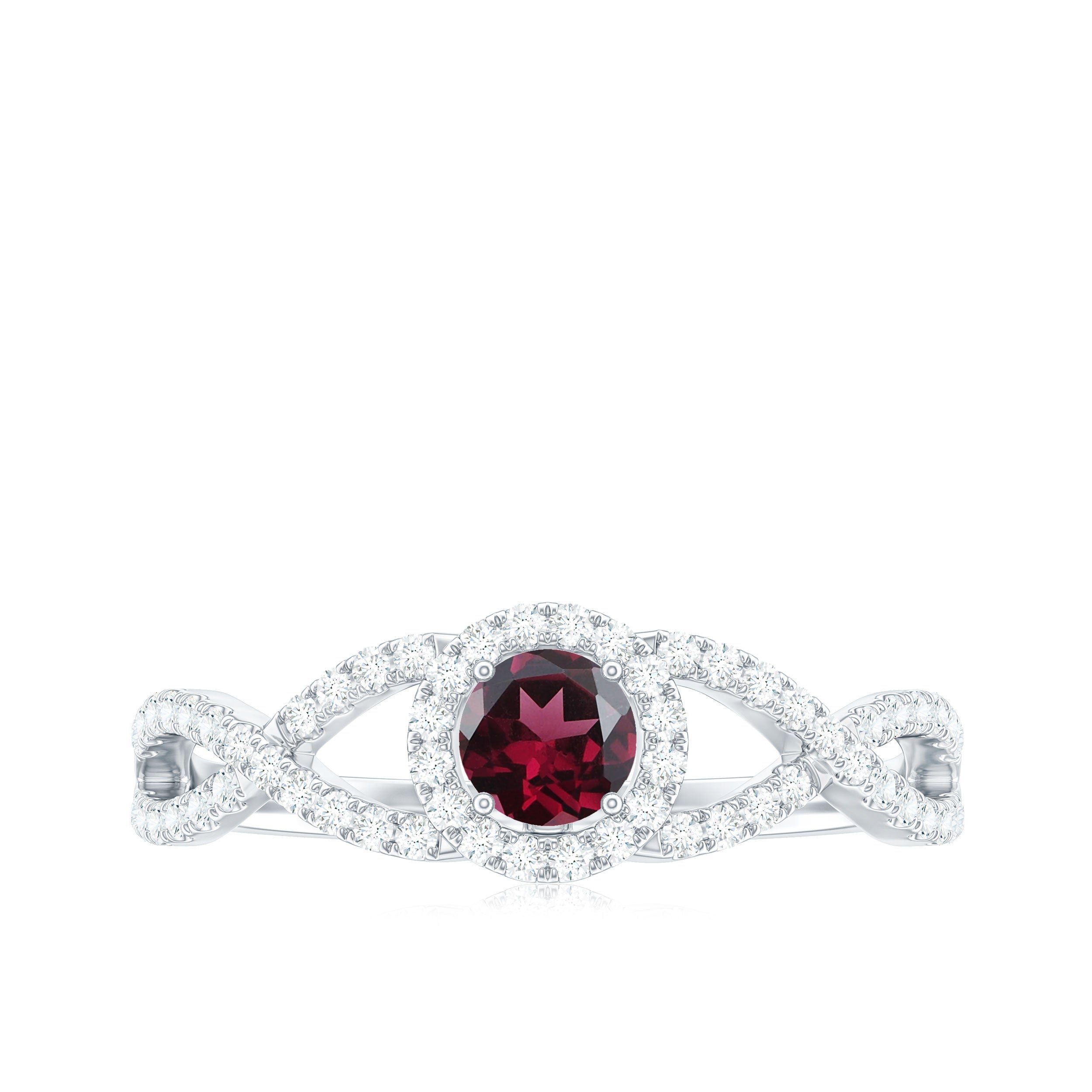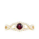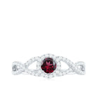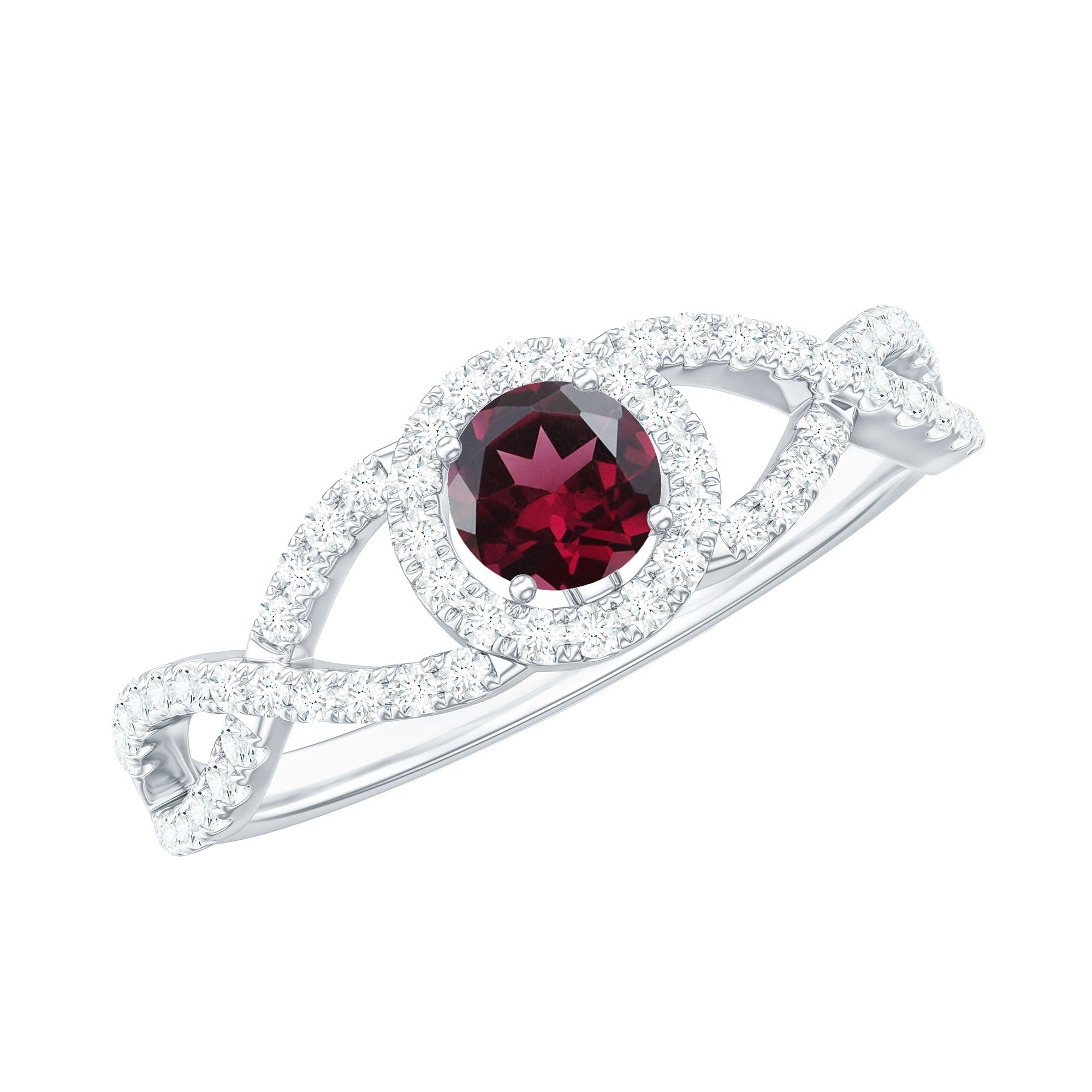 Criss Cross Shank Rhodolite and Diamond Halo Engagement Ring