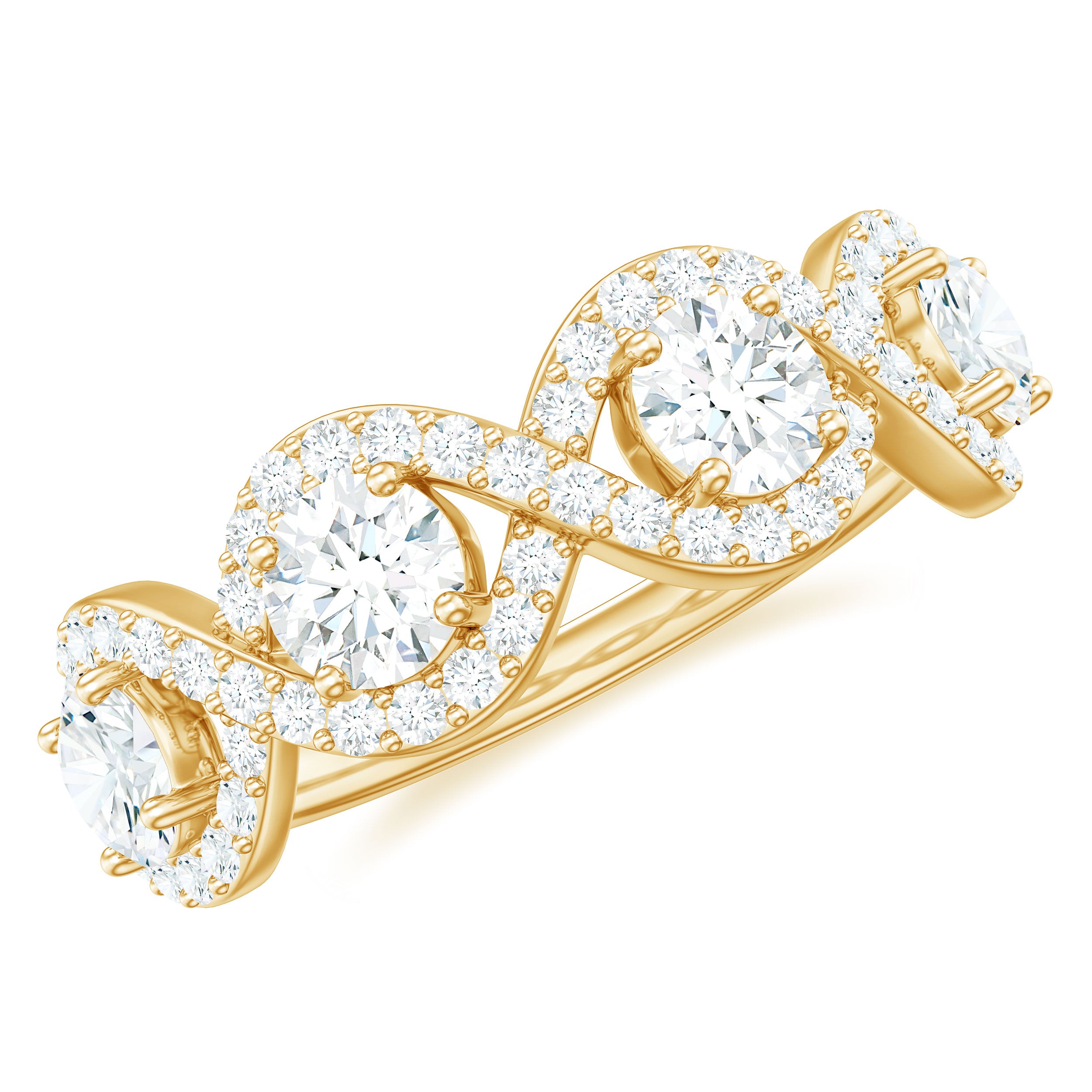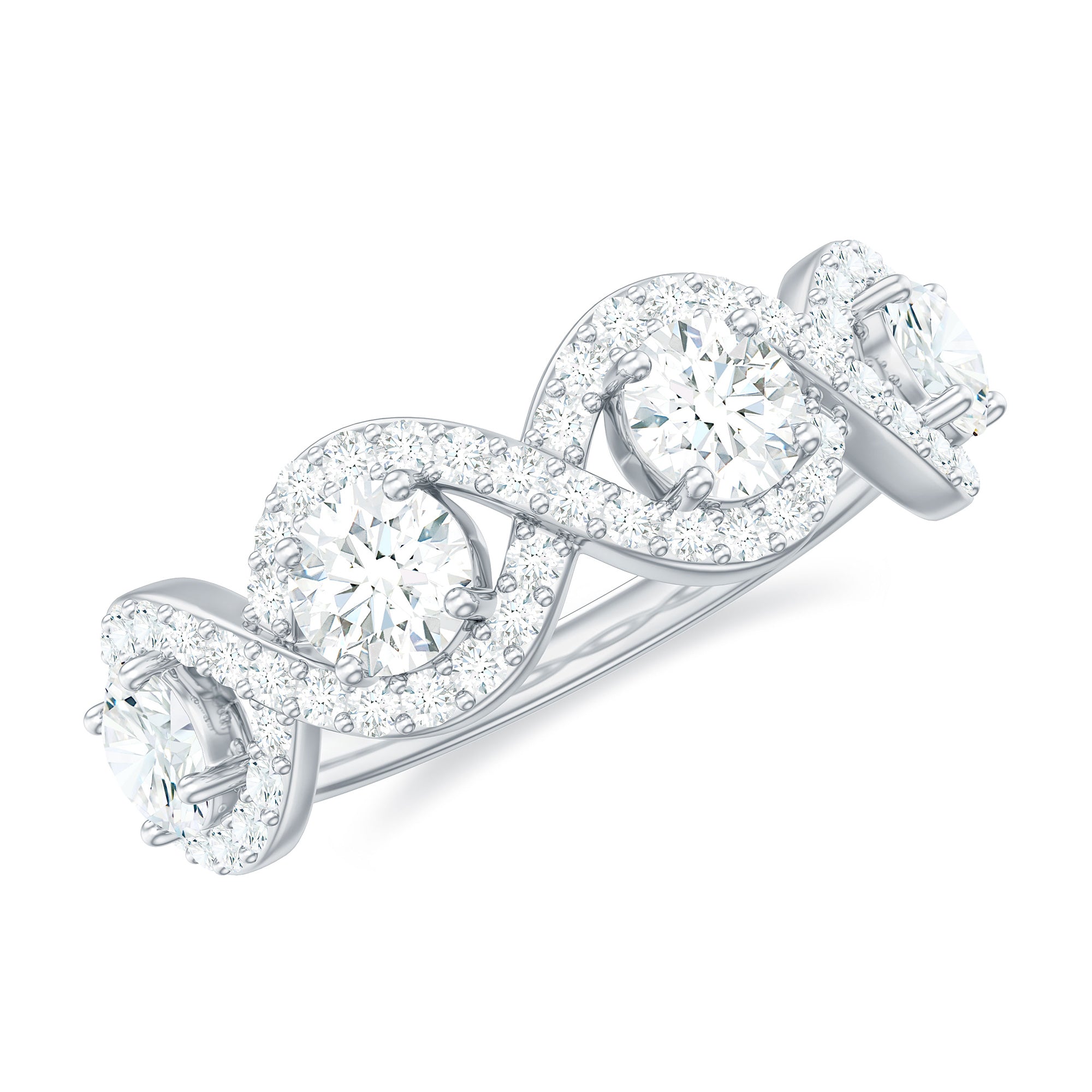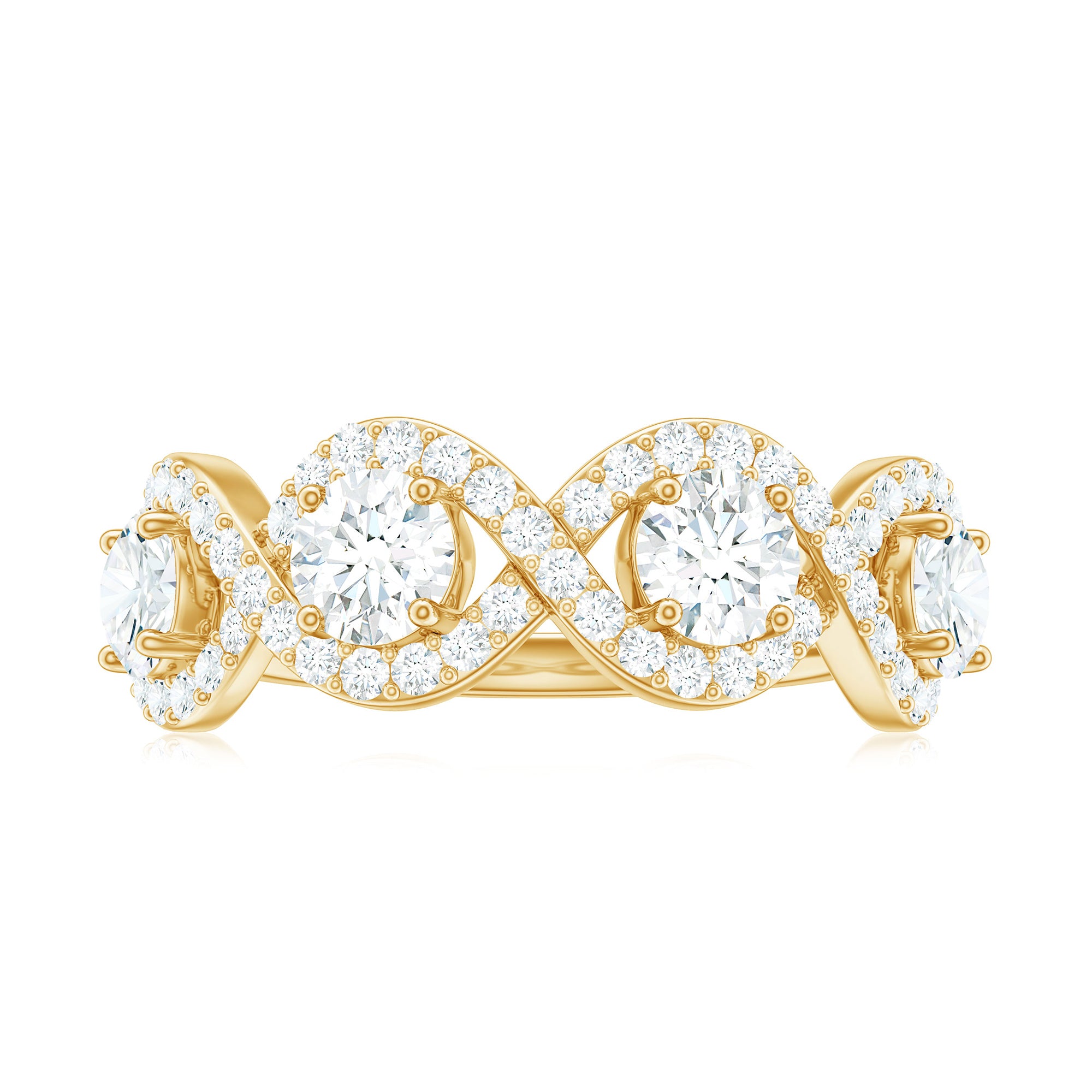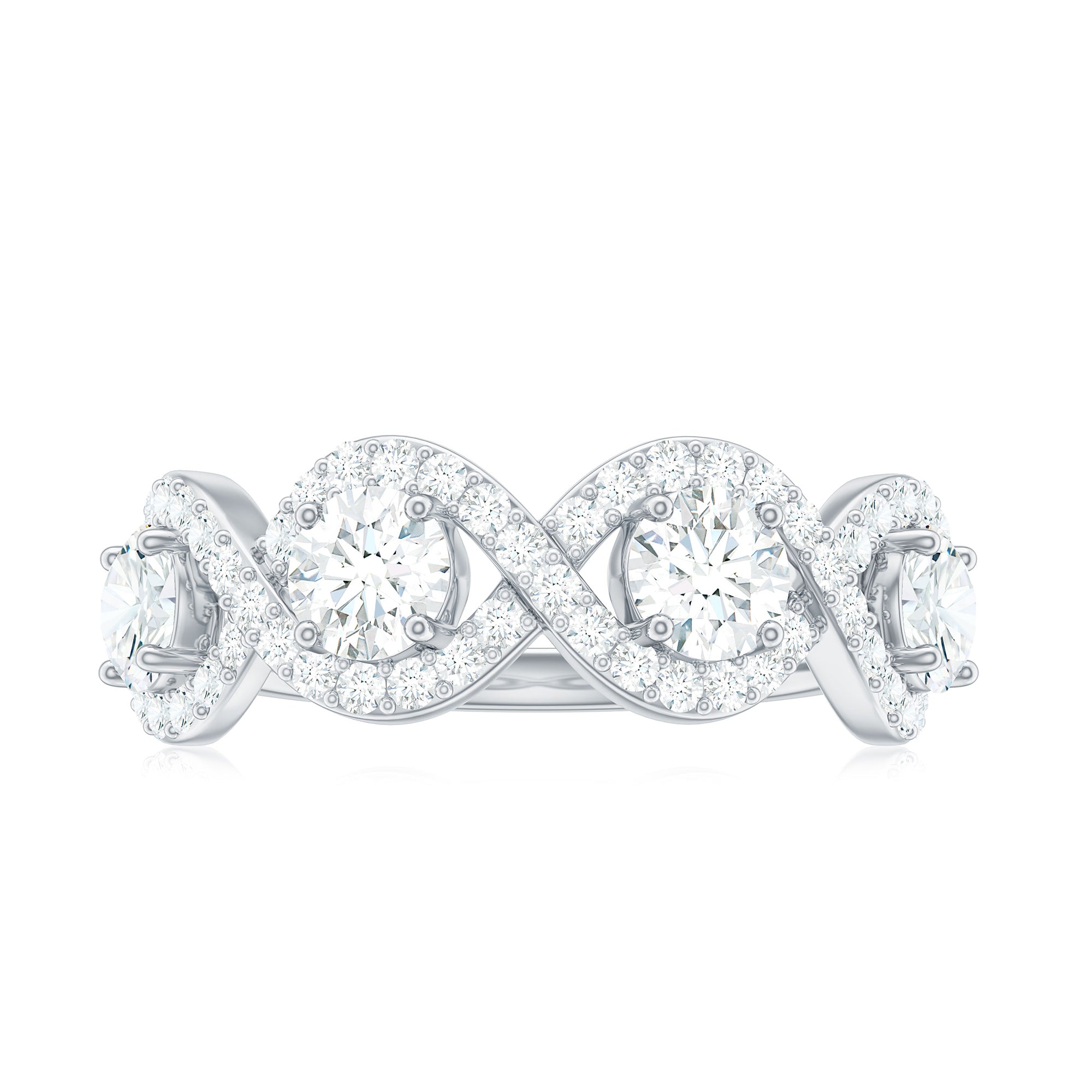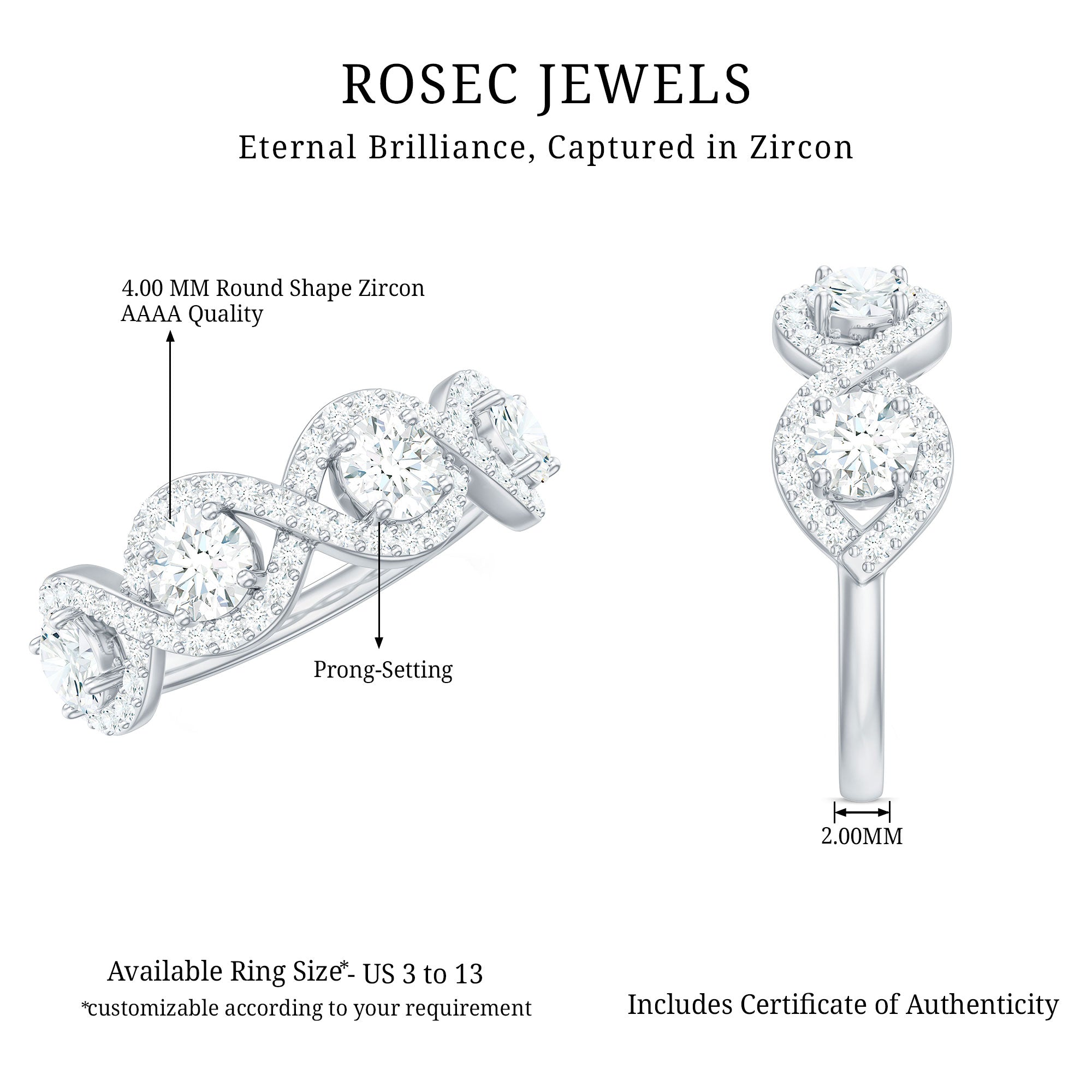 This Half Eternity Ring makes a special and unique present for your lady love. Embellished with Round Cut Zircon in Prong Setting with infinity design.