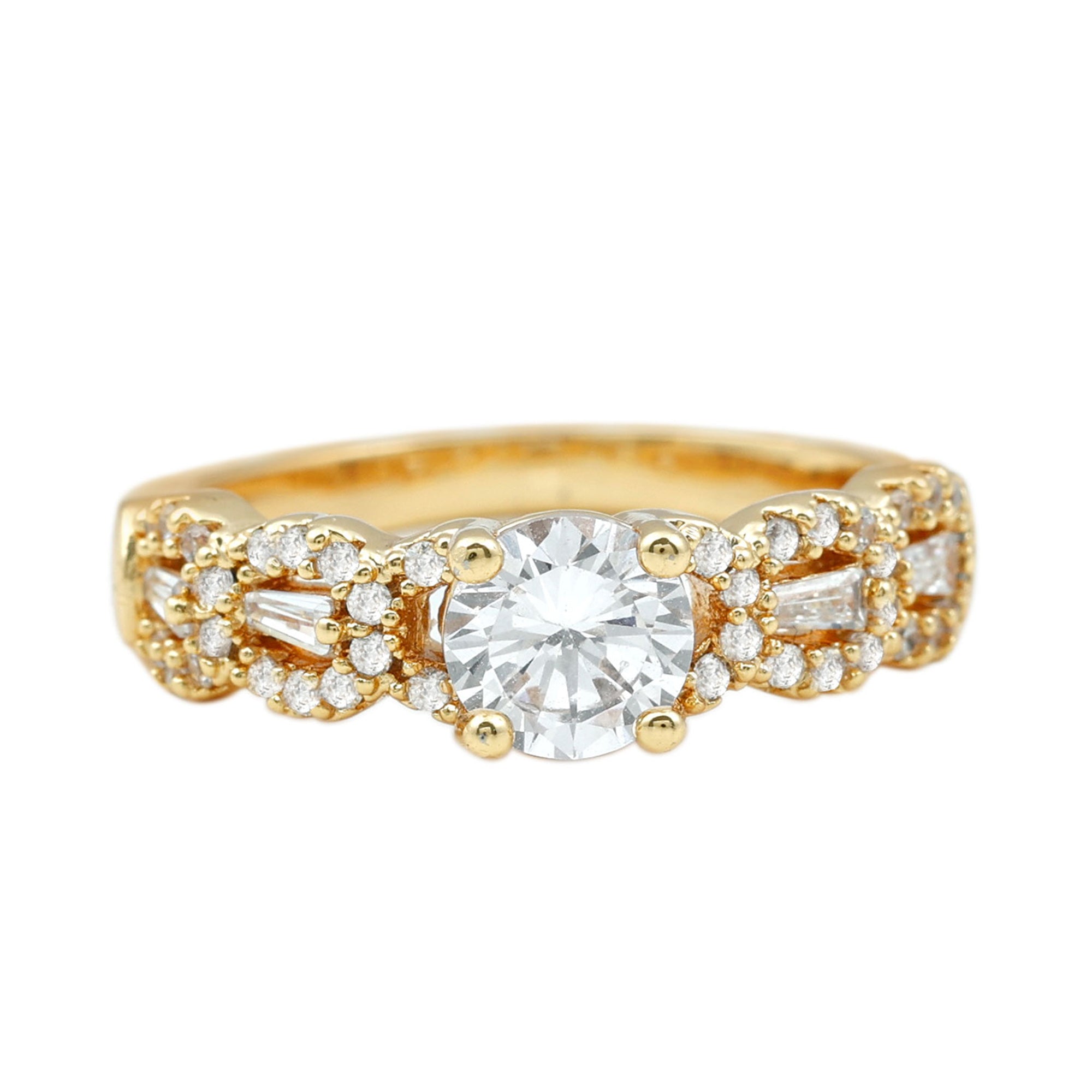 The Designer Engagement Ring is elegantly adorned with Round Shape Cubic Zirconia in the center while dainty Round and Baguette Cut Cubic Zirconia is set on both sides to make it a magnificent choice. Whether its a day plan or a night out with your girls, our Cubic Zirconia Ring will never disappoint you. Surprise your favorite person on your special day with this Zircon Ring as an anniversary gift and get that priceless smile on her face.