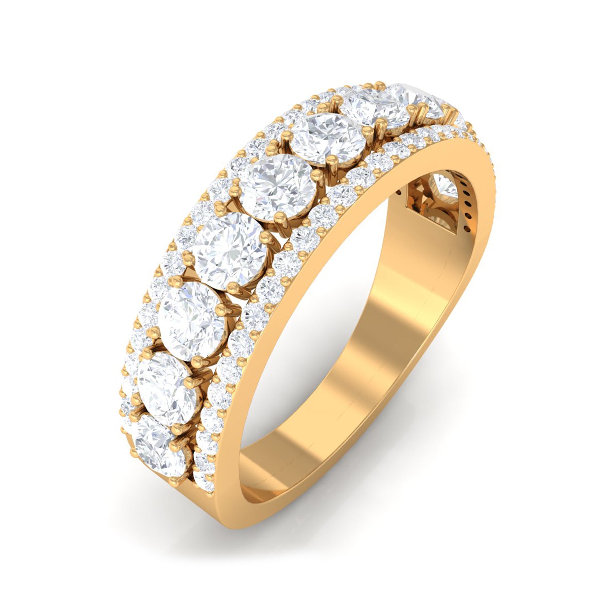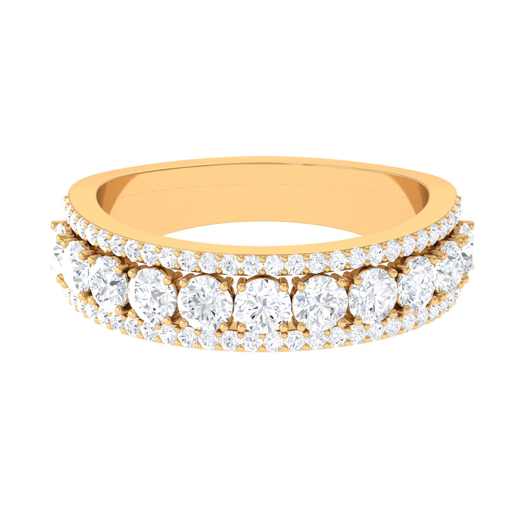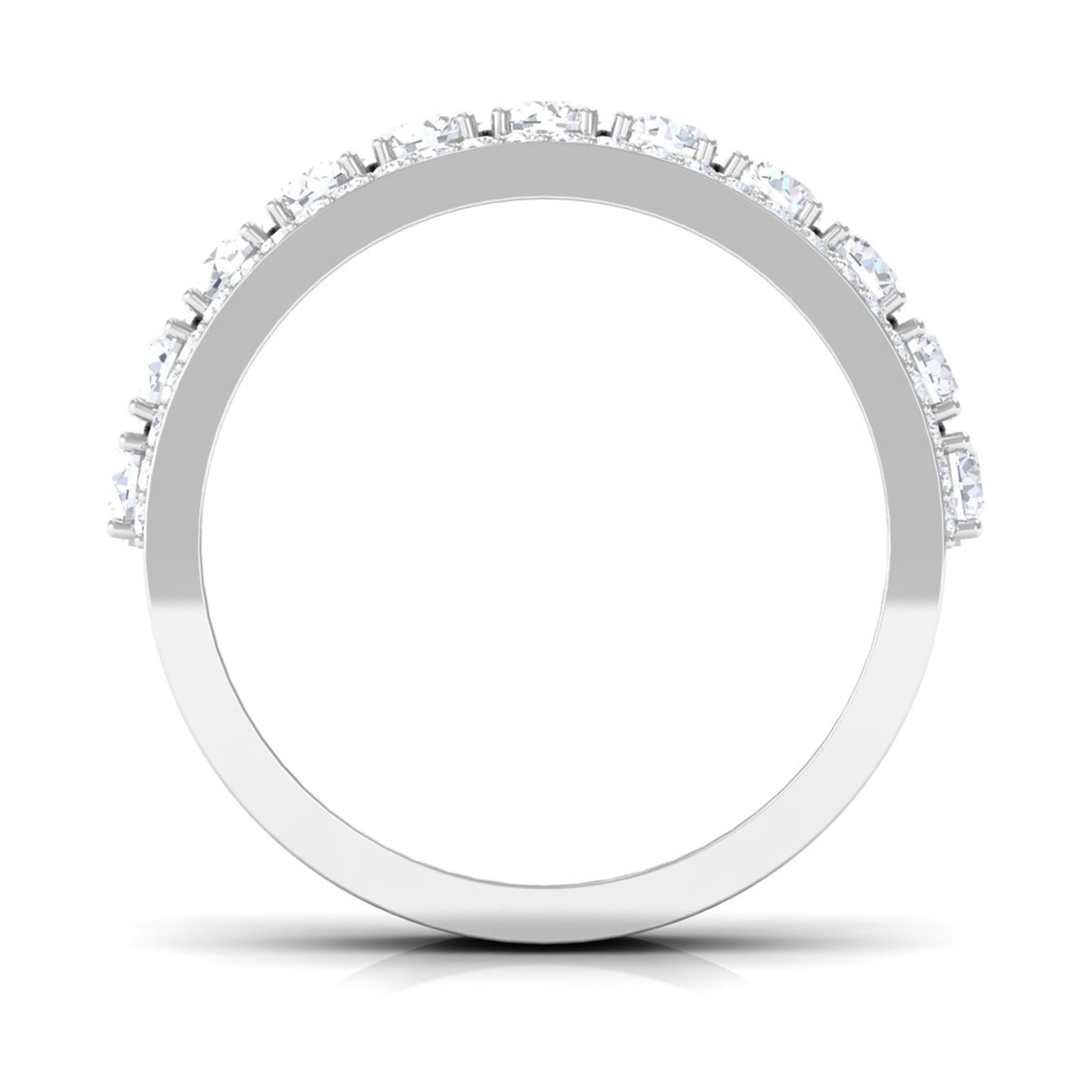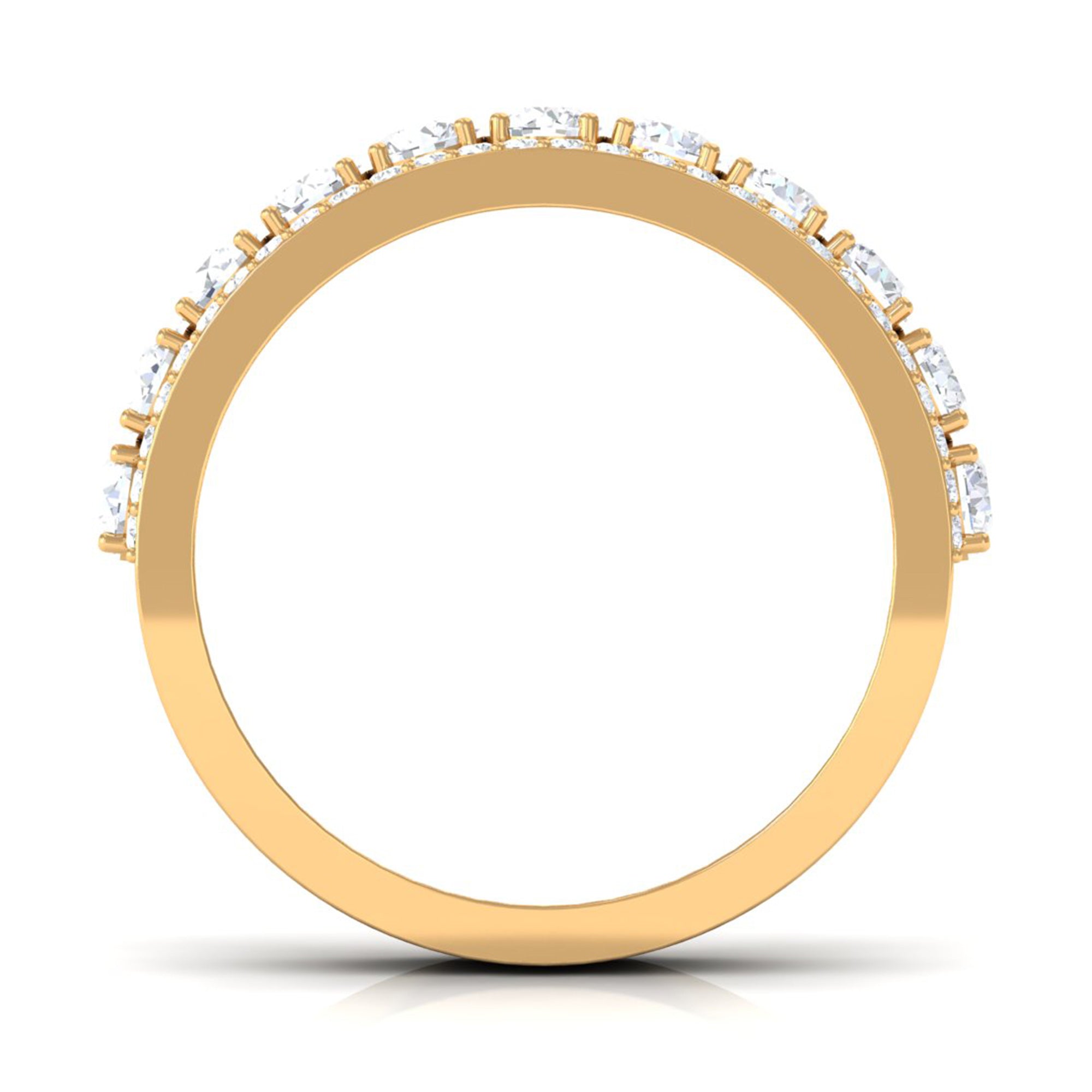 As special as your beloved, this Wedding Band Ring is embellished with a Round Zircon row between the rows of dainty Round Shape Zircons secured in Pave Setting. Create a romantic moment by presenting this Cubic Zirconia Half Eternity Ring on her special day and make her dance with happiness.