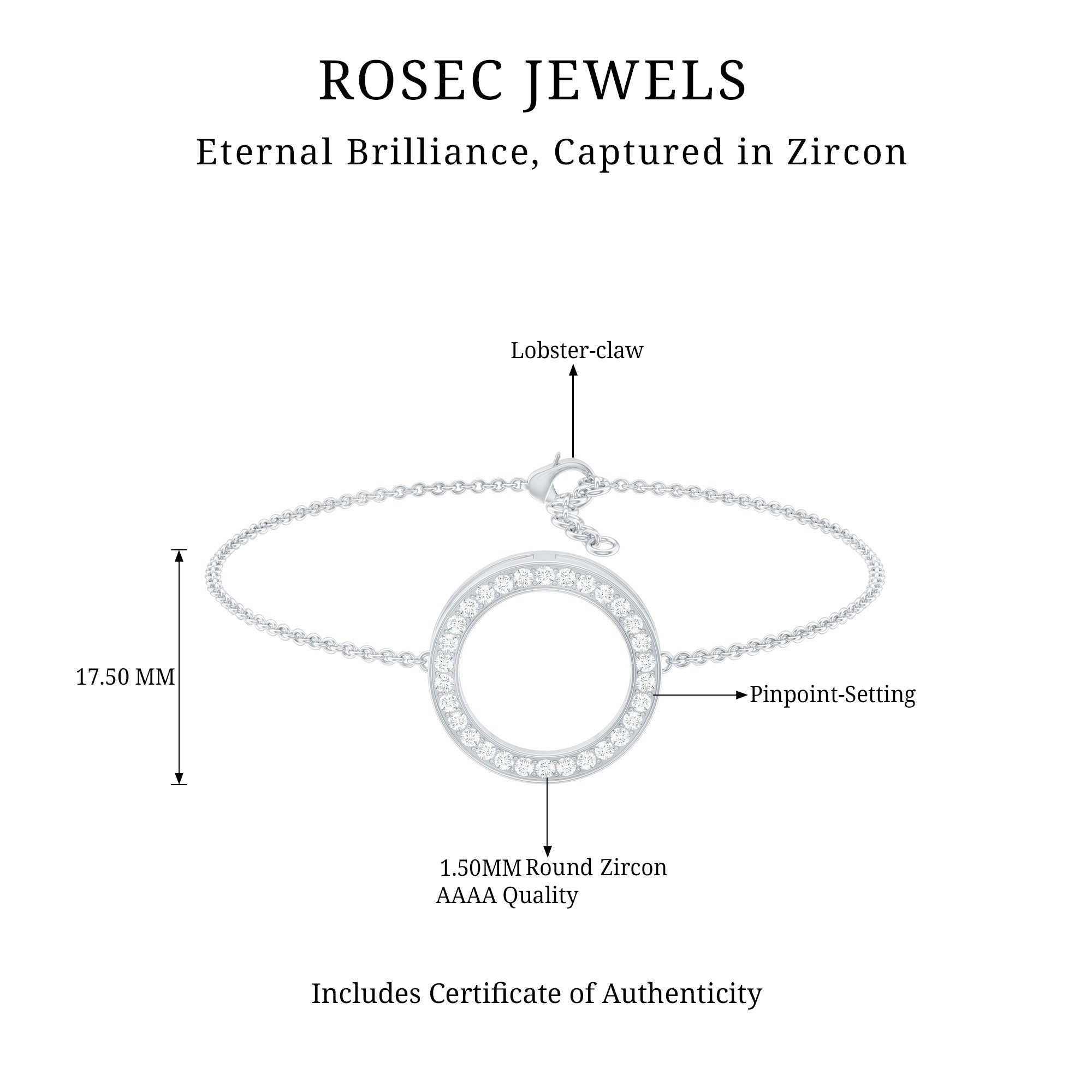 This Open Circle Chain Bracelet showcases an open circle adorned with sparkling Cubic Zirconia accents, adding a touch of sophistication to any ensemble. The Zircon bracelet is secured with a dependable Lobster Clasp, ensuring both style and convenience.