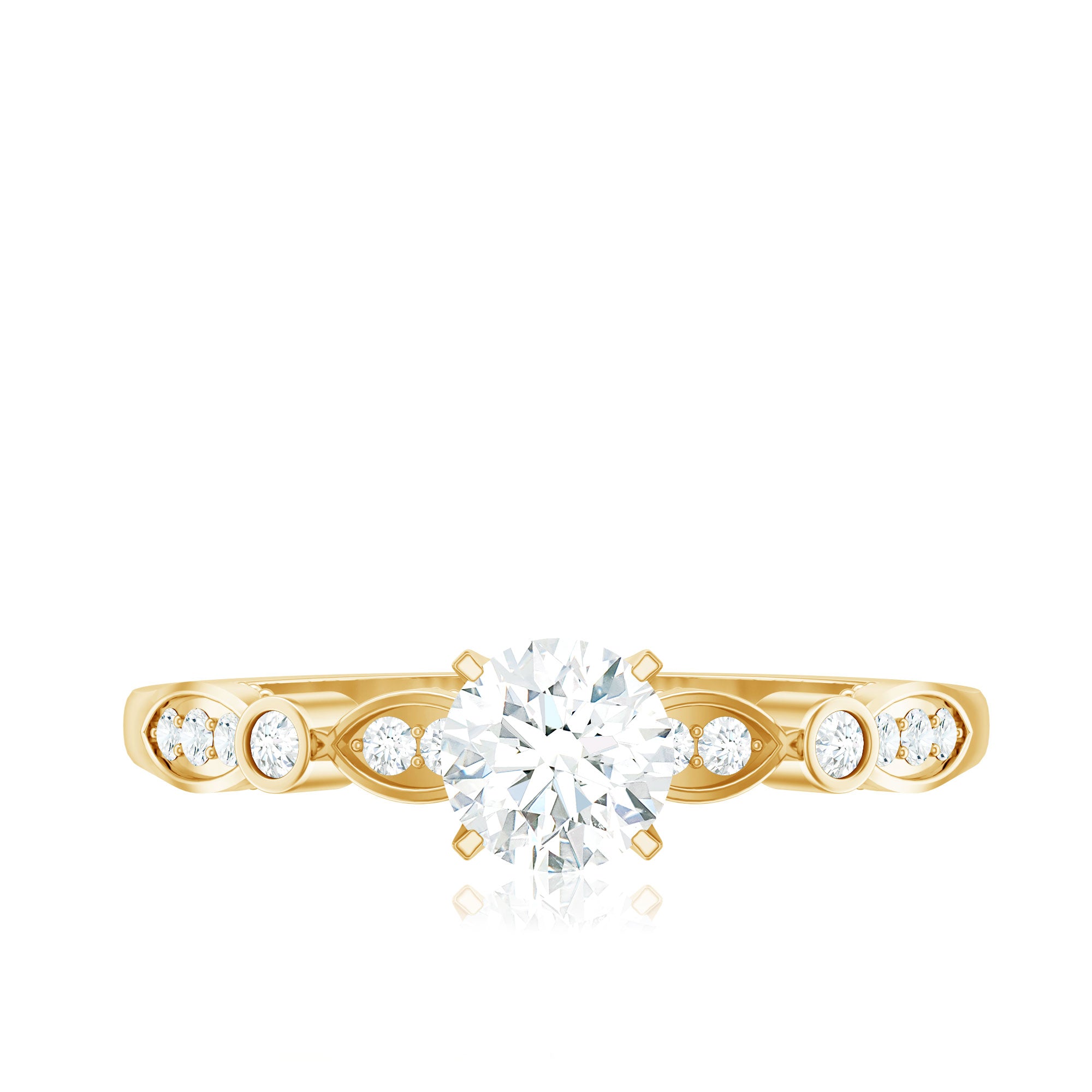Simple and elegant this Solitaire Ring is a must-have for your collection, adorned with Round Cut Zircon in Prong Setting with Side Stones.
