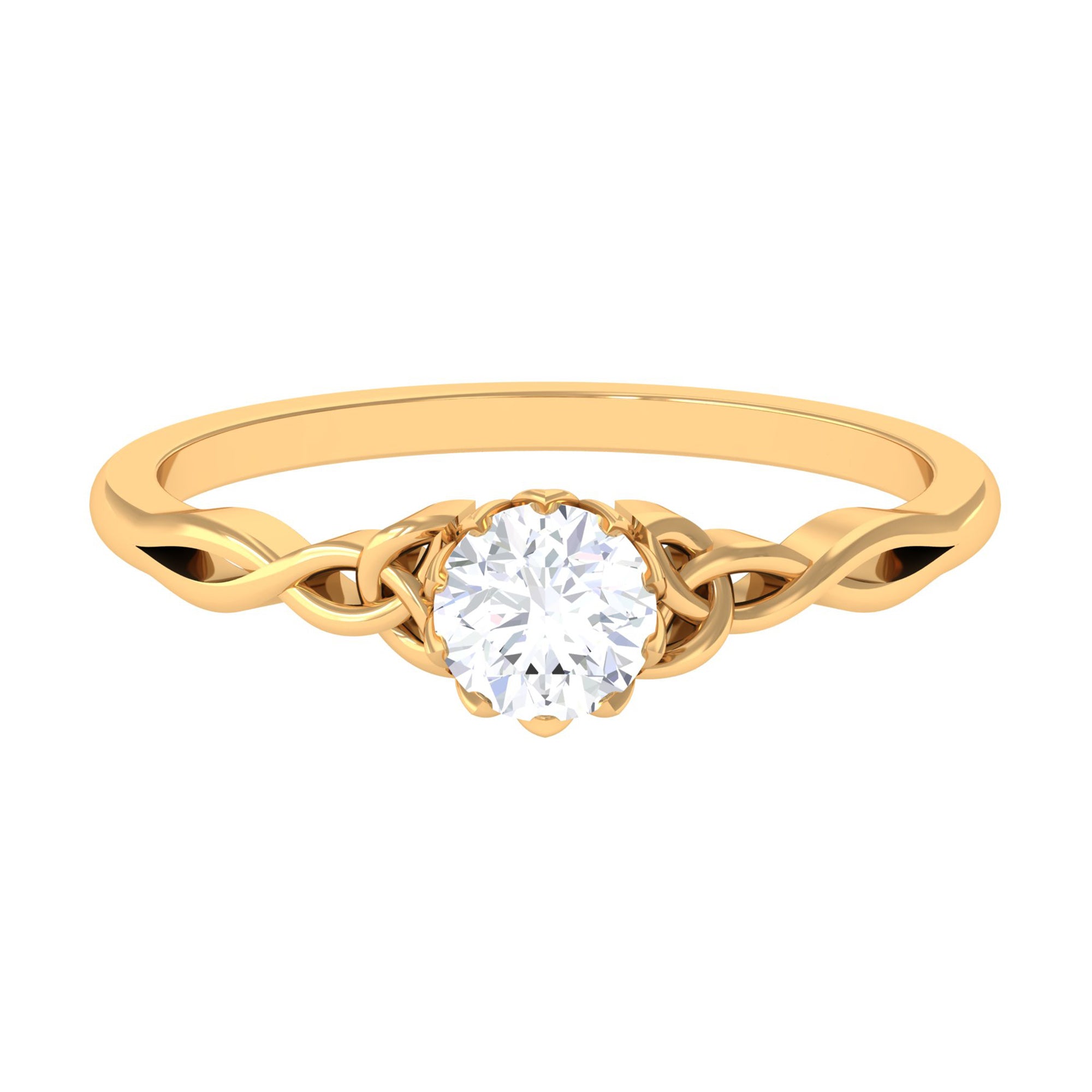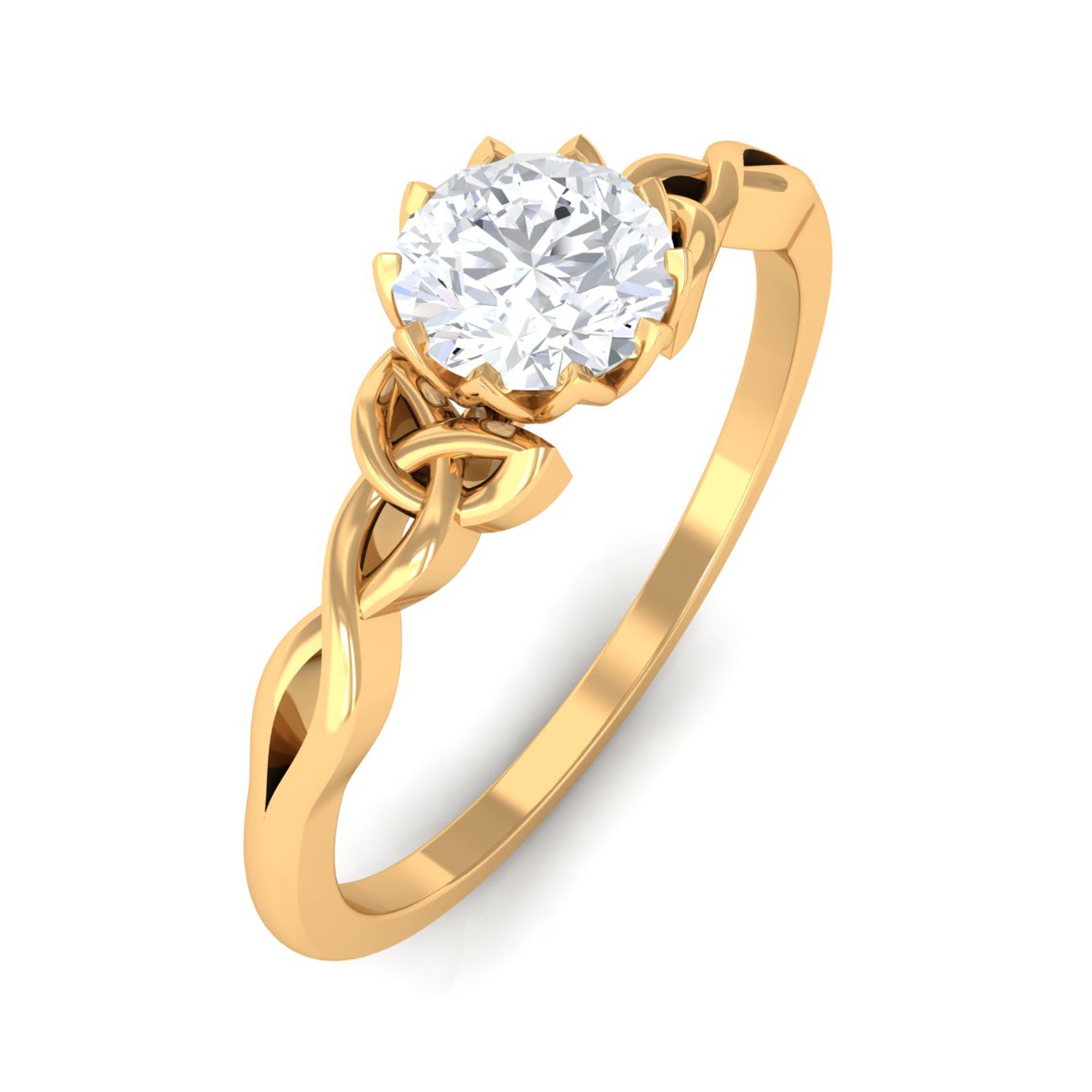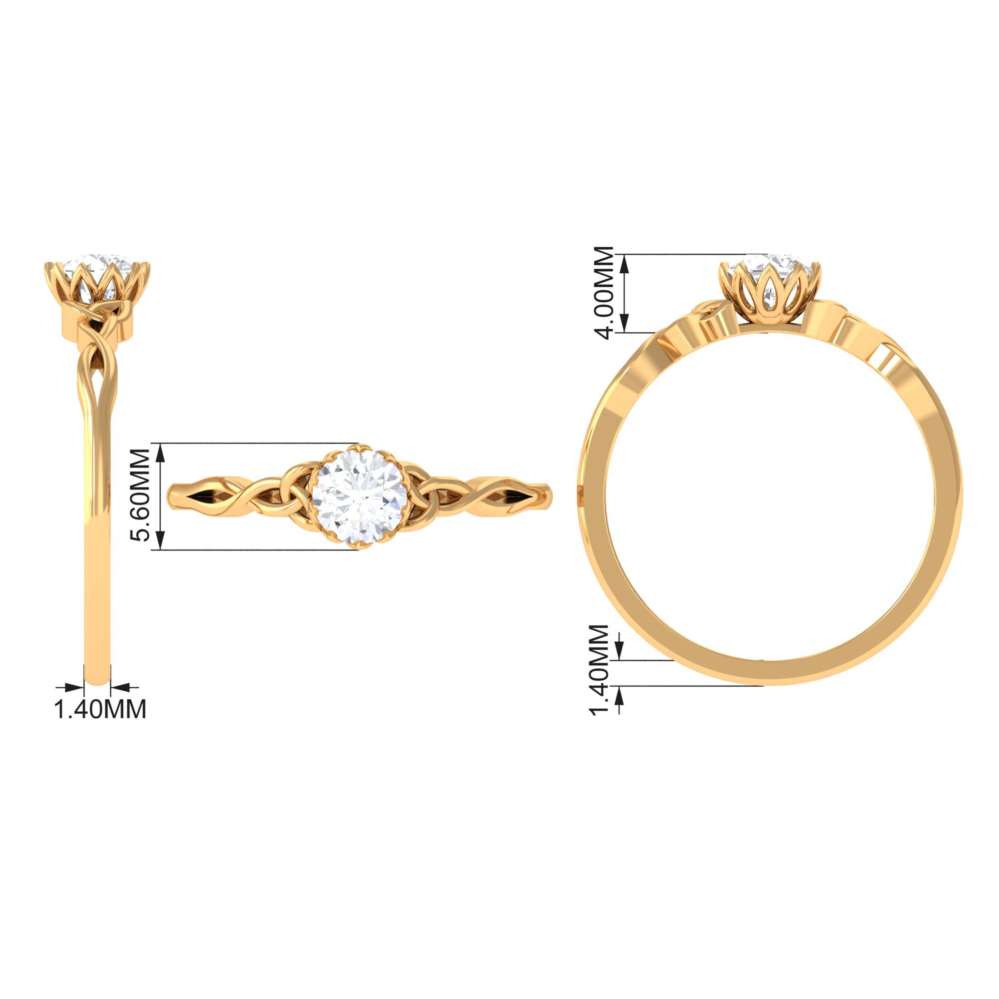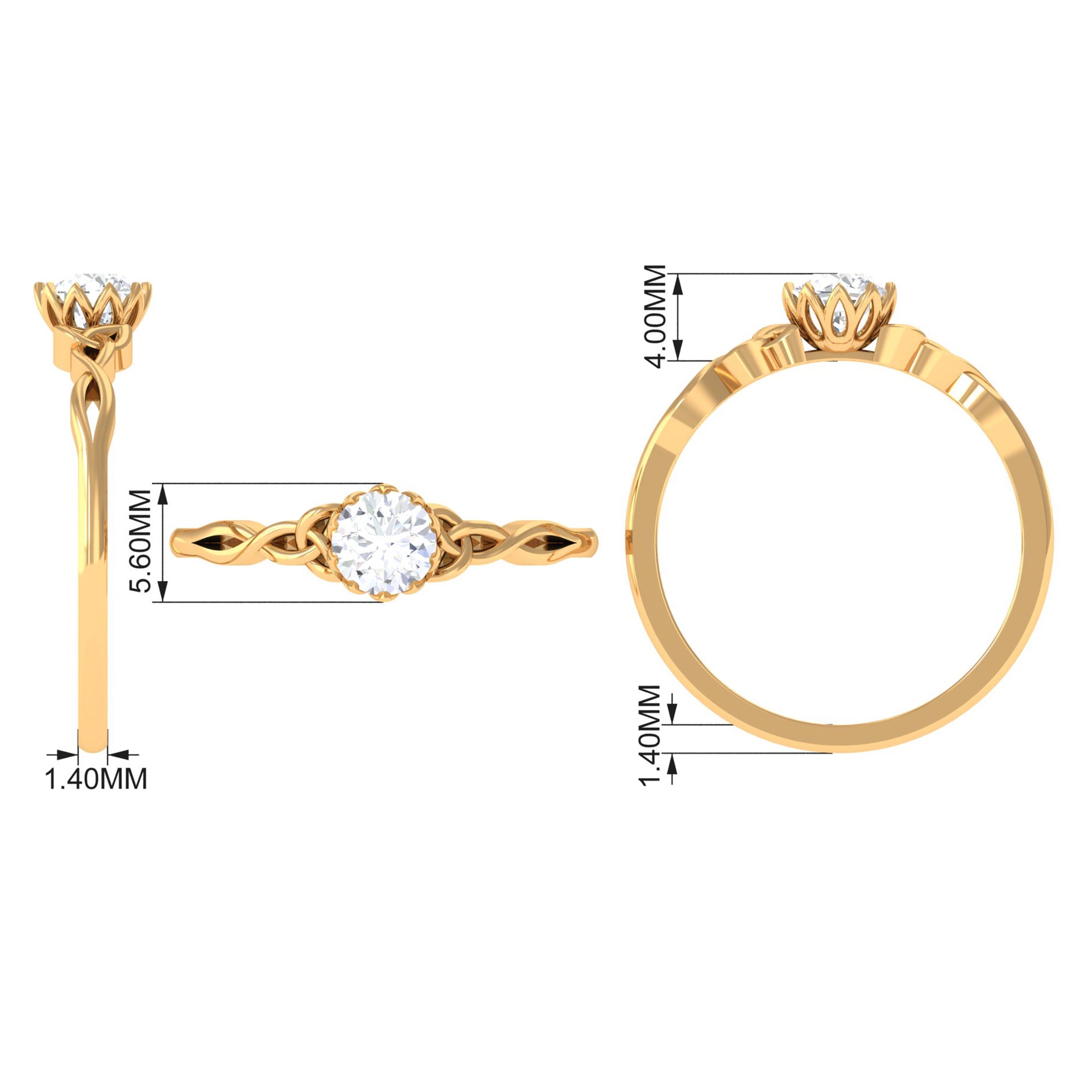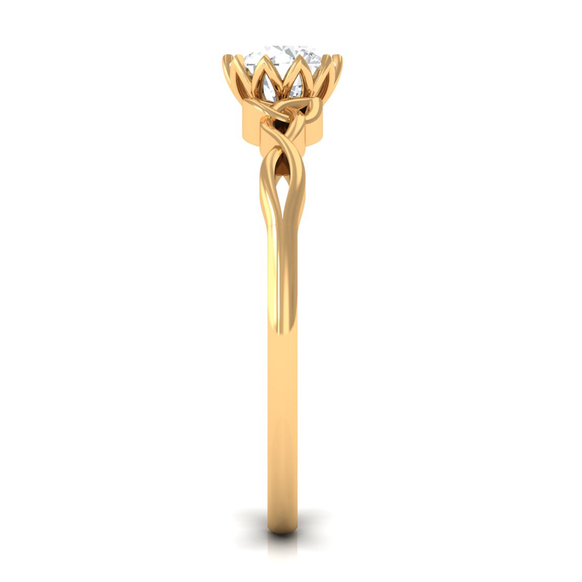 This Solitaire Ring is adorned with Round Cut Zircon in Lotus Basket Setting with Celtic Knot details is a perfect jewelry for your everyday wear.