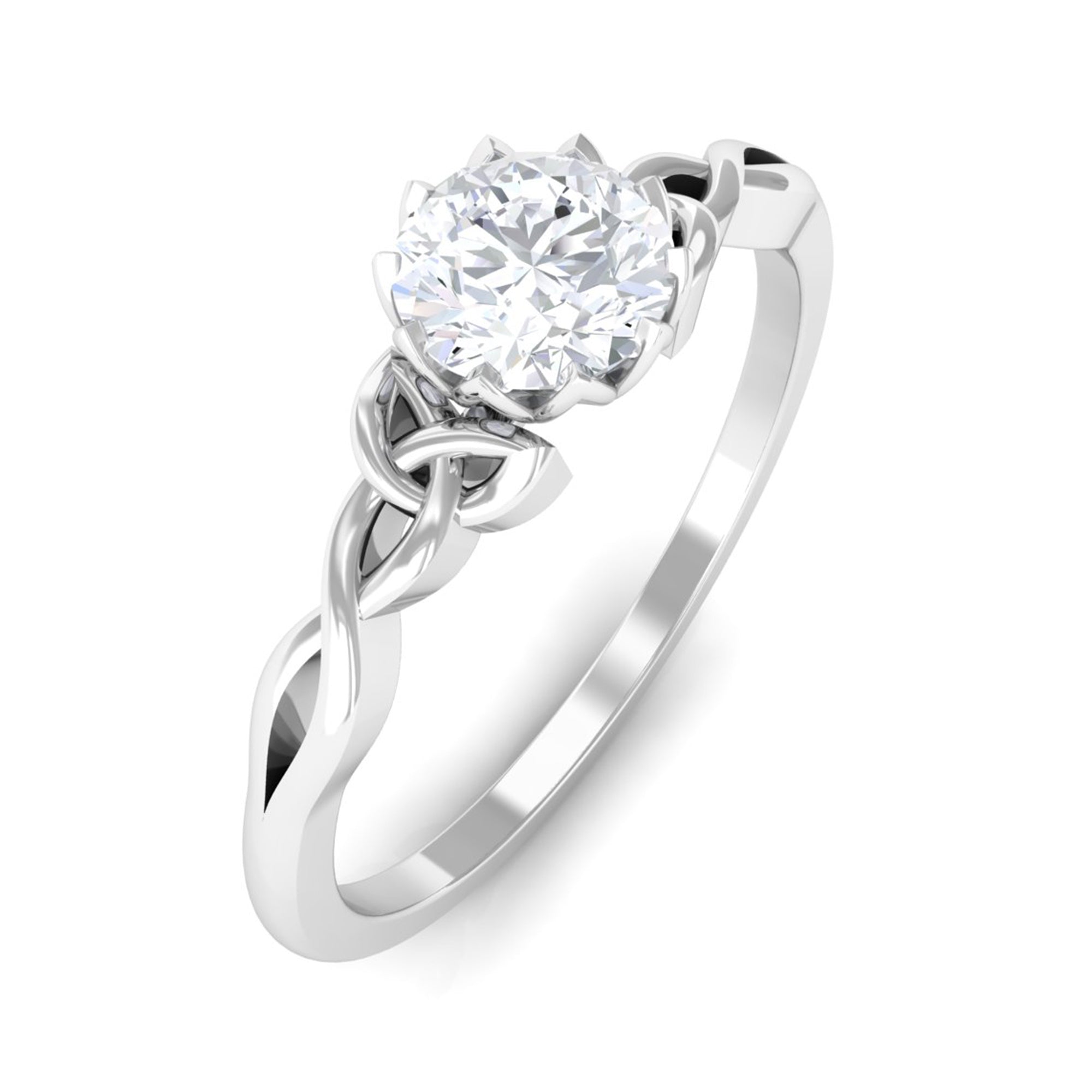 Cubic Zirconia Solitaire Celtic Knot Ring in Floral Setting