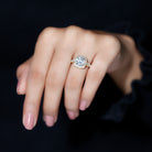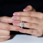 The Zircon Engagement Ring is adorned with Cushion Cut Zircon in the center while Round Cut Zircon studded as Halo and on the shank to make it a magnificent choice. • Whether its a day plan or a night out with your girls, our Cubic Zirconia Ring will never disappoint you with its charm.