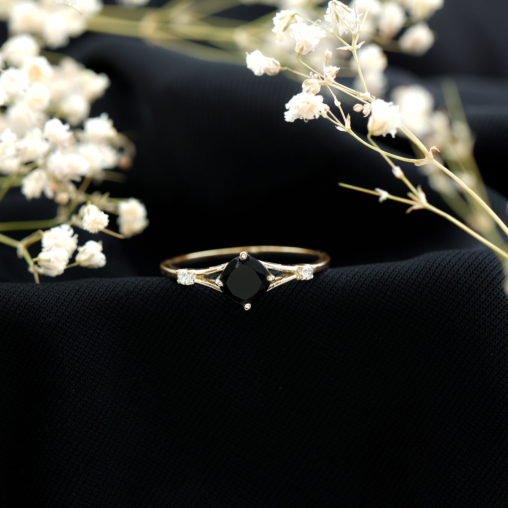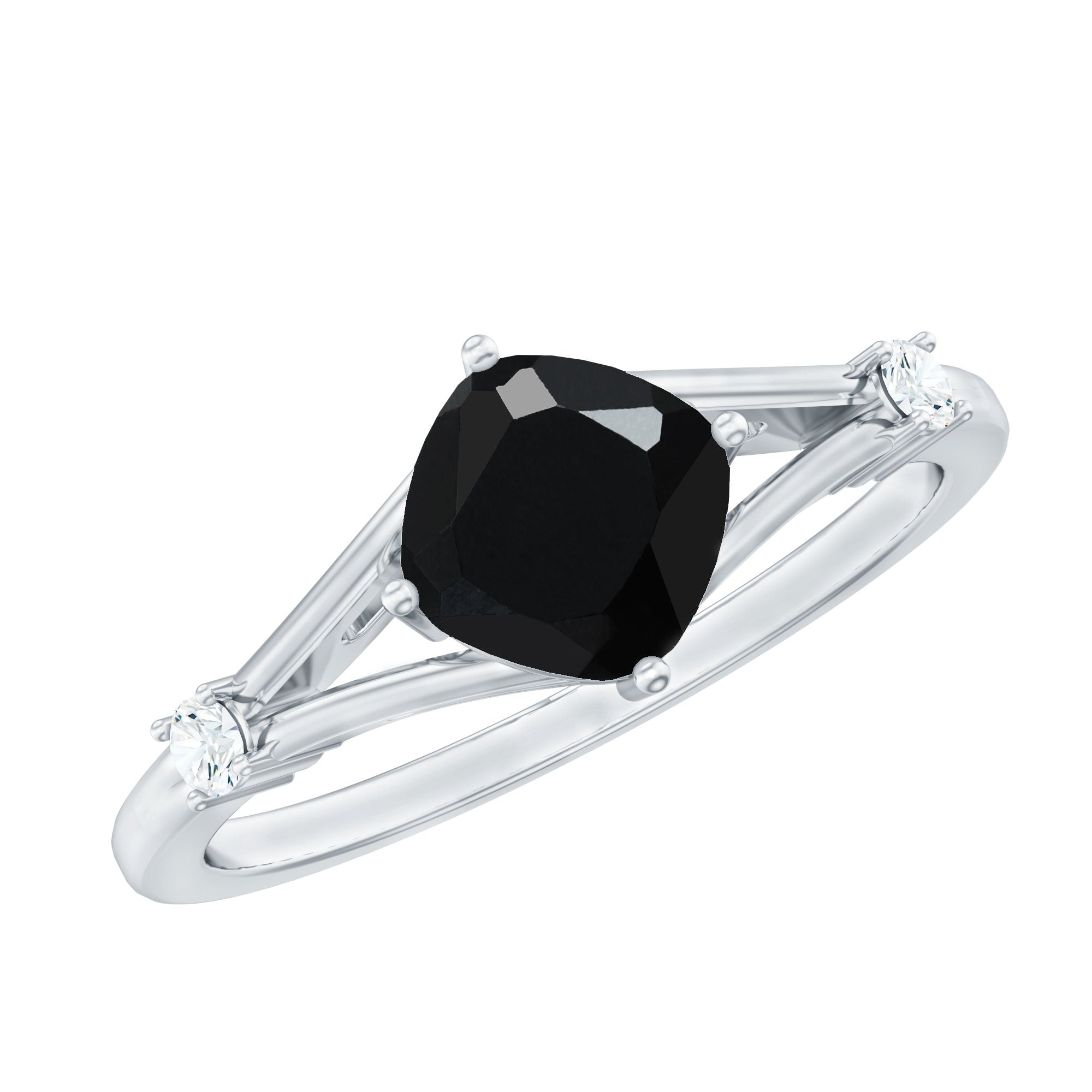 Cushion Black Onyx Split Shank Engagement Ring with Diamond