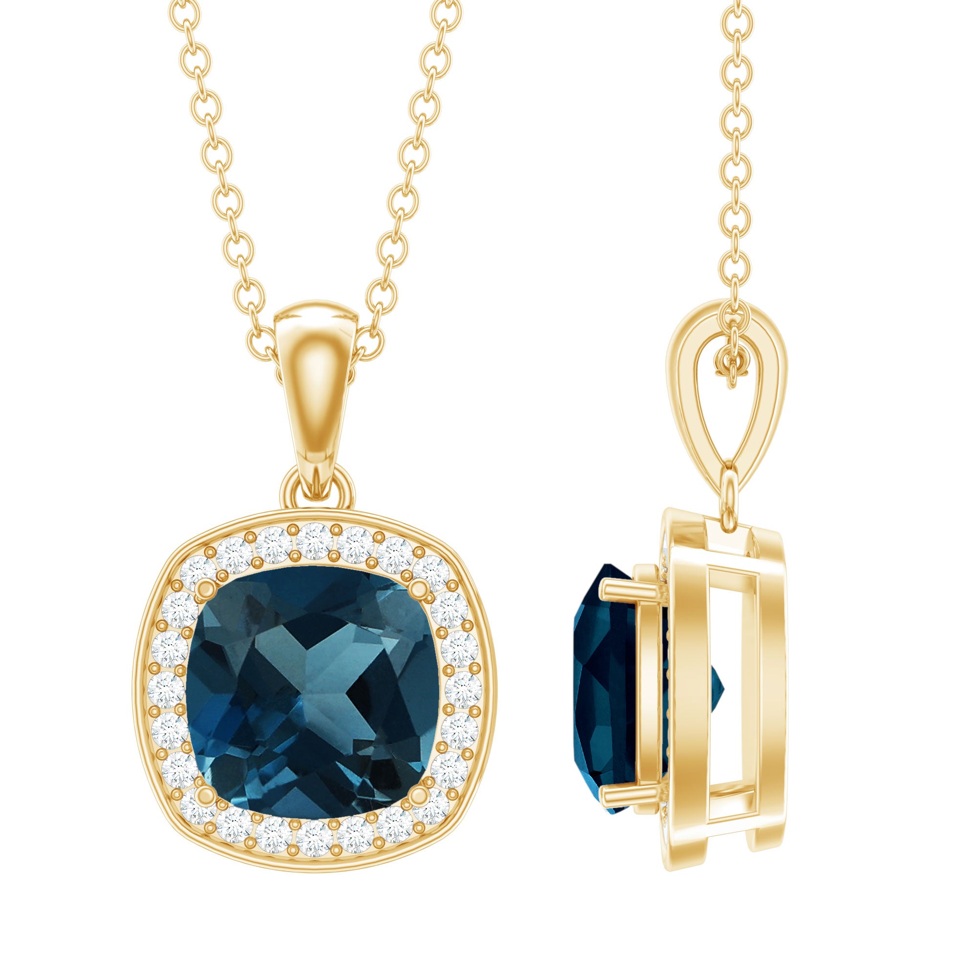 Cushion Cut 8 MM London Blue Topaz Pendant with Diamond Halo