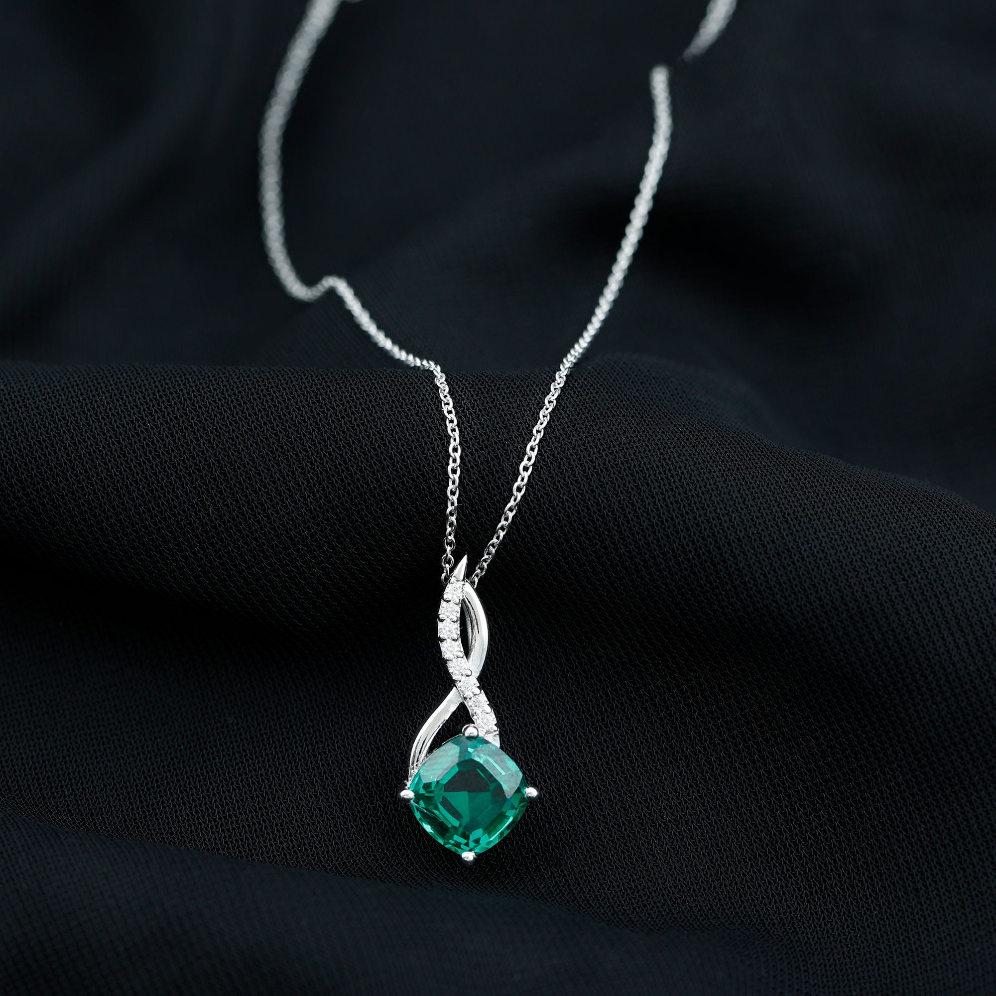 Cushion Cut 8MM Lab Created Emerald Infinity Necklace with Moissanite