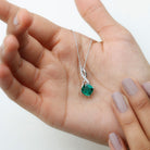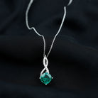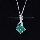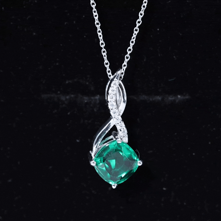 Turn heads with this stunning Emerald Pendant Necklace made from 14K white gold plated silver. It showcases an 8 MM Cushion Cut lab grown emerald held securely in prong setting at the bottom of an infinity frame, which is partially embellished with round cut Moissanite stones. The Lab Grown Emerald Pendant features a hidden bail and radiates the timeless brilliance of AAAA Quality Emerald, making it an ideal accessory to elevate your style. This Infinity Sign Necklace hangs gracefully from a sturdy chain, ensuring it sits perfectly on your neckline. Symbolizing everlasting love, creativity, and hope, this womens pendant necklace will arrive in a velvet pouch along with a certificate of authenticity.