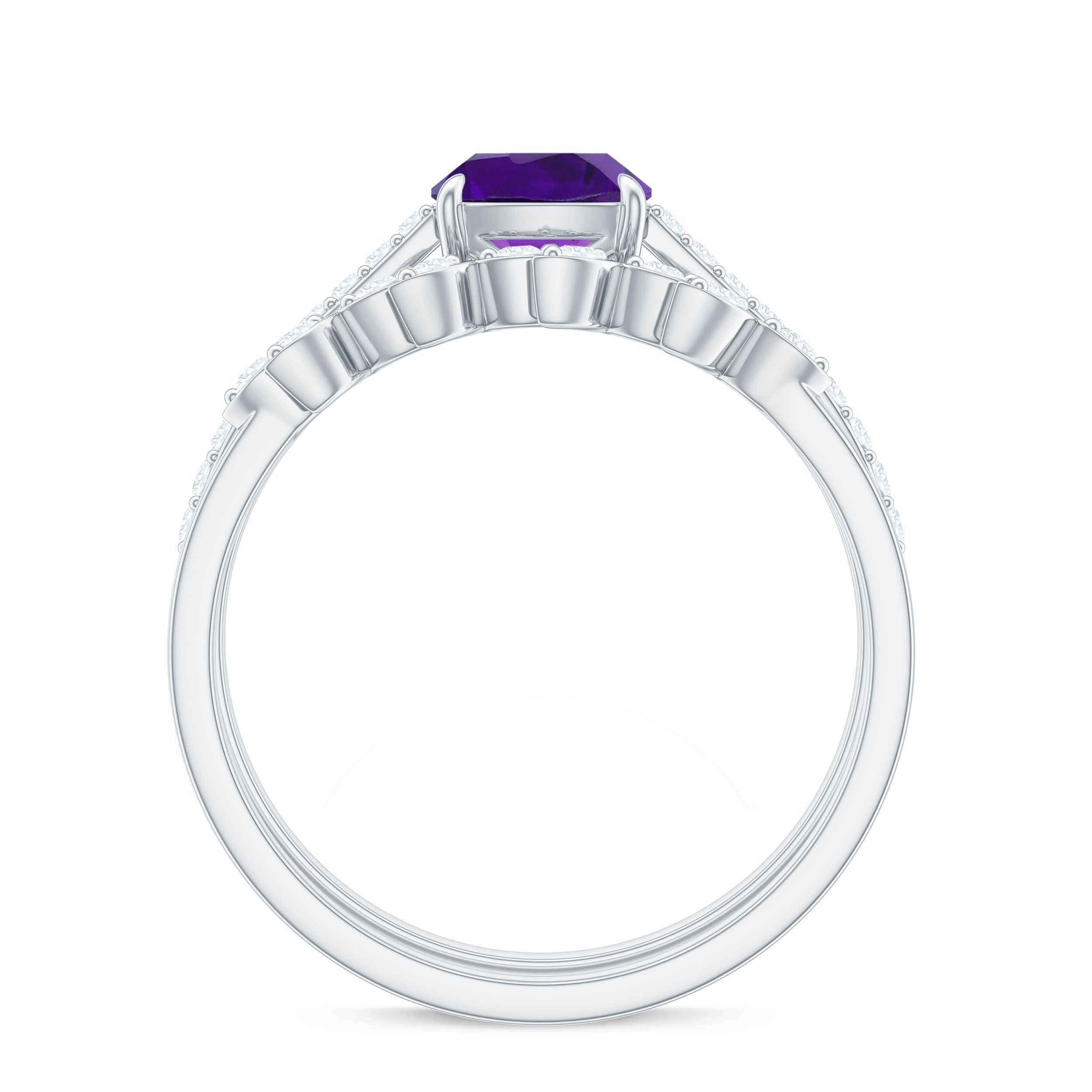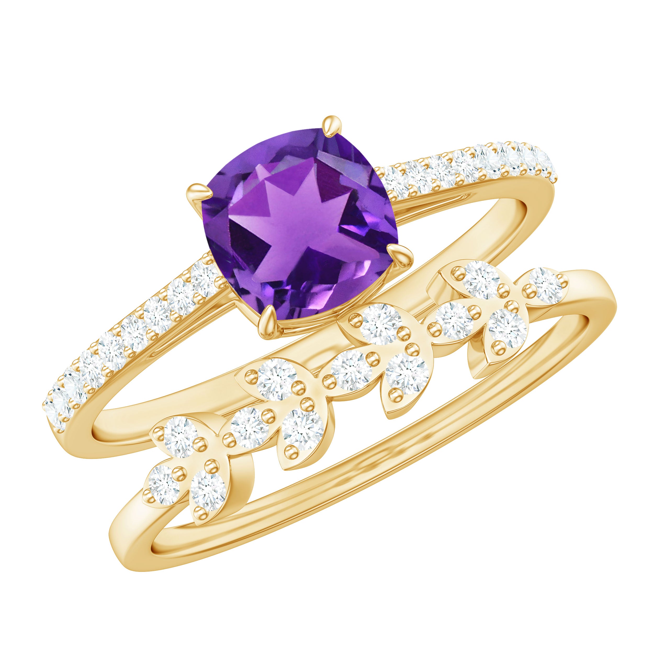 Cushion Cut Amethyst Wedding Ring Set with Diamond