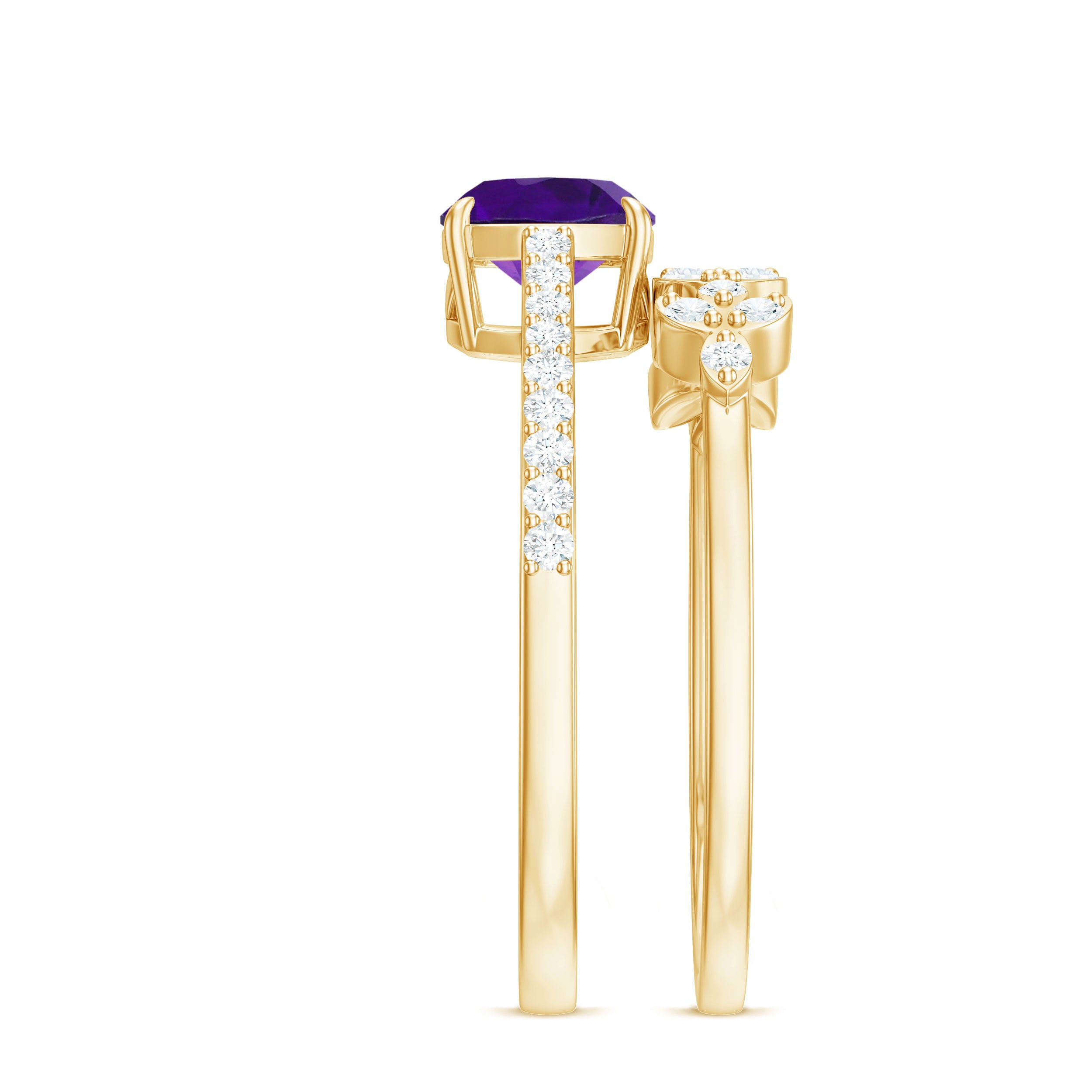 This stunning Ring Set features a mesmerizing combination of Amethyst and Diamond. A perfect choice for those seeking a unique piece of jewelry.