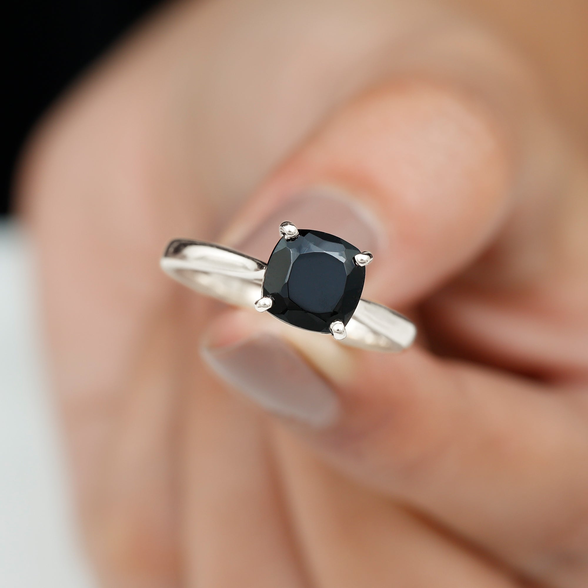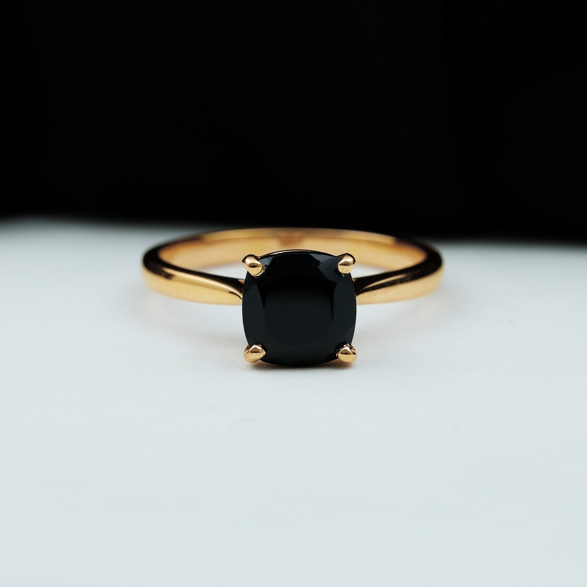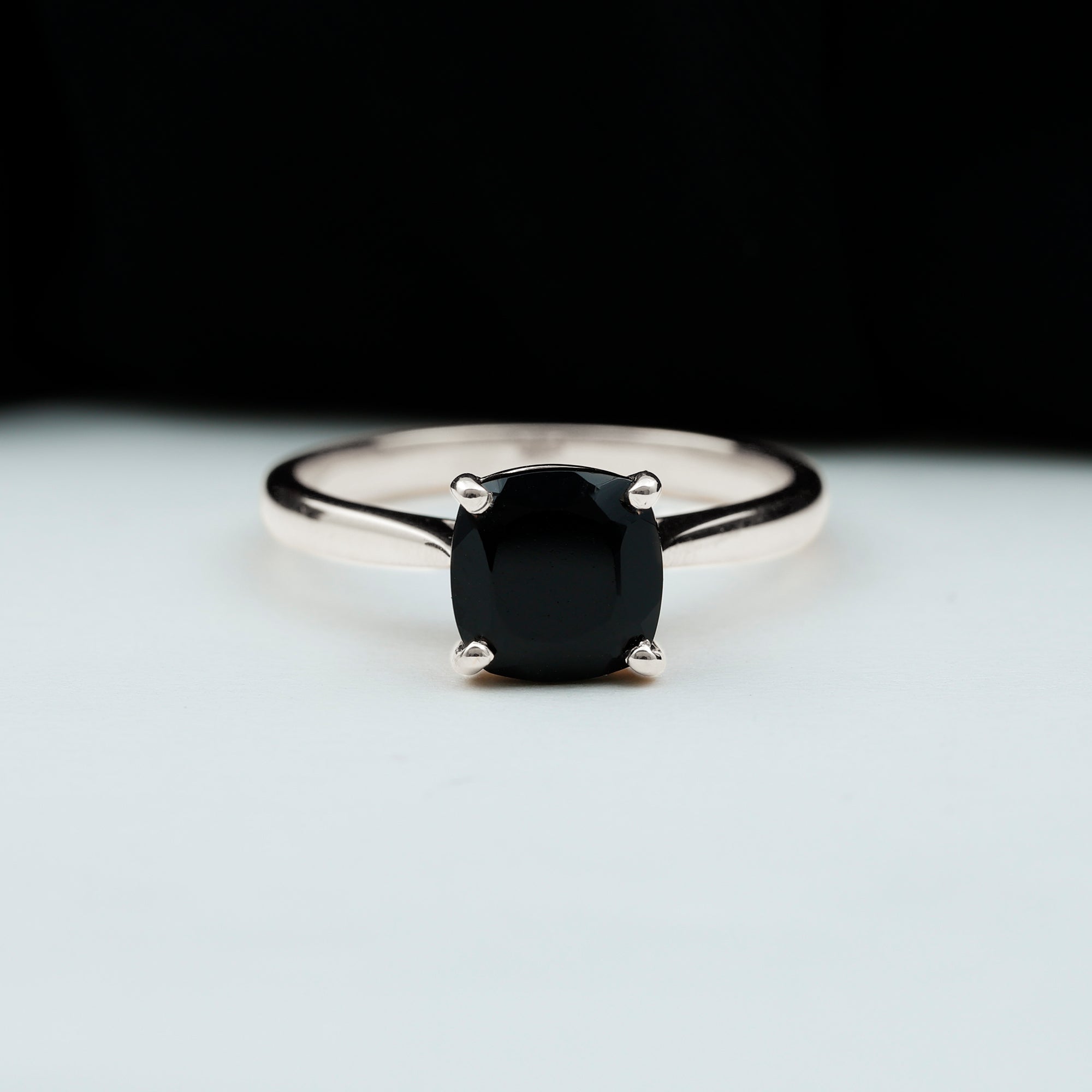 8MM Cushion Cut Black Onyx Solitaire Engagement Ring