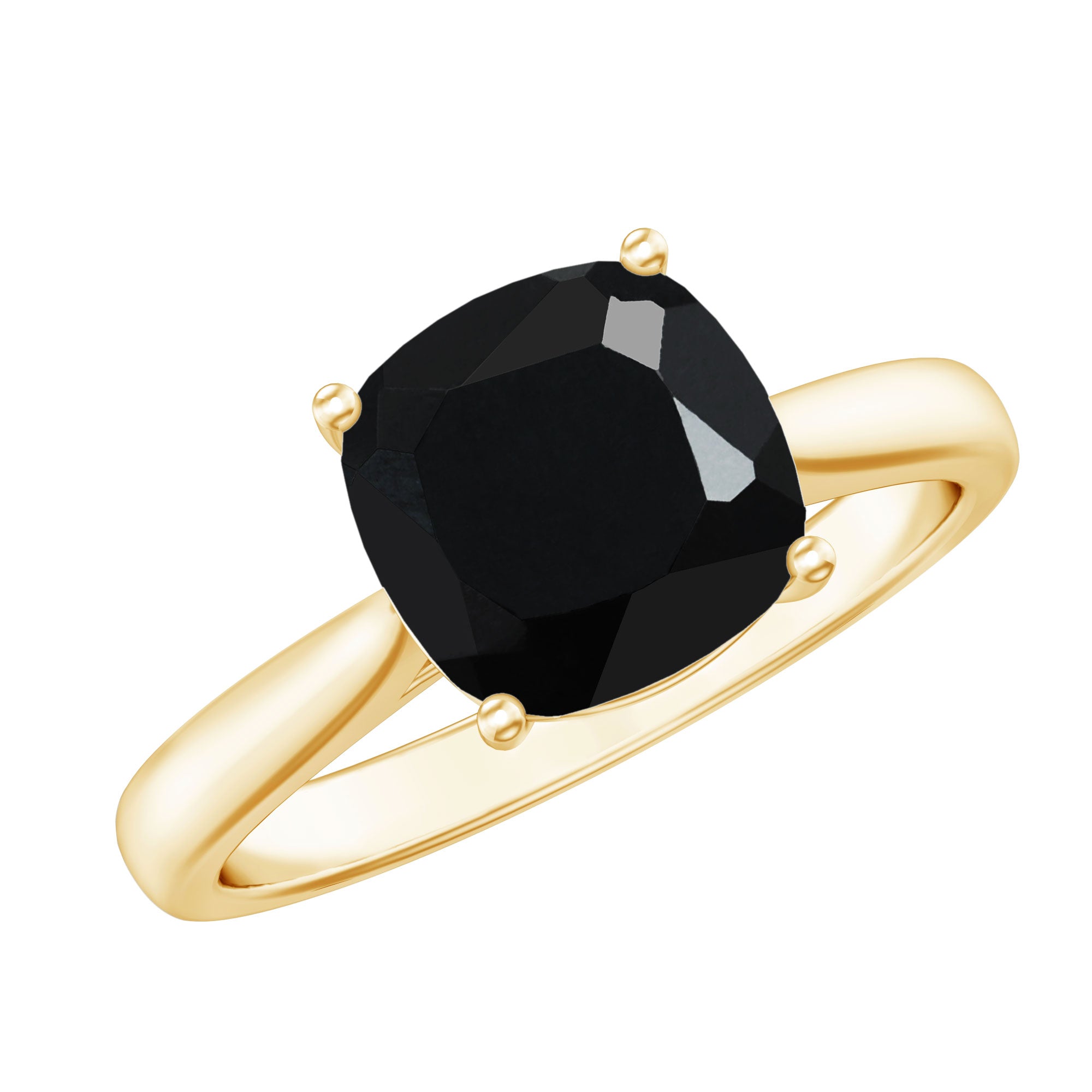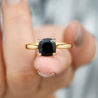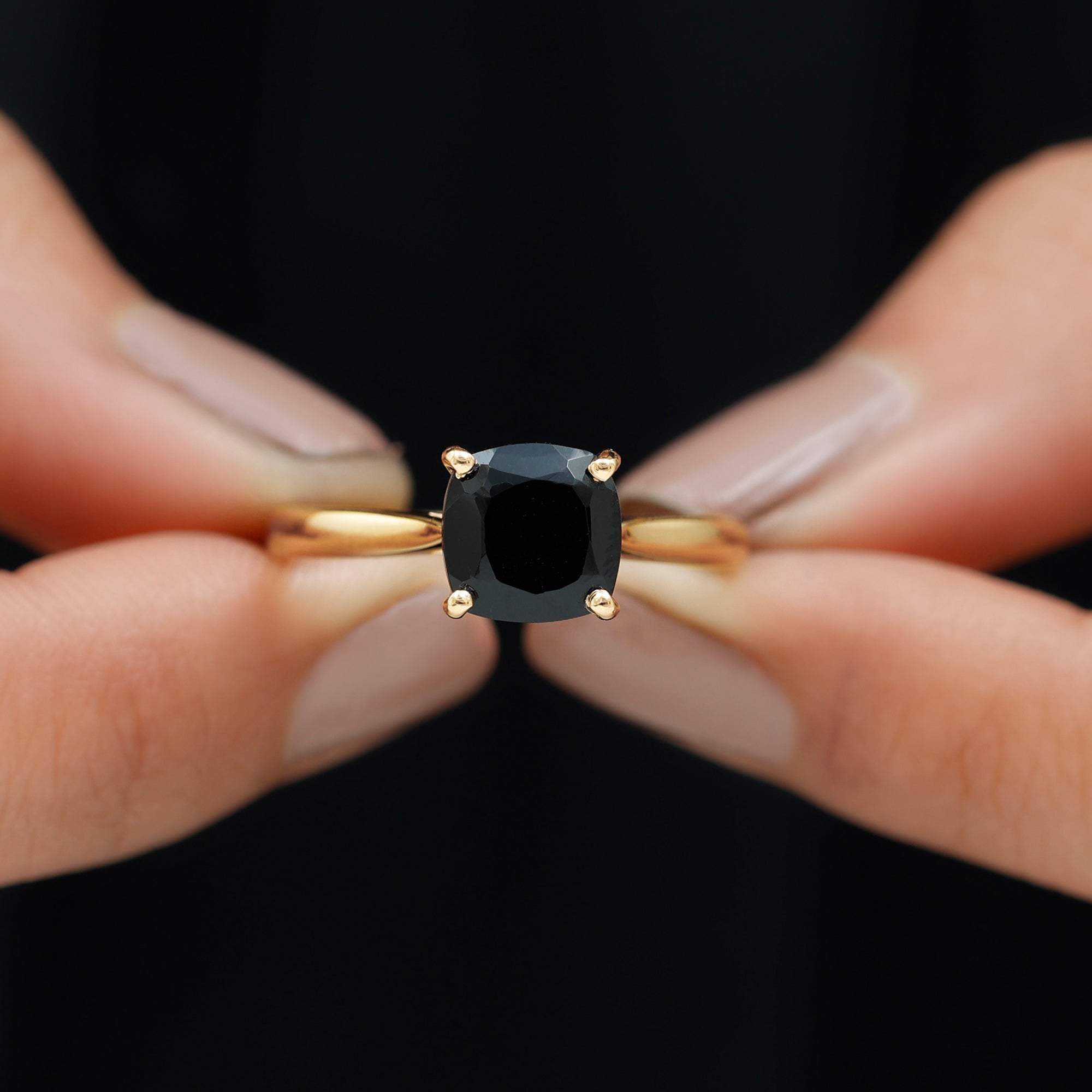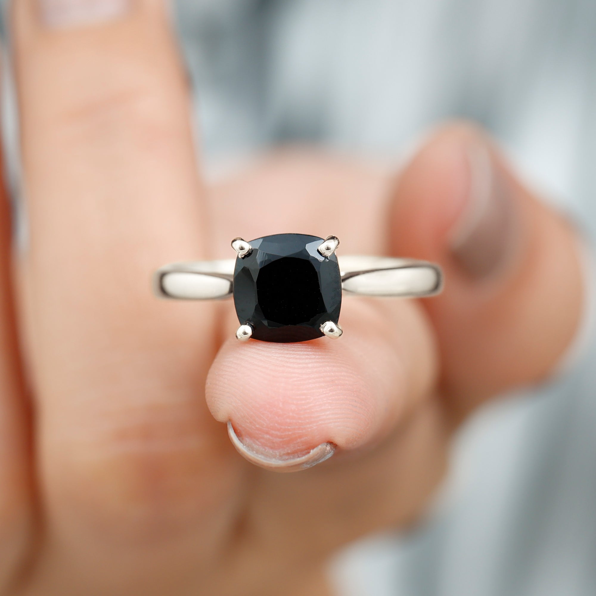8MM Cushion Cut Black Onyx Solitaire Engagement Ring