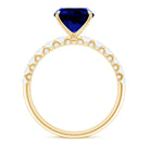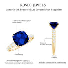 Make her the center of attention with the mesmerizing Cushion Solitaire Engagement Ring. This exquisite choice is designed to captivate her heart. At its core lies a Cushion Cut Created Blue Sapphire, skillfully placed in a claw setting that highlights its beauty. The elegance is further enhanced by the addition of Round Diamond side stones, set delicately to create a stunning display.