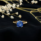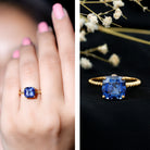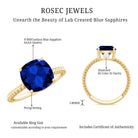 Cushion Cut Created Blue Sapphire Solitaire Ring with Surprise Diamond