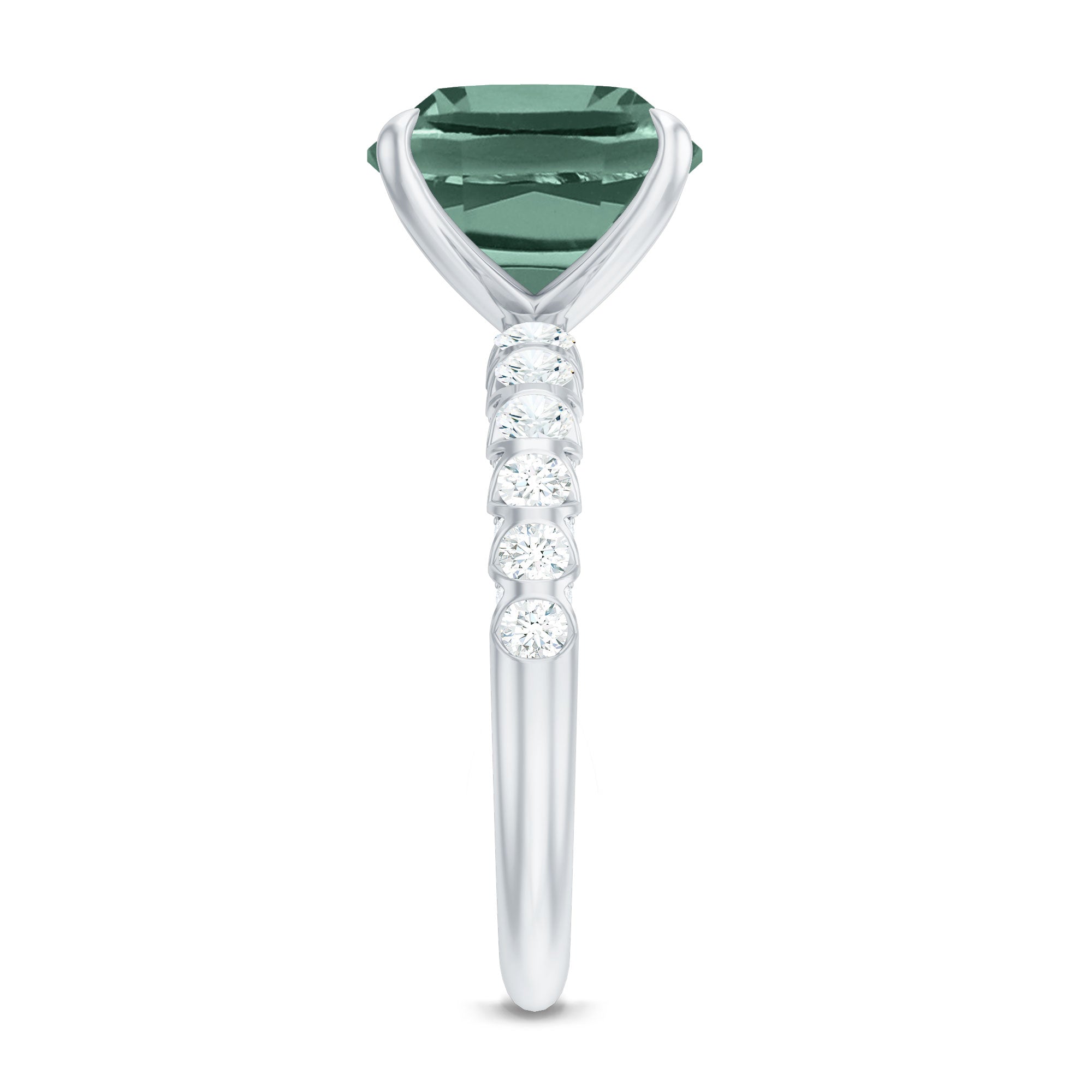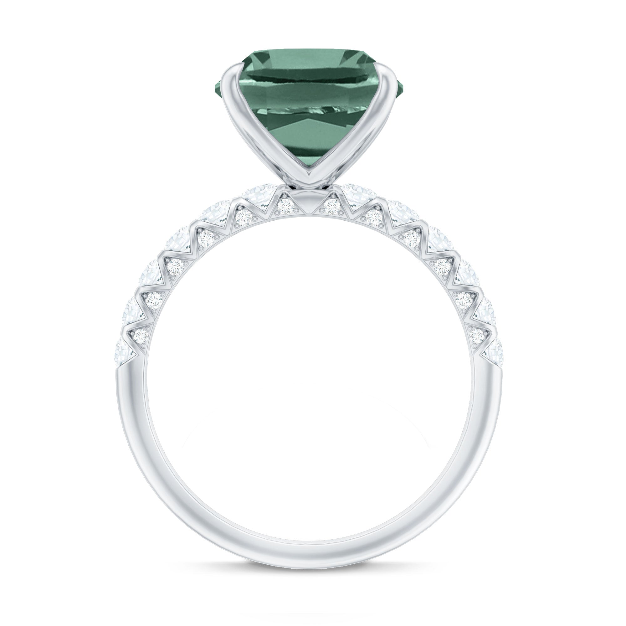 Cushion Cut Created Green Sapphire Engagement Ring with Moissanite