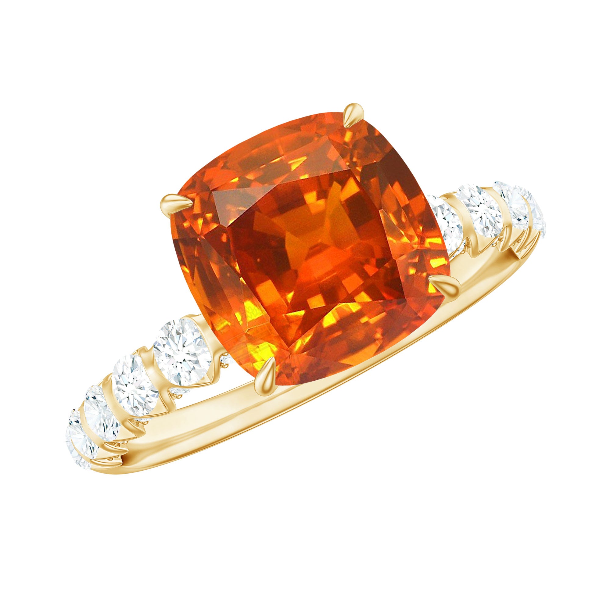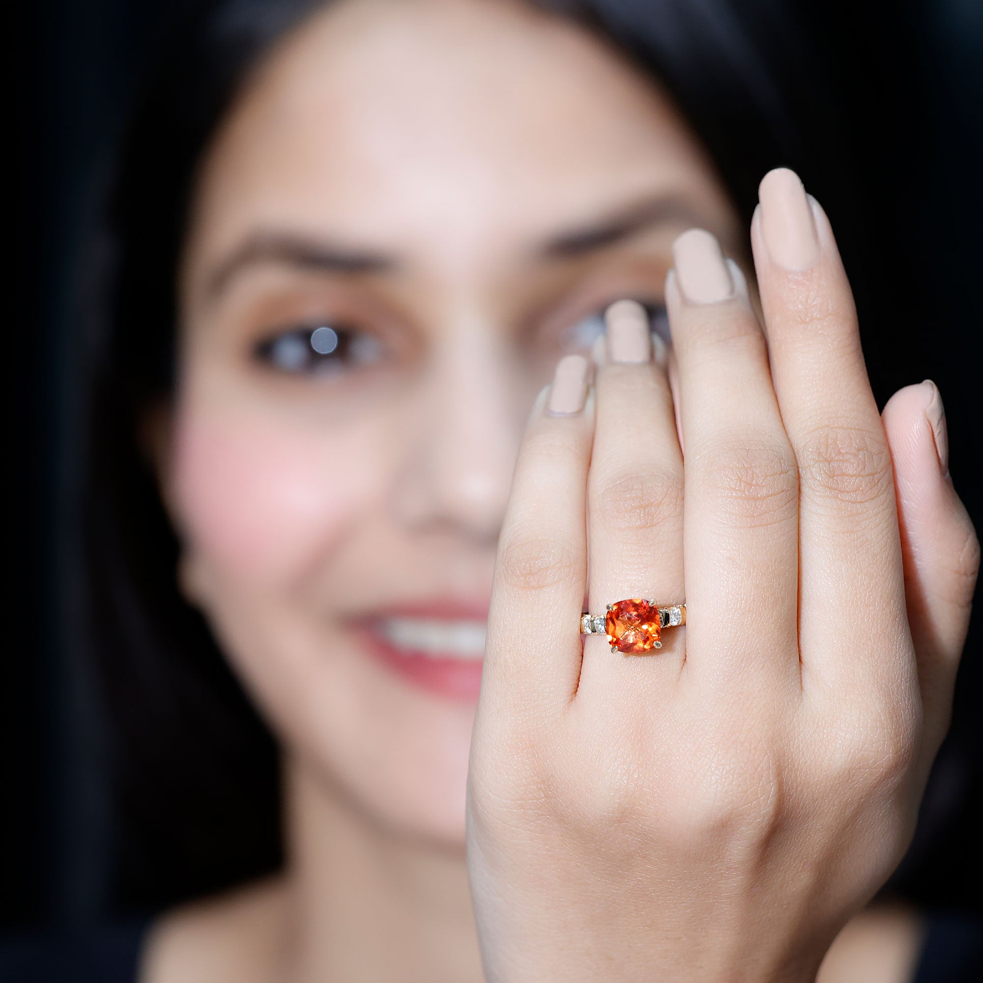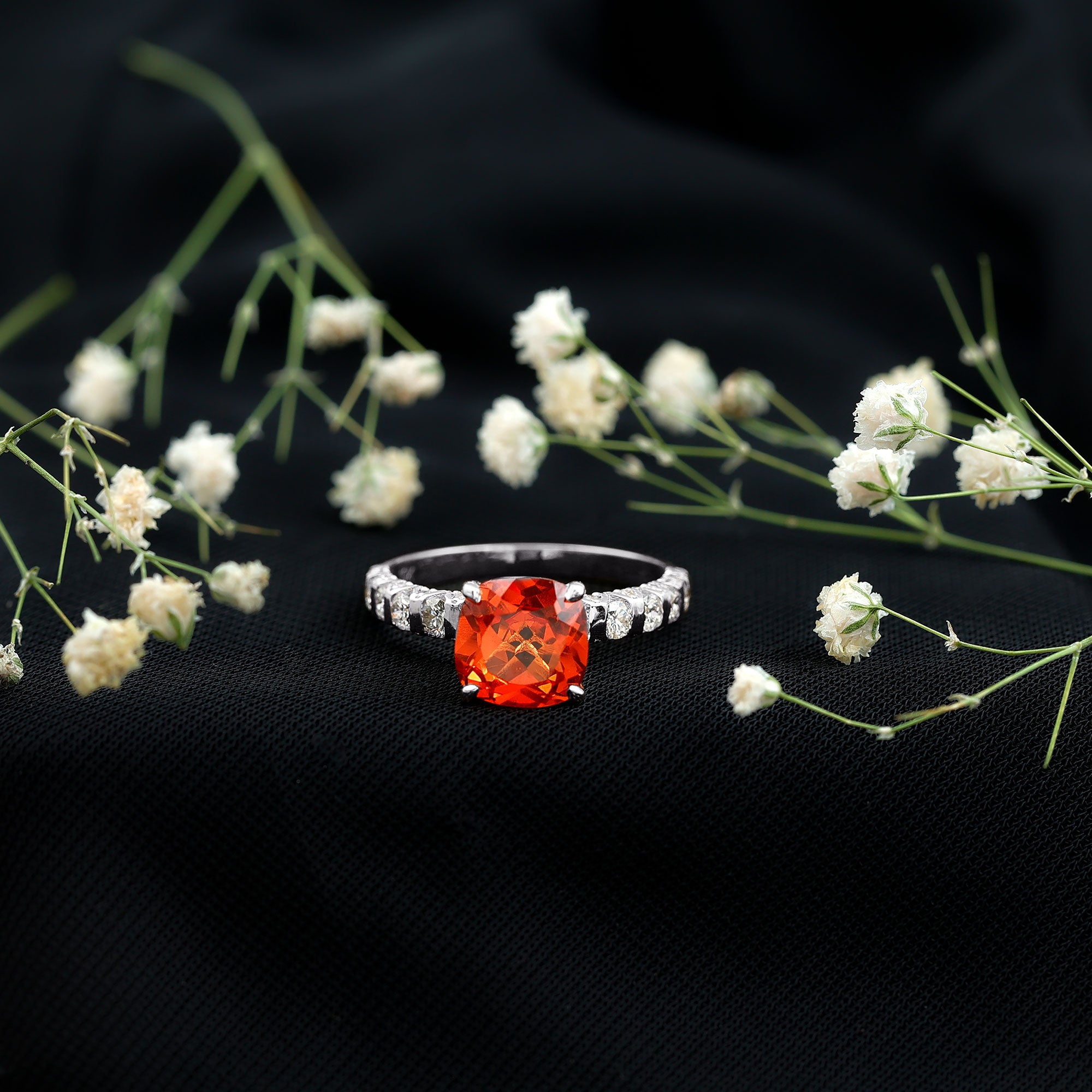 Cushion Cut Created Orange Sapphire Engagement Ring with Diamond