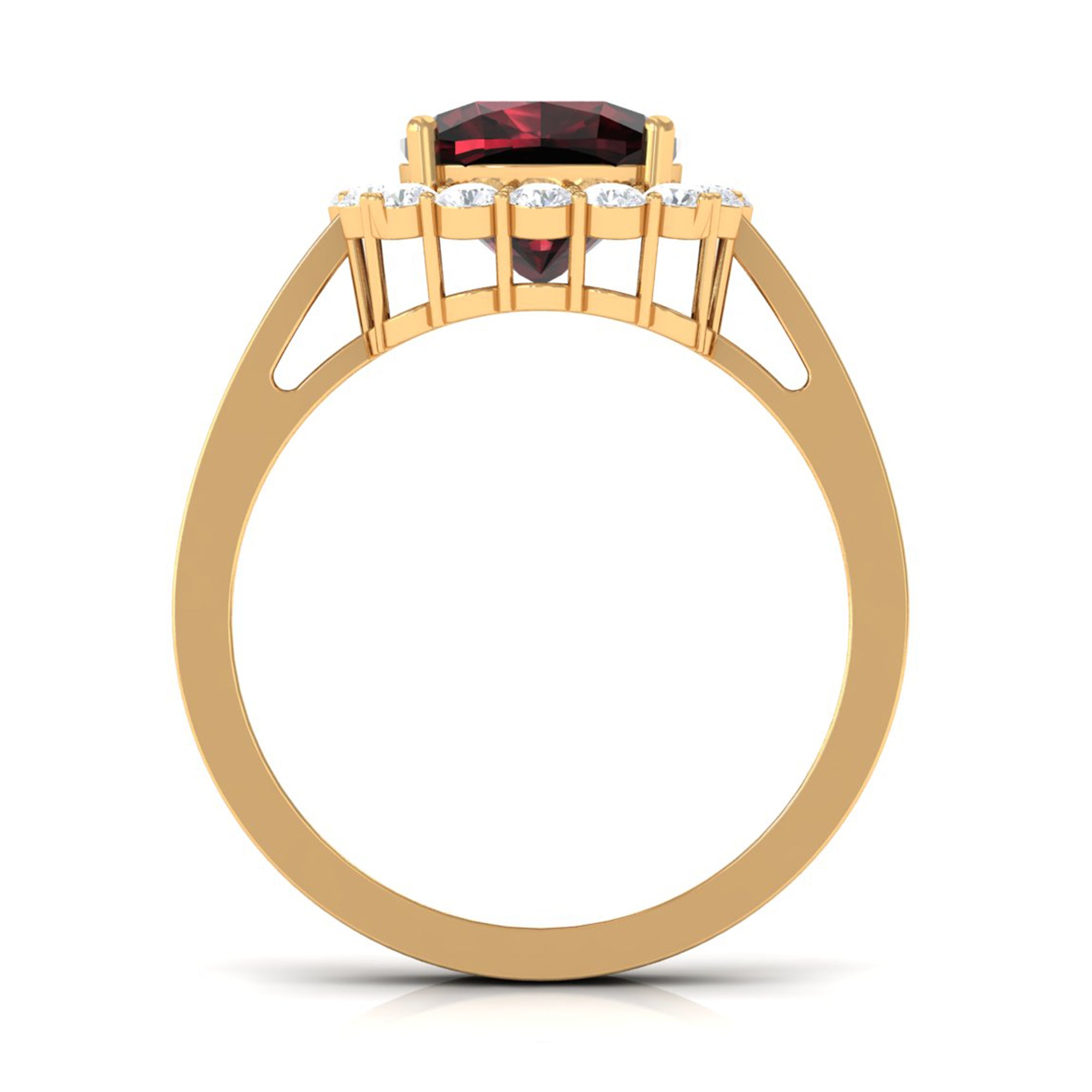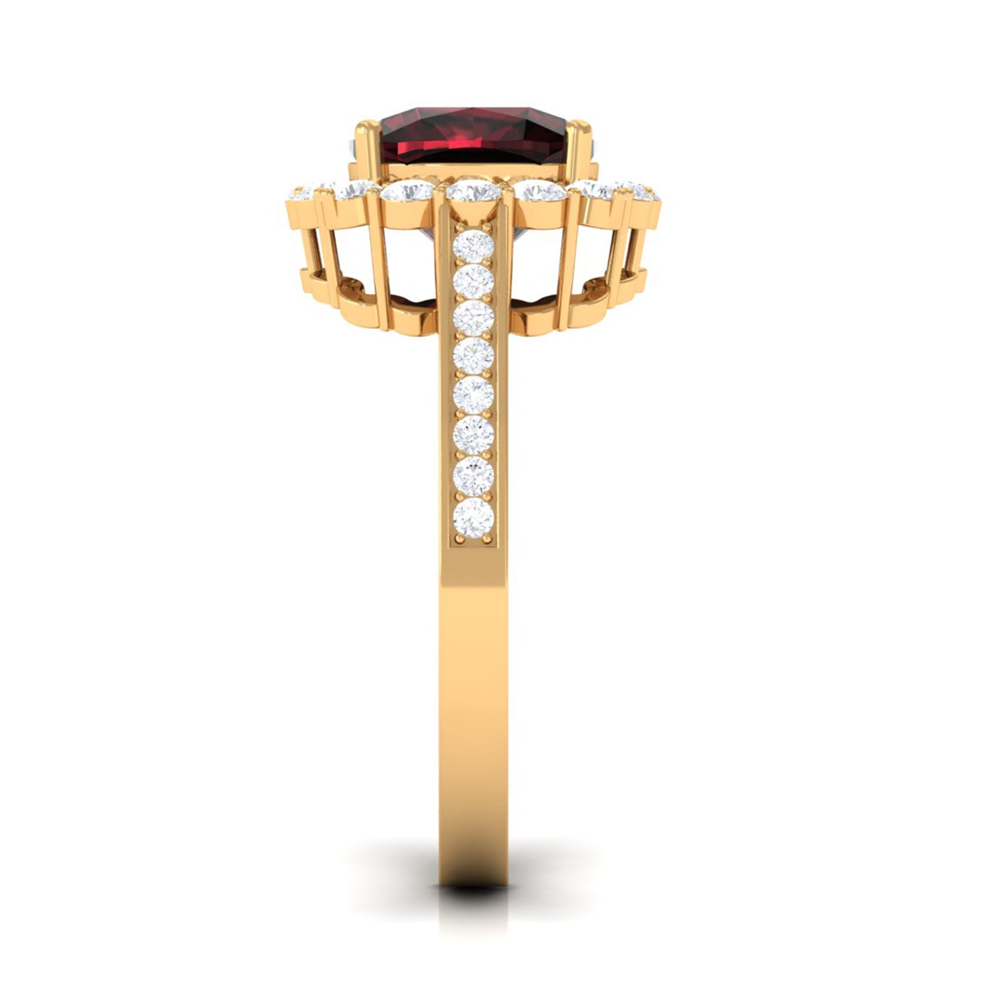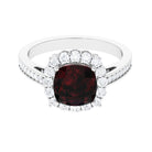 Cushion Cut Garnet Halo Engagement Ring with Diamond