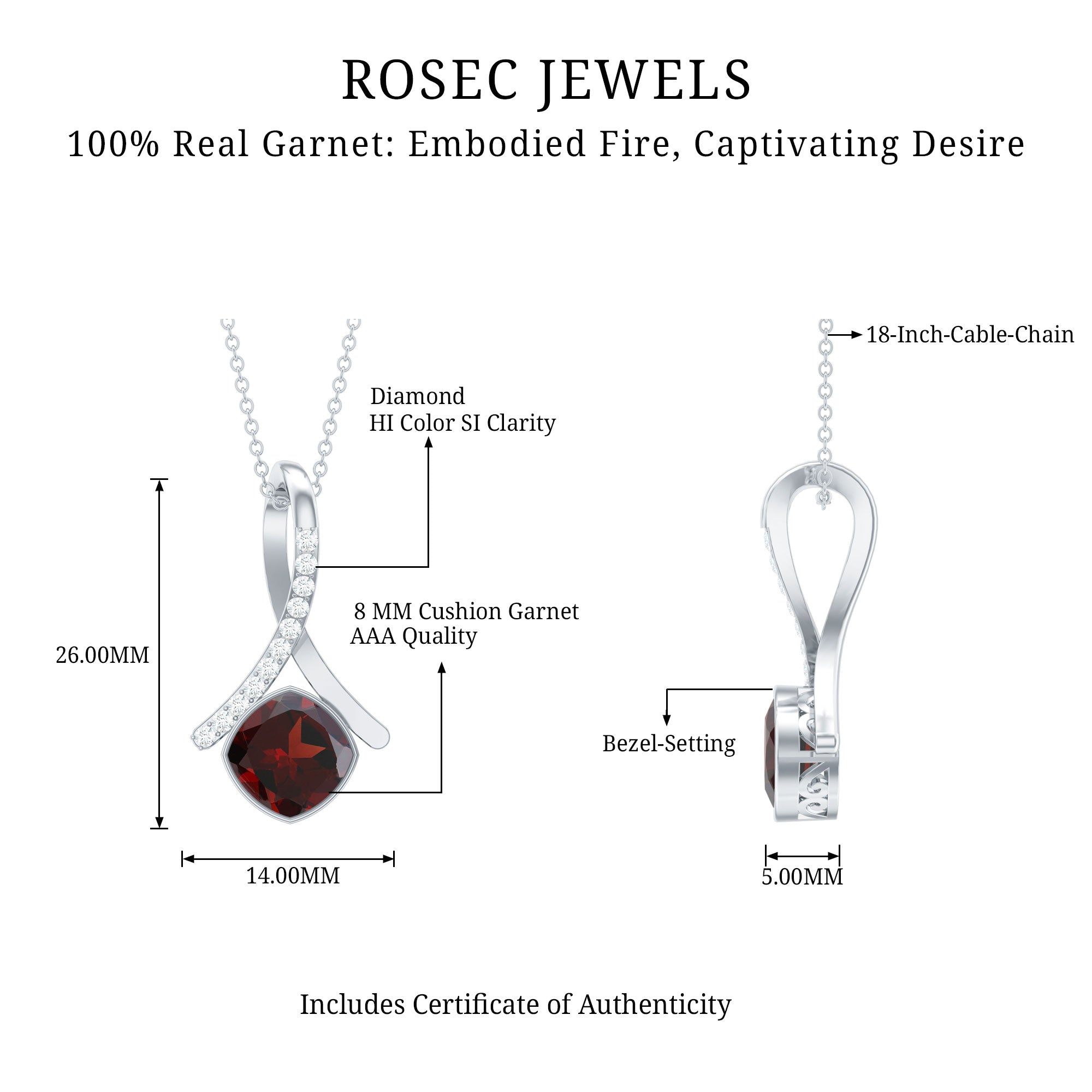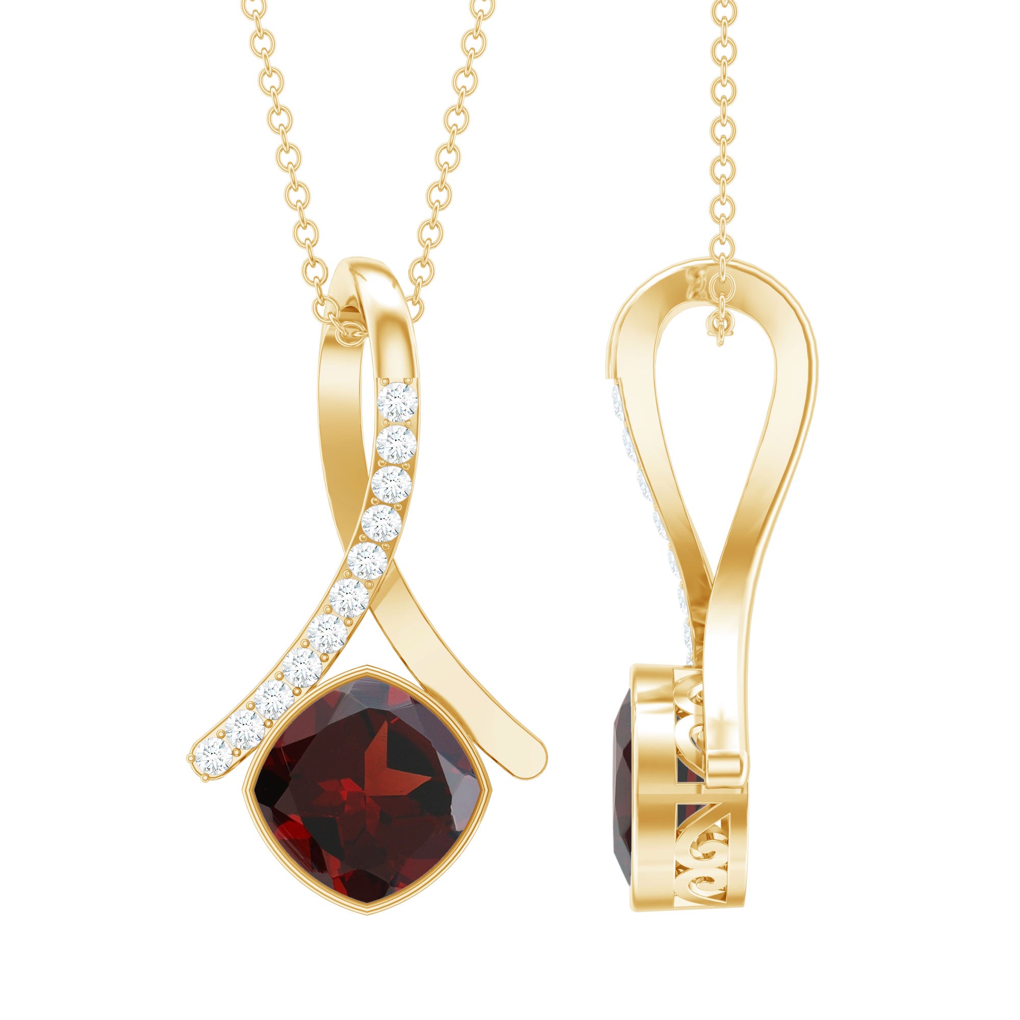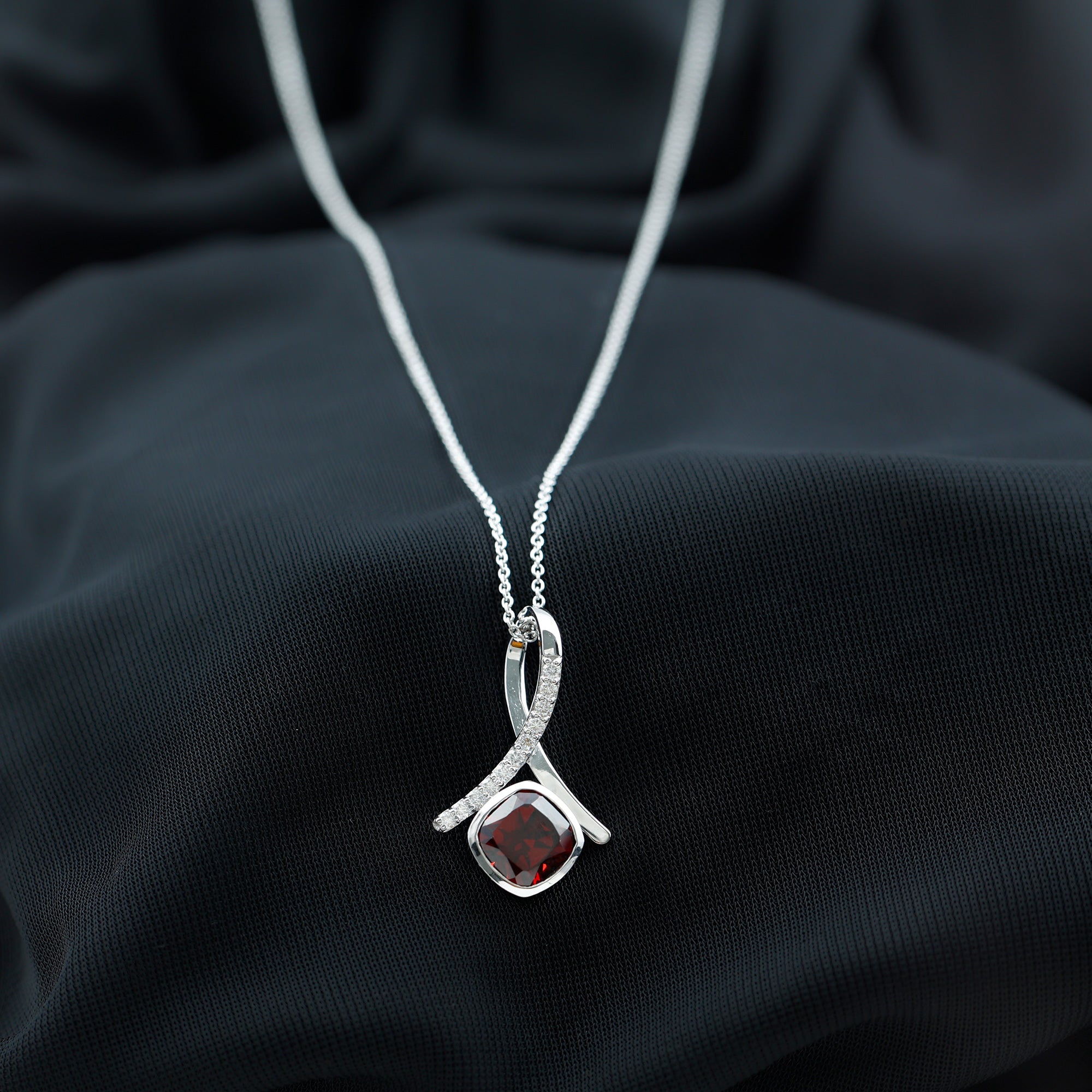 Cushion Cut Garnet Solitaire Pendant with Diamond Twisted Bail