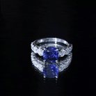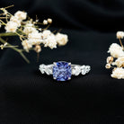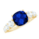 Cushion Cut Lab Grown Blue Sapphire Solitaire Ring with Moissanite