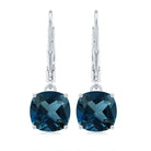 Cushion Cut London Blue Topaz Solitaire Drop Earrings