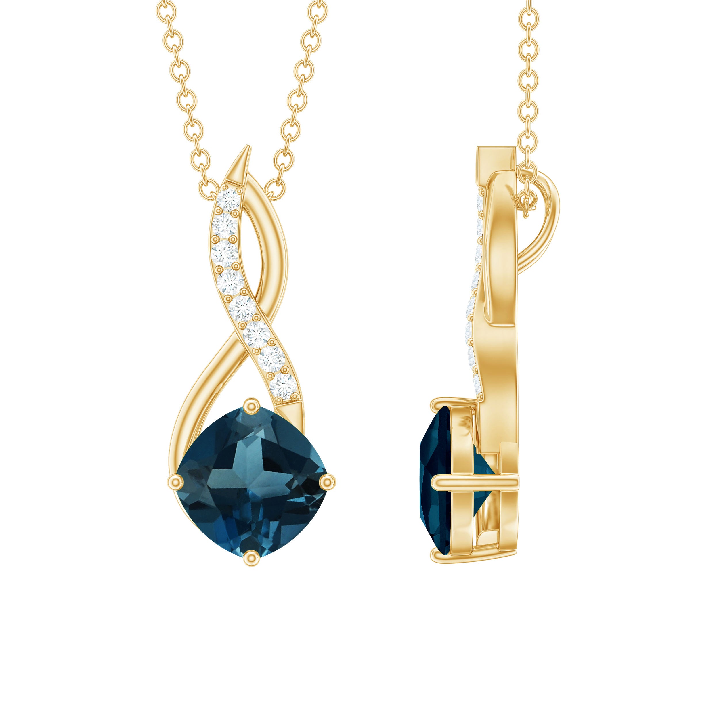 Cushion Cut London Blue Topaz Solitaire Infinity Pendant with Diamond