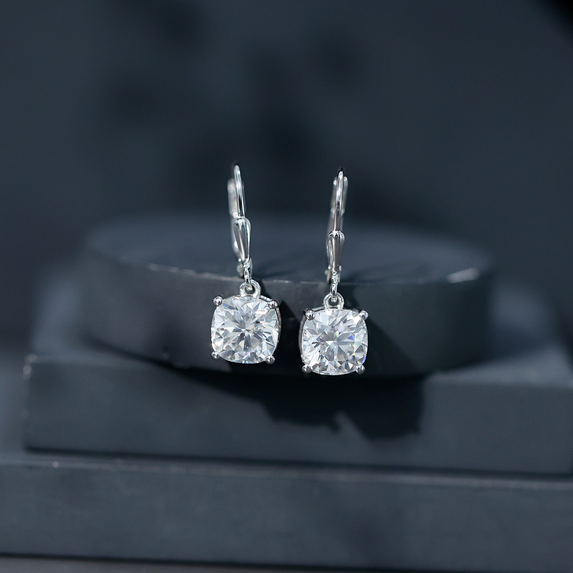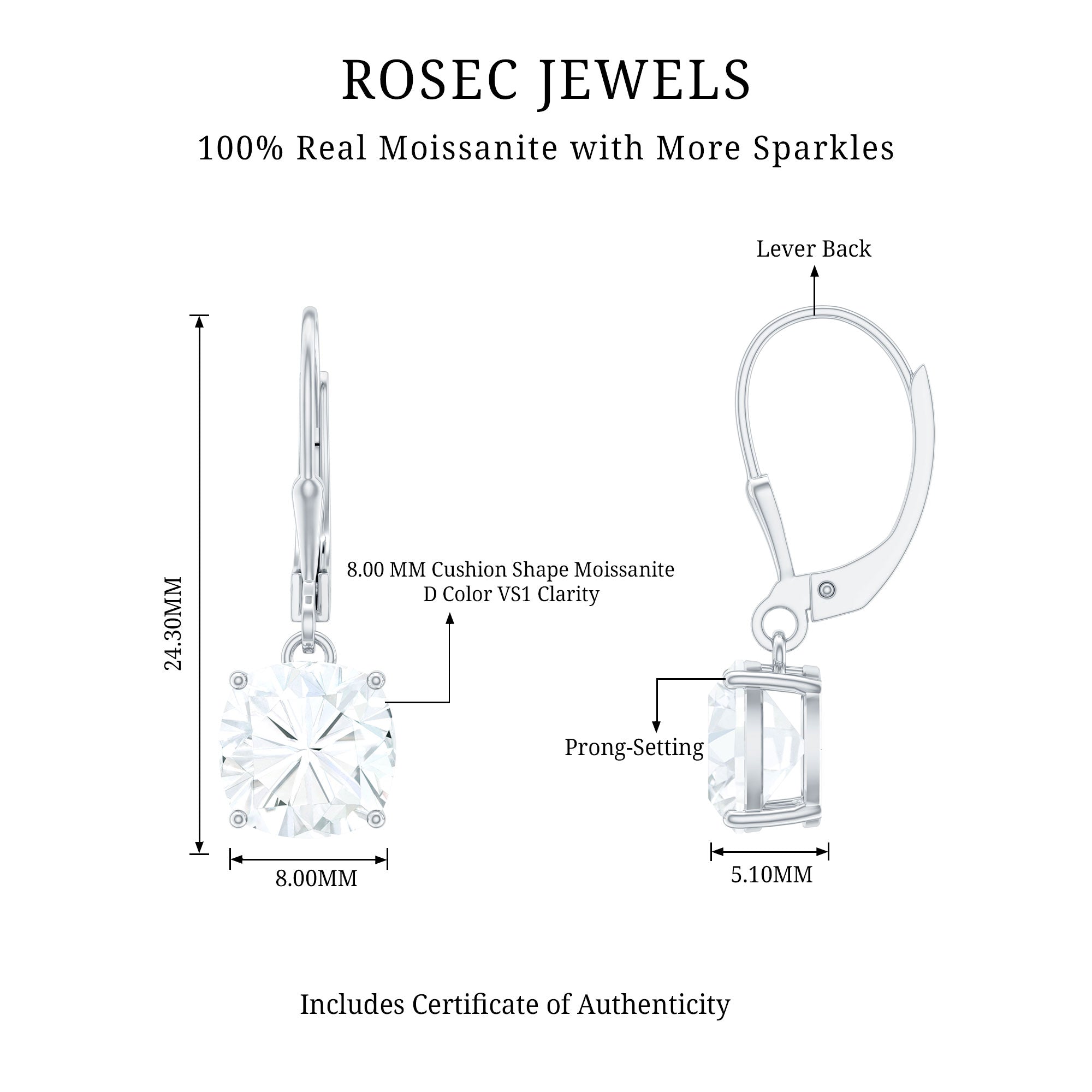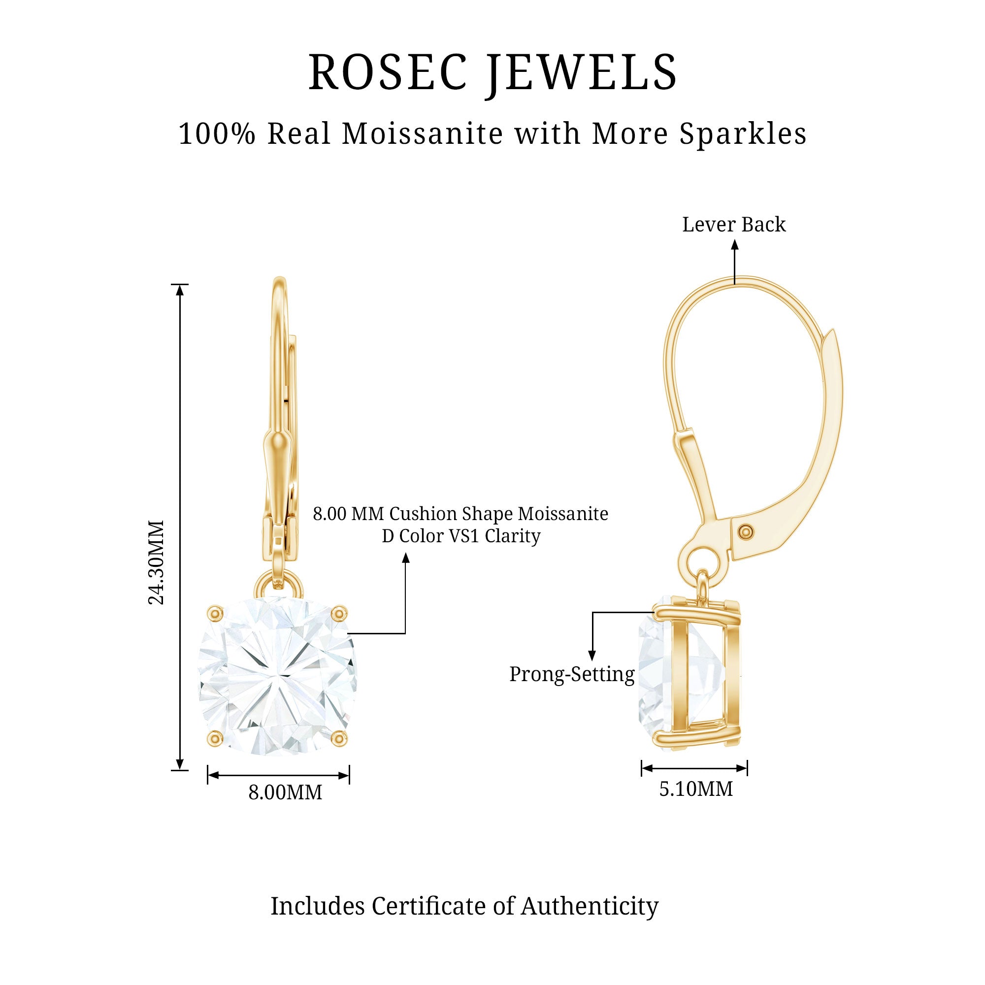 Enhance your exquisite features with the allure of these captivating Dangle Earrings. Designed with a touch of elegance, these Lever Back Dangle Earrings showcase mesmerizing Cushion Cut Moissanite in a secure 4 Prong Setting. As a perfect Valentines gift for your beloved, these enchanting Moissanite Earrings exude class and sophistication, creating a refined and sophisticated look.