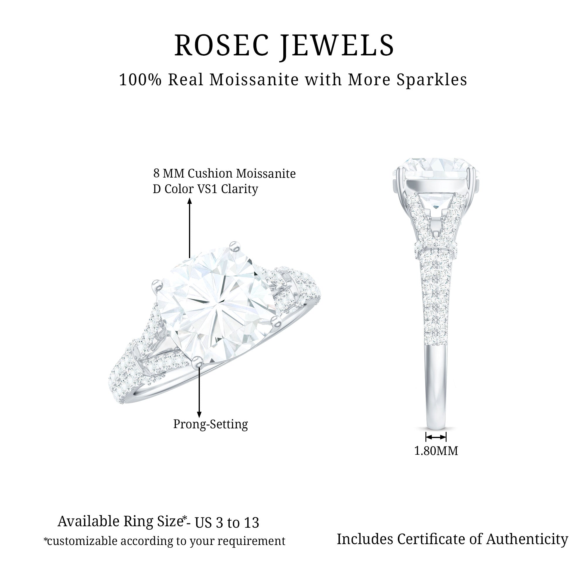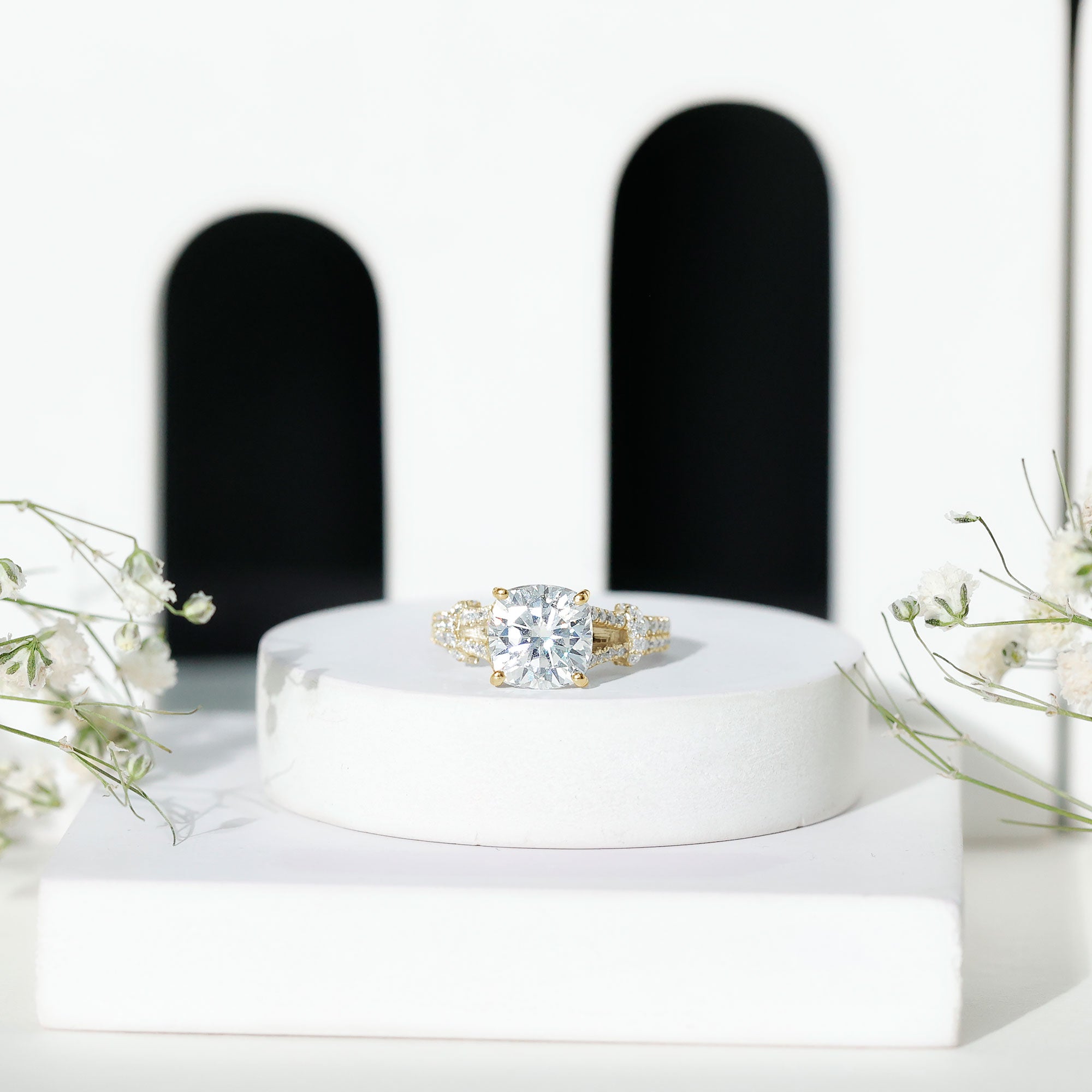 Cushion Cut Moissanite Solitaire Engagement Ring with Split Shank