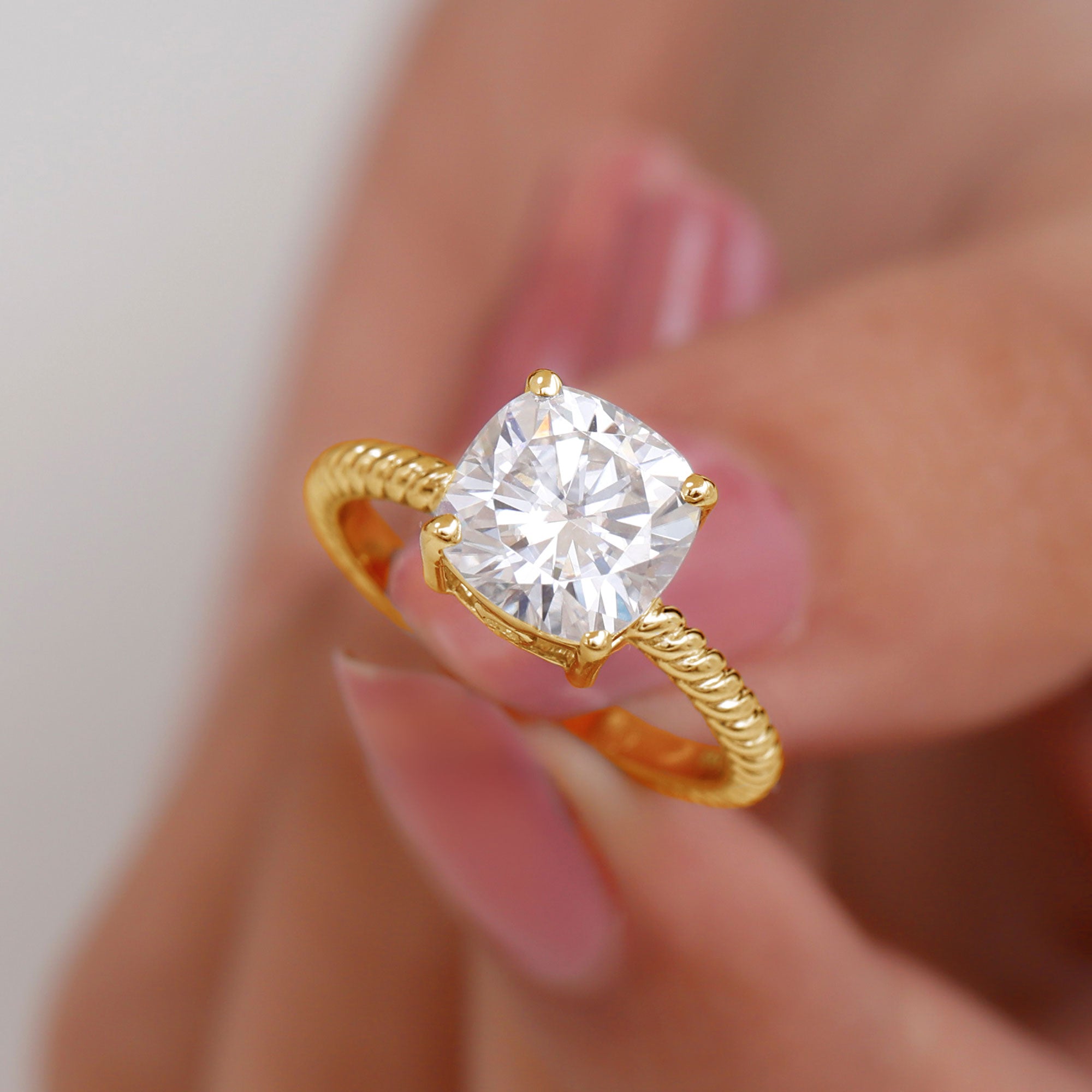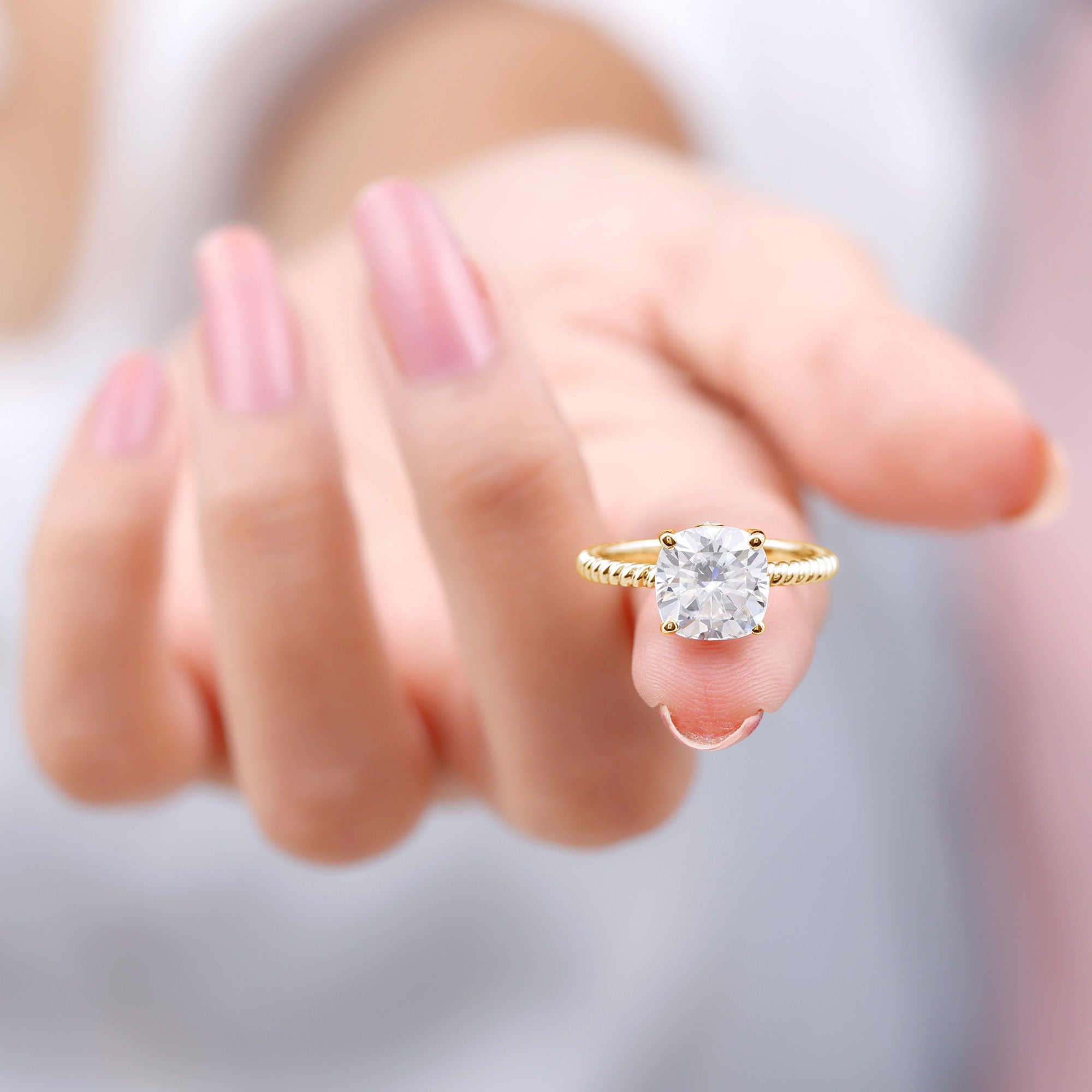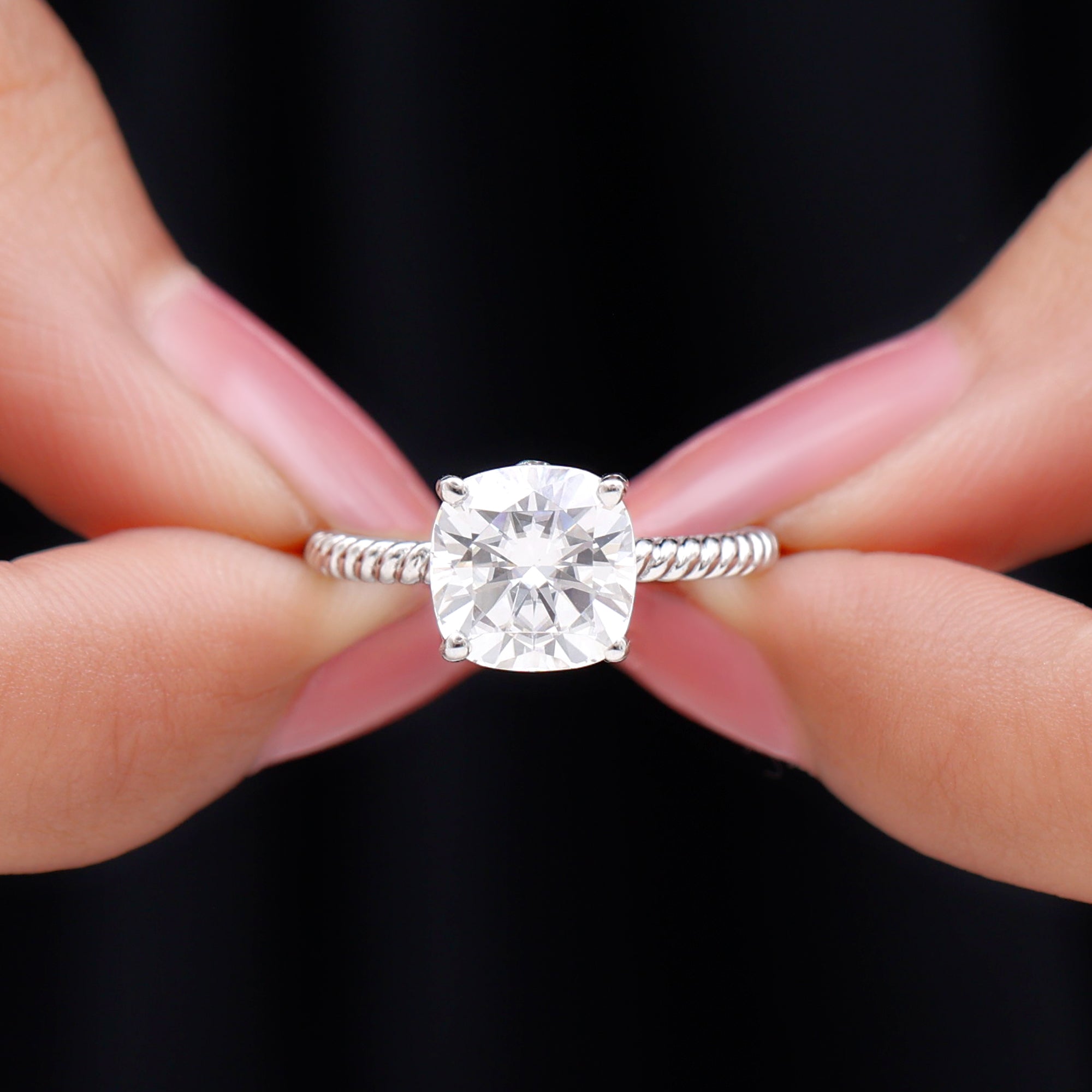 Cushion Cut Moissanite Solitaire Engagement Ring with Twisted Rope