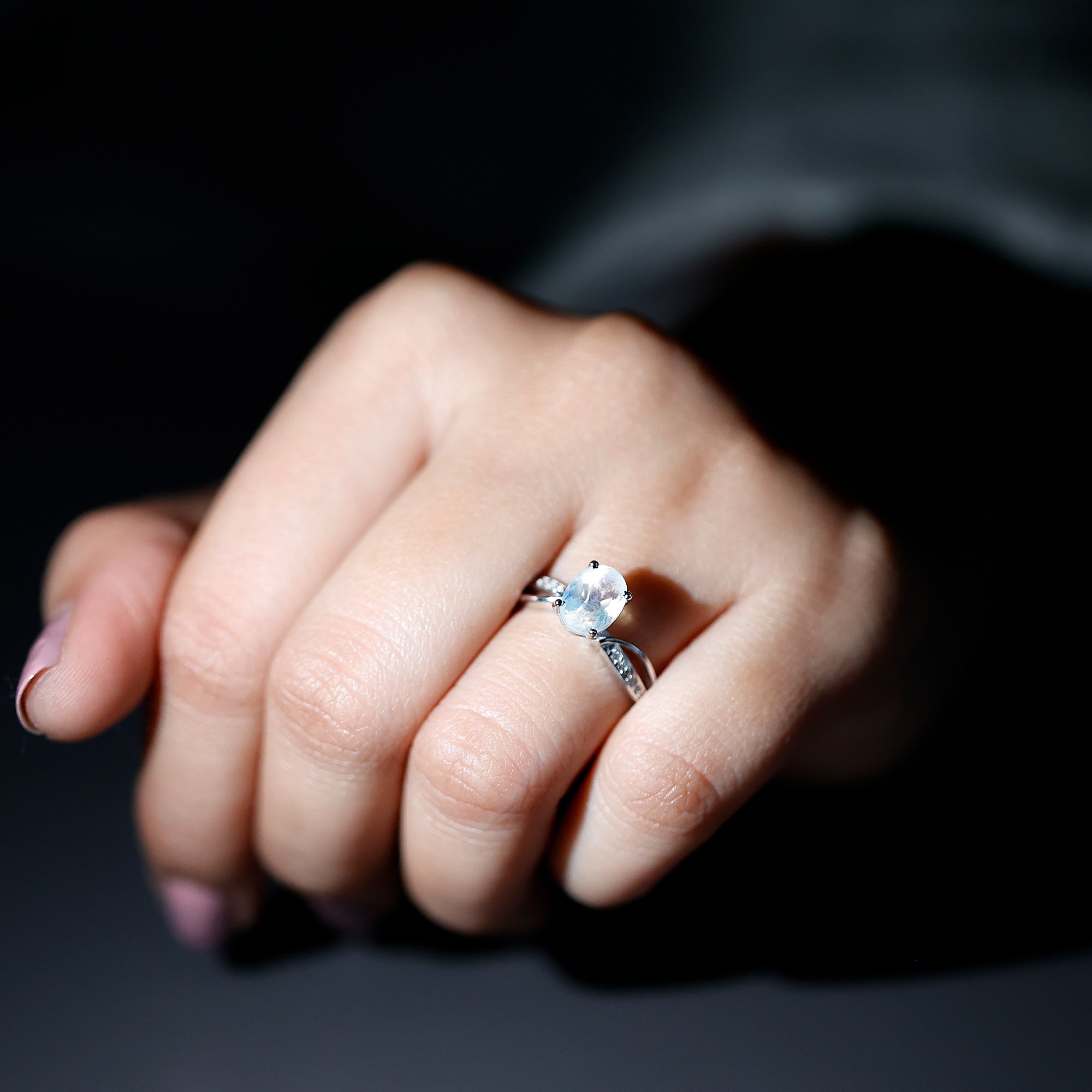 Extraordinary but undefined by a specific style, a Moonstone Promise Ring is a lot more minimalist than an Engagement Ring. It ranges from a Simple Moonstone Solitaire Ring that is quite understated thanks to its dainty size of 4 MM or less. Or it could be a lot more visually appealing when decorated with minimalist nature, infinity, or floral inspired motifs and sparkling accents of Diamond/Moissanite. Beyond that, this ring style oozes romance since it commemorates the promise of lifelong commitment, making the Moonstone Heart Ring the most meaningful pick in this category.